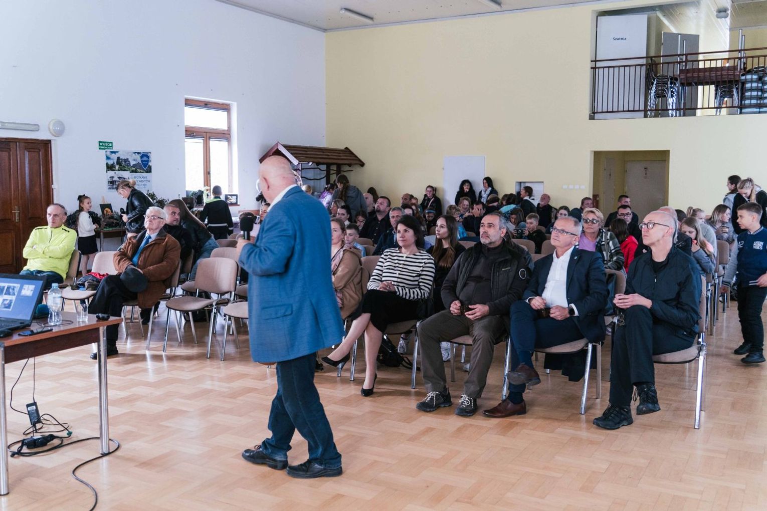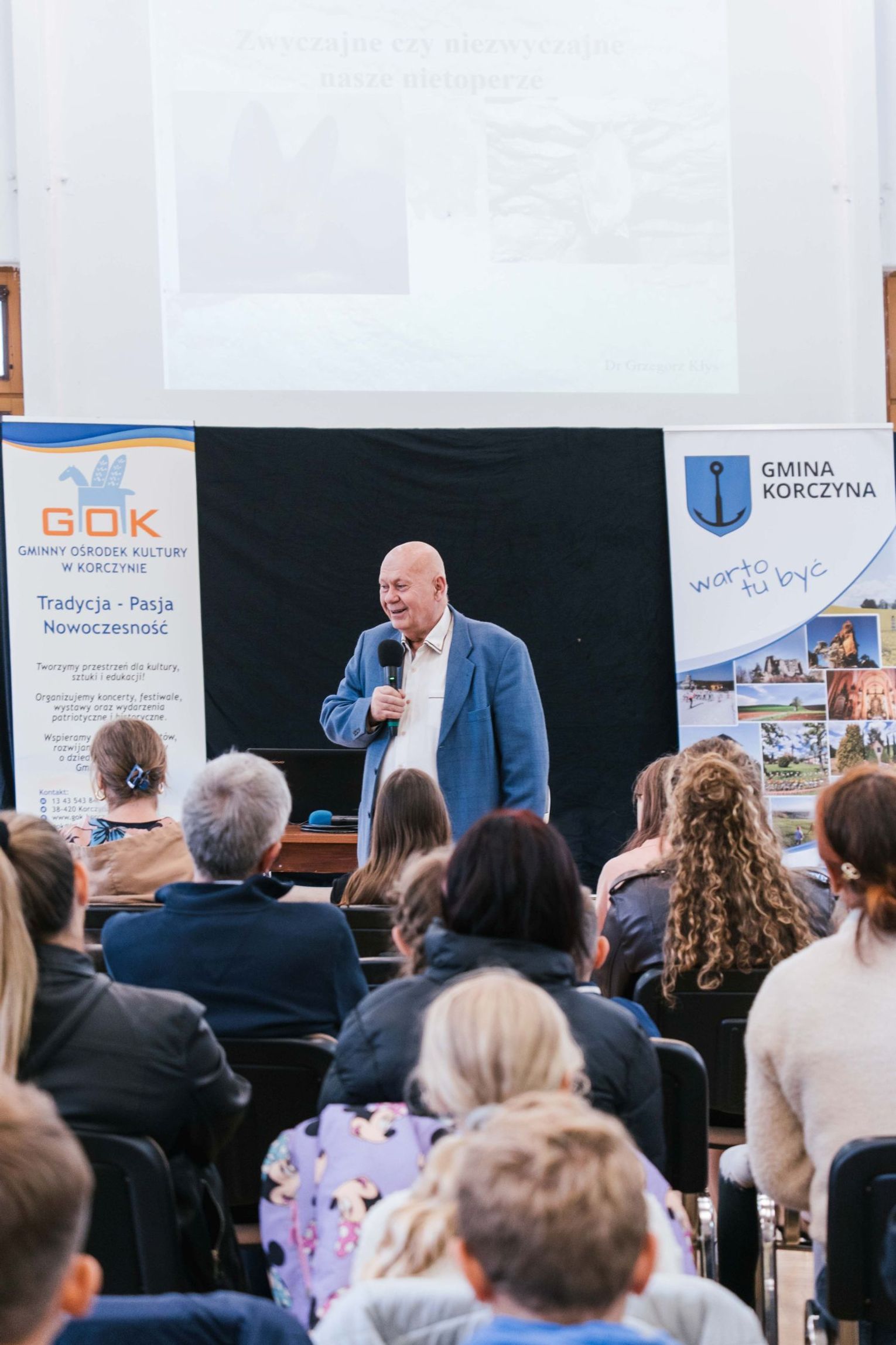 Część edukacyjną wydarzenia wypełniła prelekcja przygotowana przez dr. Grzegorza Kłysa oraz dr Martę Wojciuch-Płoskonkę. Dr Kłys – biolog i specjalista zajmujący się od wielu lat ochroną nietoperzy w Karpatach – przybliżył uczestnikom znaczenie tych ssaków w zachowaniu równowagi ekosystemów, opowiadając m.in. o ich niezwykłych zdolnościach echolokacyjnych i roli w zwalczaniu owadów. Z kolei dr Wojciuch-Płoskonka, zajmująca się badaniami nad biologią i ekologią ssaków, przedstawiła ciekawostki z badań terenowych, fotografie kolonii nietoperzy oraz informacje o metodach ich monitorowania. Oboje podkreślali, że ochrona nietoperzy to nie tylko troska o rzadki gatunek, ale i działanie na rzecz zachowania całej różnorodności biologicznej regionu.