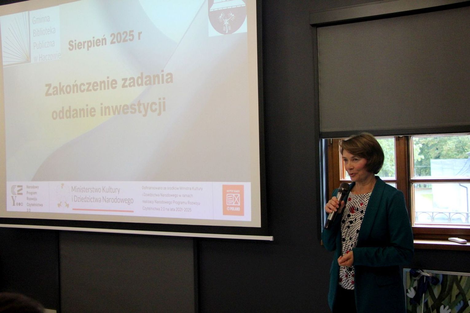 Nowo wyremontowane pomieszczenia zachwyciły gości swoją kameralnością, funkcjonalnością i ciepłą atmosferą. Adaptacja poddasza była możliwa dzięki realizacji zadania „Adaptacja poddasza Gminnej Biblioteki Publicznej w Haczowie z zakupem wyposażenia służącego aktywizacji i integracji społecznej” w ramach Narodowego Programu Rozwoju Czytelnictwa 2.0 (Priorytet 2, Kierunek interwencji 2.1 „Infrastruktura bibliotek 2021–2025”). Całkowita wartość projektu wyniosła 2 075 500,00 zł, z czego aż 1 748 250,00 zł stanowiło dofinansowanie ze środków Ministra Kultury i Dziedzictwa Narodowego pochodzących z budżetu państwa.