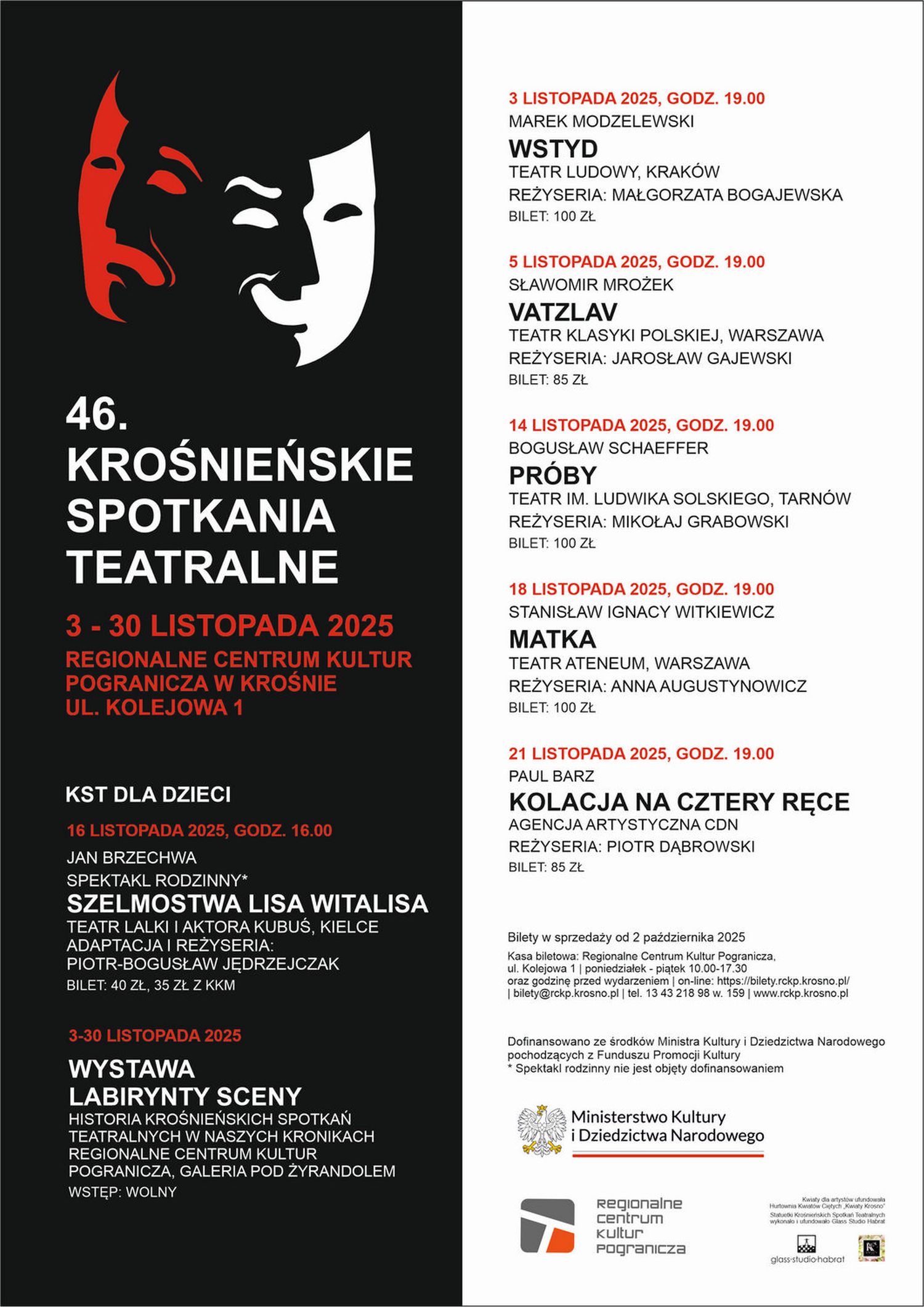 - Tegoroczny program łączy dramaty dotykające aktualnych problemów społecznych, jak „Wstyd” Marka Modzelewskiego, z ponadczasową klasyką – „Matką” Witkacego czy „Vatzlavem” Mrożka - informuje Agnieszka Kaszczyszyn z RCKP w Krośnie.