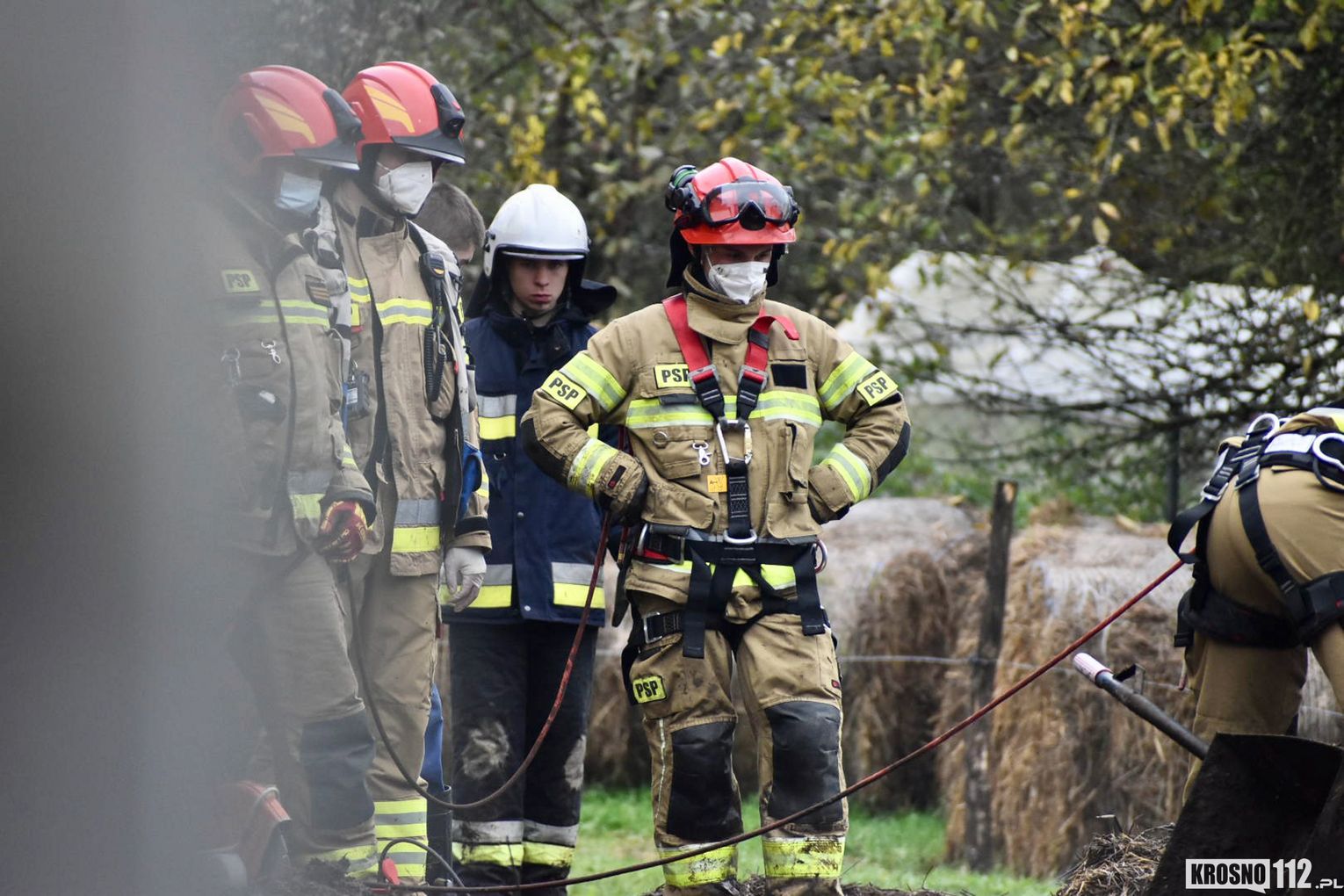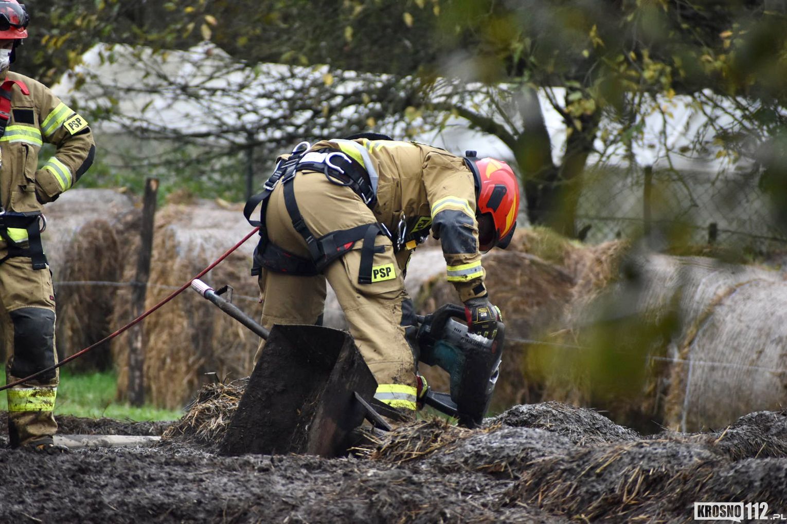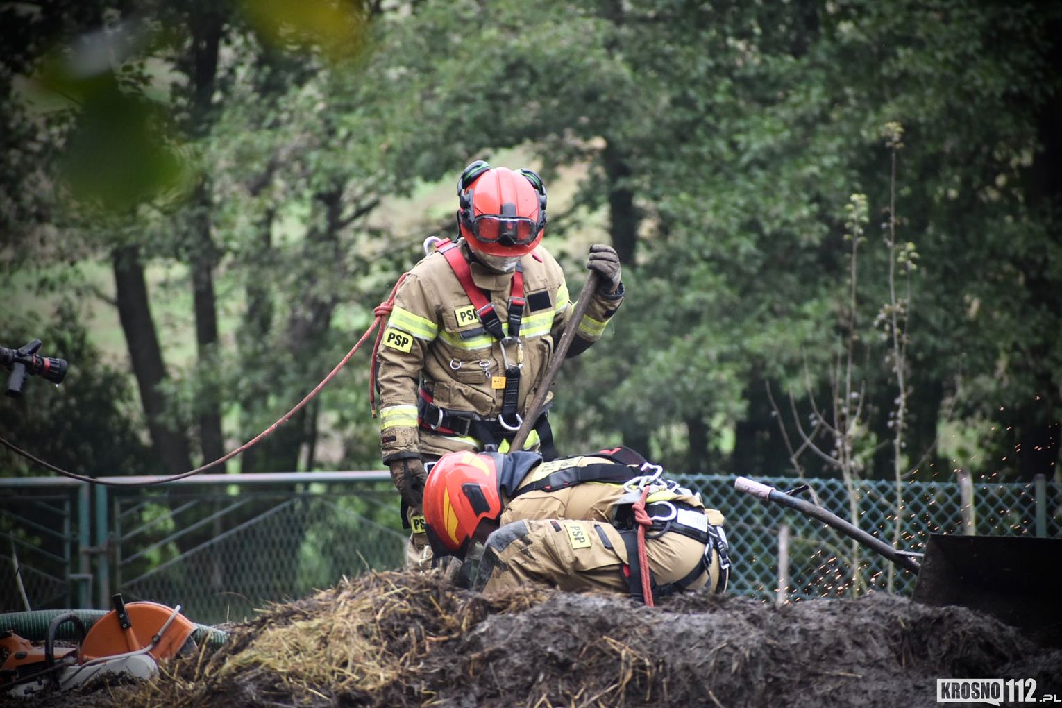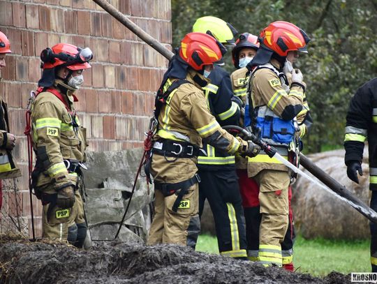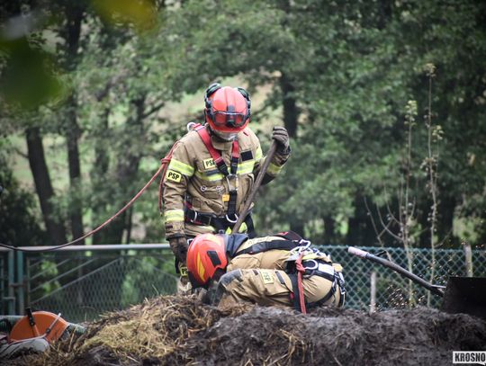 Po wstępnym rozpoznaniu okazało się, że siły i środki obecne na miejscu zdarzenia nie są wystarczające, dlatego podjęto decyzję o dyspozycji SLKw i SLOp z JRG Jasło, Specjalistycznej Grupy Ratownictwa Wysokościowego z JRG Krosno, OSP Tarnowiec. Zadysponowano również ładowarkę teleskopową Manitou z JRG 1 Rzeszów, natomiast została ona zawrócona z trakcie dojazdu. Po około dwóch godzinach zwierze zostało wyciągnięte ze zbiornika. Akcja zakończyła się sukcesem, a krowie nic się nie stało.