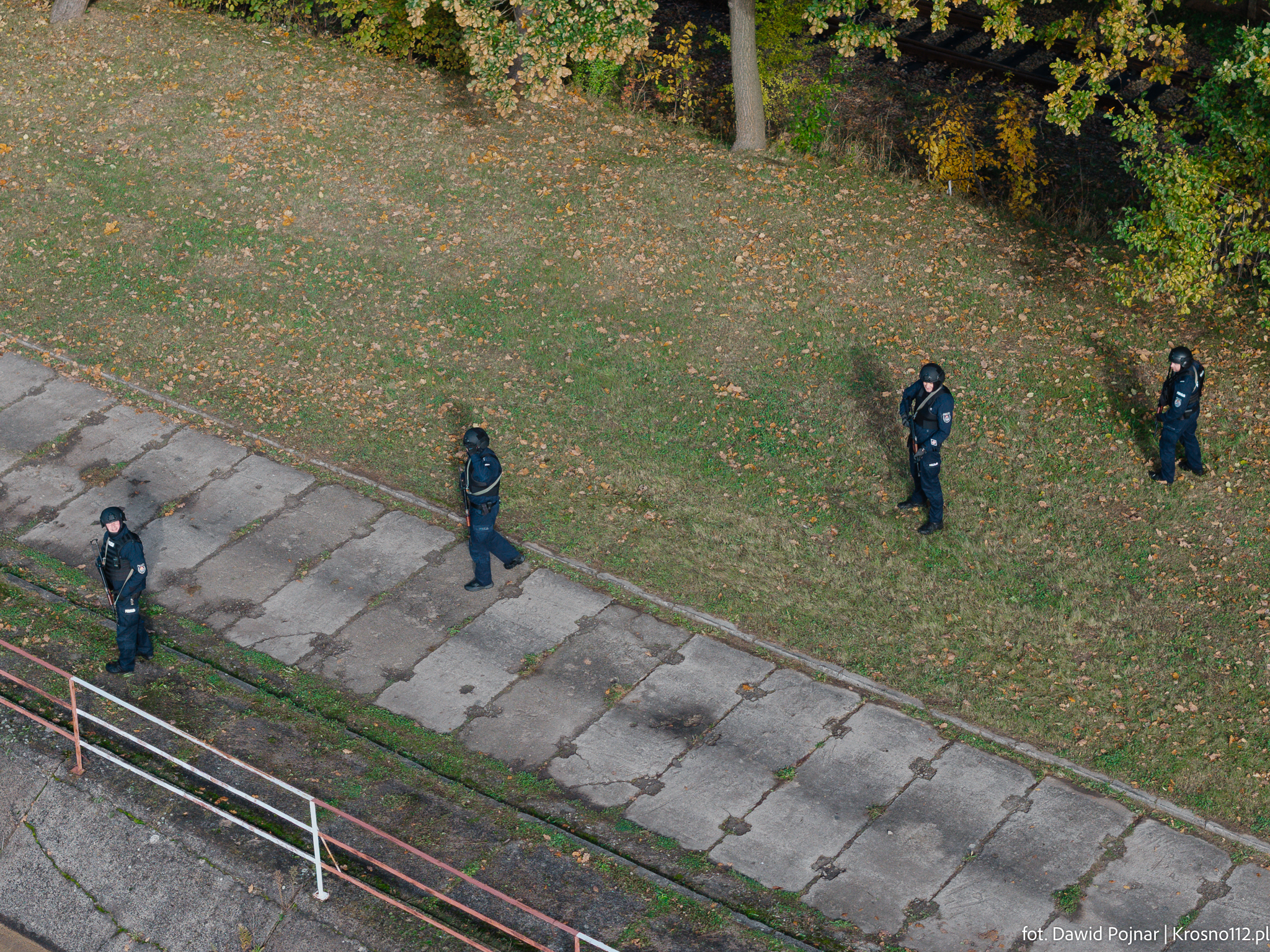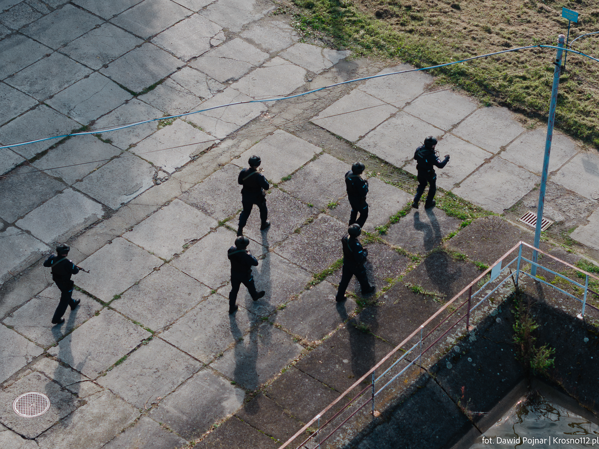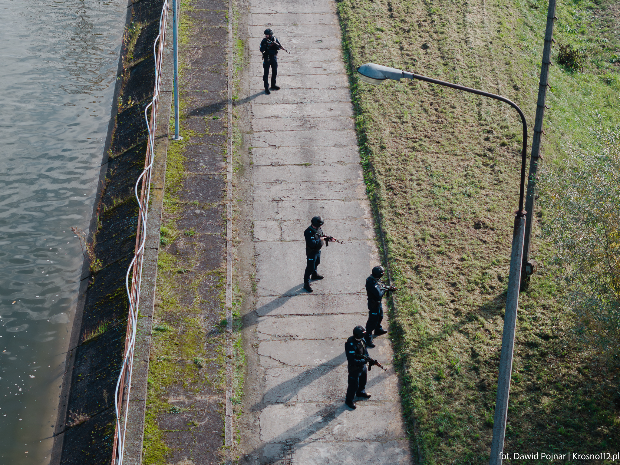 W dalszej części scenariusza sprawdzano działania służb ochrony i ratowniczych po opuszczeniu przez pozoranta miejsca zdarzenia. Zgodnie z założeniem, mężczyzna udał się w kierunku budowanej biogazowni oraz obiektów technicznych, gdzie ćwiczący funkcjonariusze doskonalili procedury poszukiwawcze i zabezpieczające.