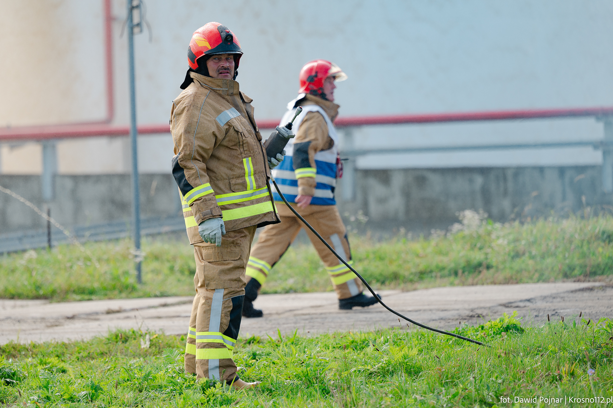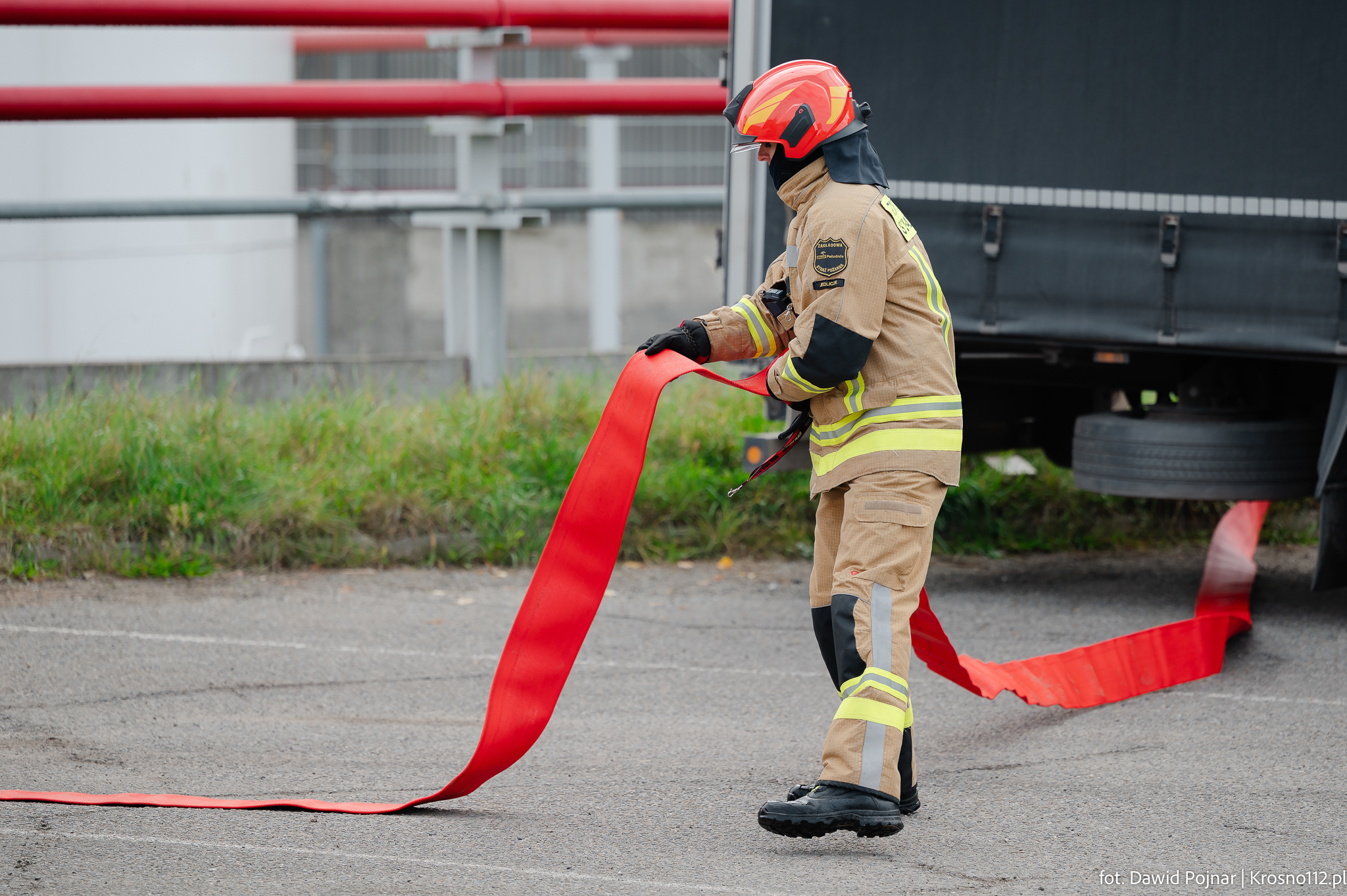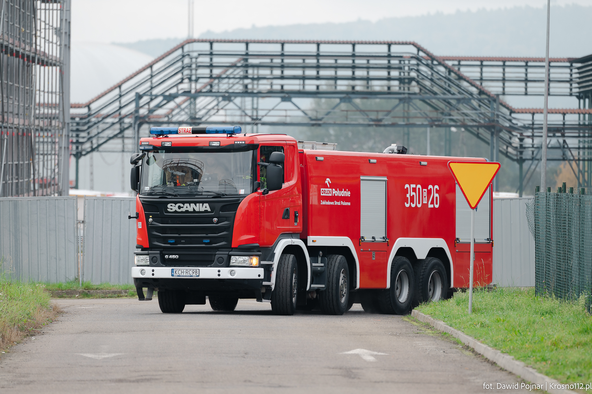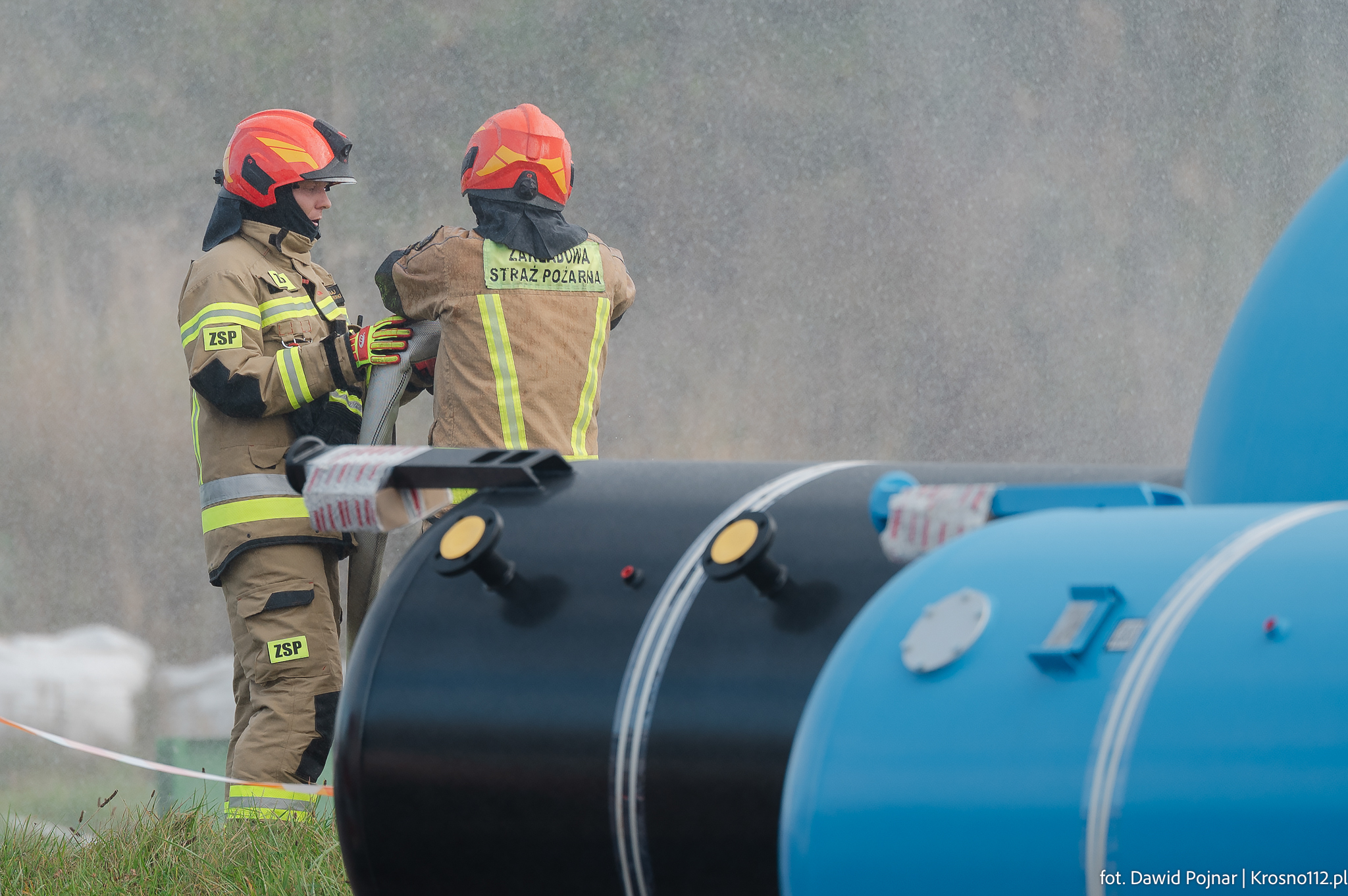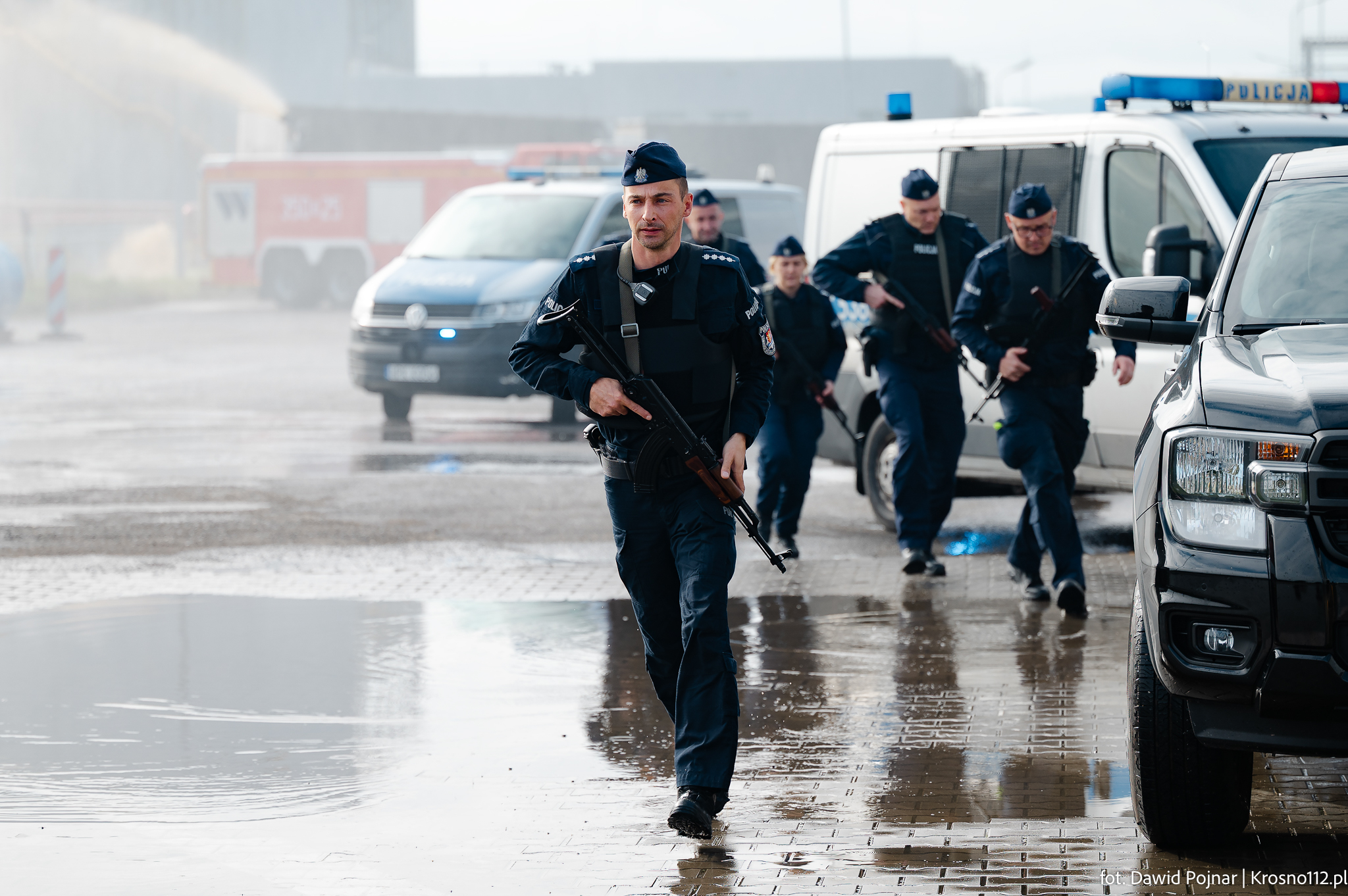 Kolejnym etapem było uruchomienie drona z atrapą ładunku wybuchowego, którym pozorant sterował w kierunku zbiornika przeznaczonego do magazynowania łatwopalnych rozpuszczalników. Po „uderzeniu” drona w zbiornik wywołano kontrolowaną symulację pożaru i eksplozji, co pozwoliło przetestować skuteczność procedur bezpieczeństwa i współpracy między służbami zakładowymi a zewnętrznymi.