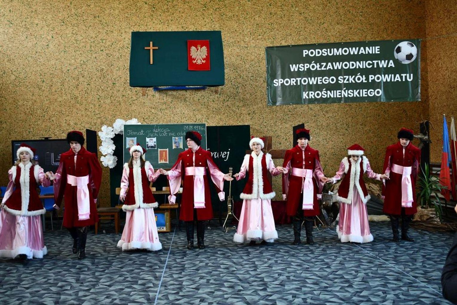 Uroczystość rozpoczęła się polonezem – polskim tańcem narodowym – w wykonaniu uczniów szkoły, pod kierunkiem Katarzyny Gładysz. Następnie odbyła się część oficjalna, podczas której Starosta Krośnieński Jan Pelczar nagrodził nauczycieli za szczególne osiągnięcia w pracy dydaktycznej, wychowawczej i opiekuńczej w roku szkolnym 2024/2025 oraz wręczył stypendia wyróżniającym się uczniom.