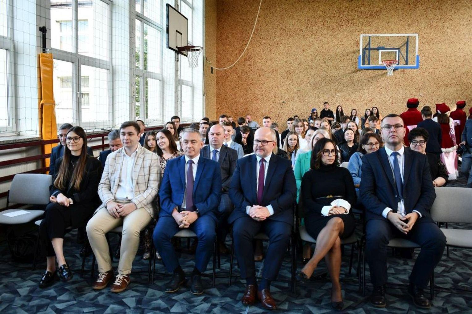 Listy gratulacyjne uczniom wręczali: Marcin Józefowicz – przewodniczący Rady Powiatu, Iwona Stefanik – wiceprzewodnicząca Rady Powiatu, Monika Subik – dyrektor, etatowy członek Zarządu Powiatu, oraz Józef Sowiński – przewodniczący Rady Miejskiej w Iwoniczu-Zdroju.