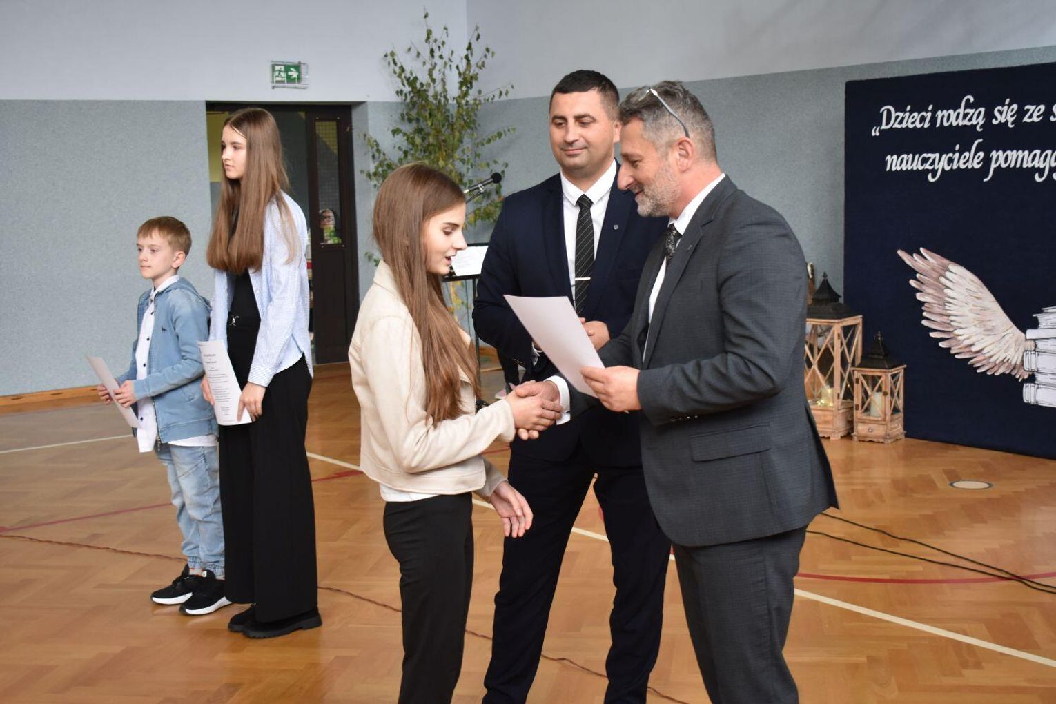 Tegoroczne obchody miały także szczególny charakter – po raz pierwszy przyznano stypendia dla najzdolniejszych uczniów z terenu gminy. Wyróżnienia wręczyli Wójt Rafał Bobala oraz Przewodniczący Rady Gminy Robert Zawisza. Stypendia przyznano za wybitne osiągnięcia naukowe, artystyczne i sportowe.