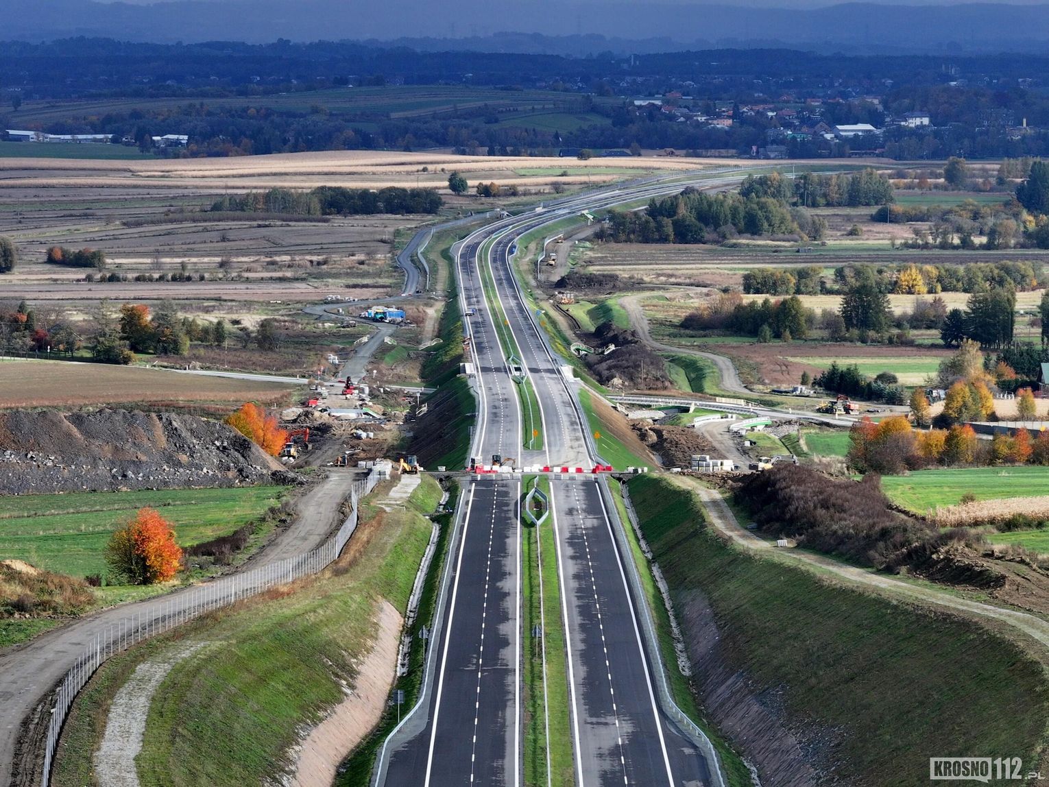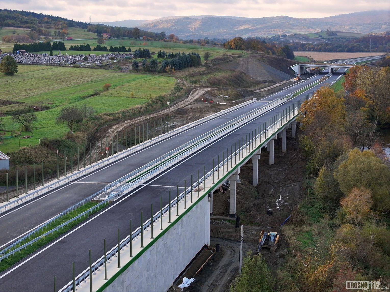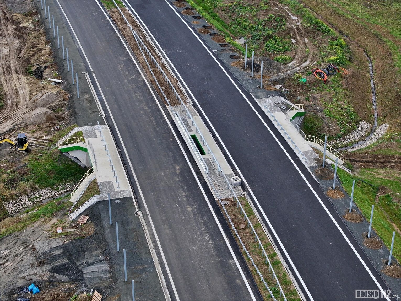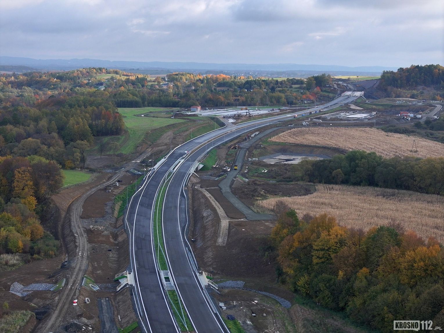 Na odcinku budowanej drogi ekspresowej S19 na odcinku od km ~69 do km ~72 pojawiło się już oznakowanie poziome i pionowe. Trwają również ostatnie prace nad obiektami inżynierskimi, najbardziej opóźnionym z nich jest estakada w Równem ES-2/1, gdzie gotowy jest już ustrój nośny i trwają dalsze etapy budowy. Na Miejscu Obsługi Podróżnych z jednej strony gotowy jest praktycznie cały układ komunikacyjny oraz budynki. Pojawiły się również latarnie na MOP i węźle, montowane są słupy pod ekrany ochronne na obiektach inżynierskich. Na węźle Dukla trwa aktualnie budowa ronda pod wiaduktem oraz łącznika do DK19, co w dalszym ciągu powoduje utrudnienia, pisaliśmy o tym tutaj: Zmiana organizacji ruchu na DK19 w gminie Dukla. Realne utrudnienia