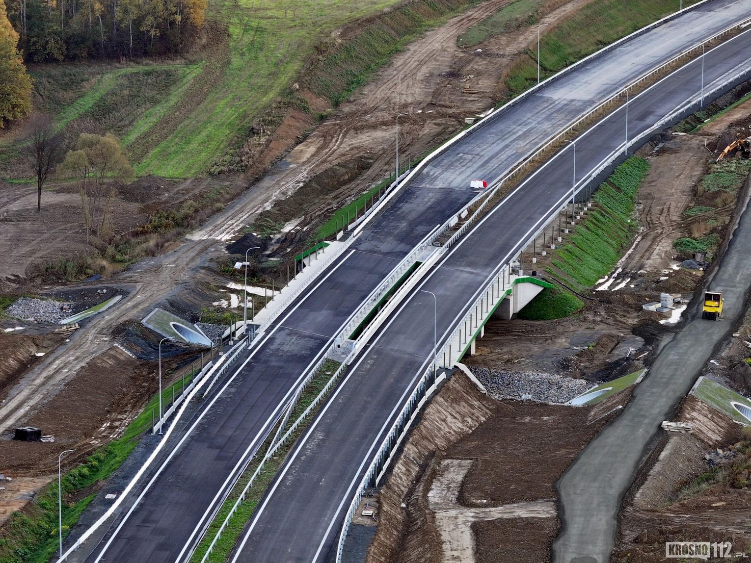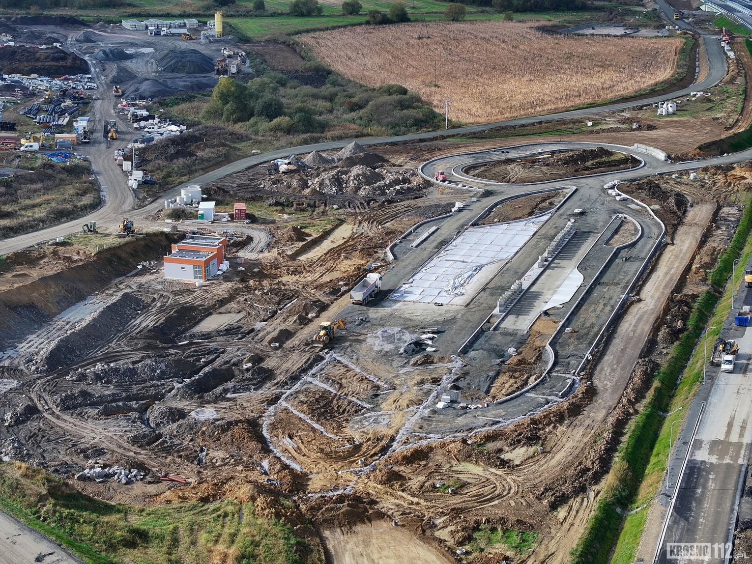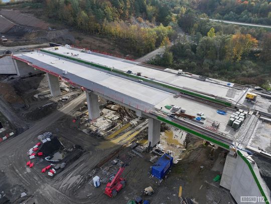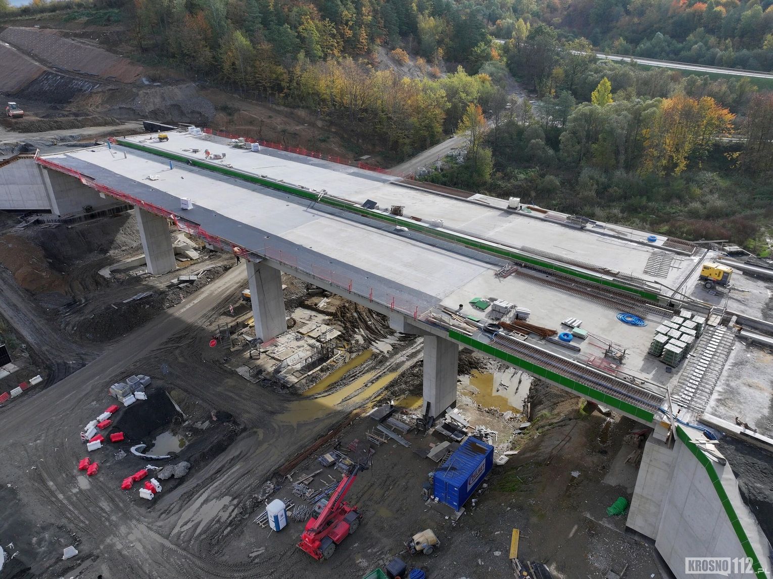 Na odcinku budowanej drogi ekspresowej S19 na odcinku od km ~69 do km ~72 pojawiło się już oznakowanie poziome i pionowe. Trwają również ostatnie prace nad obiektami inżynierskimi, najbardziej opóźnionym z nich jest estakada w Równem ES-2/1, gdzie gotowy jest już ustrój nośny i trwają dalsze etapy budowy. Na Miejscu Obsługi Podróżnych z jednej strony gotowy jest praktycznie cały układ komunikacyjny oraz budynki. Pojawiły się również latarnie na MOP i węźle, montowane są słupy pod ekrany ochronne na obiektach inżynierskich. Na węźle Dukla trwa aktualnie budowa ronda pod wiaduktem oraz łącznika do DK19, co w dalszym ciągu powoduje utrudnienia, pisaliśmy o tym tutaj: Zmiana organizacji ruchu na DK19 w gminie Dukla. Realne utrudnienia