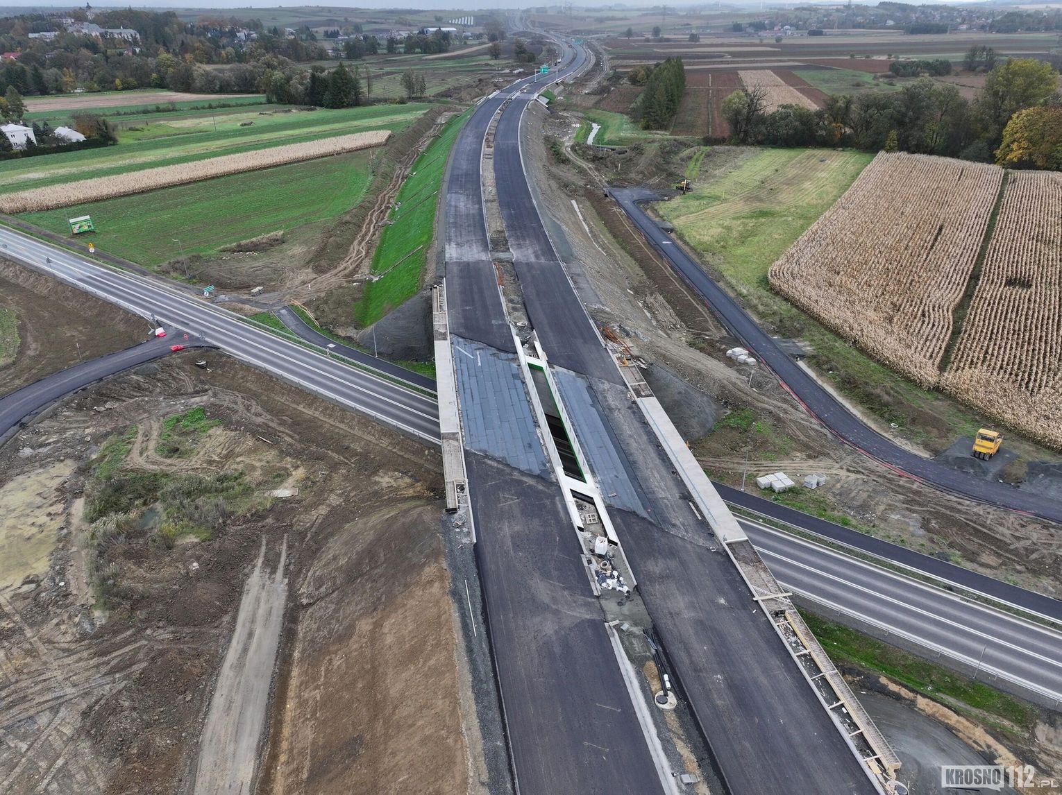 Pierwsze oznakowanie poziome na budowanym odcinku Miejsce Piastowe - Dukla już gotowe, coraz bliżej otwarcia.