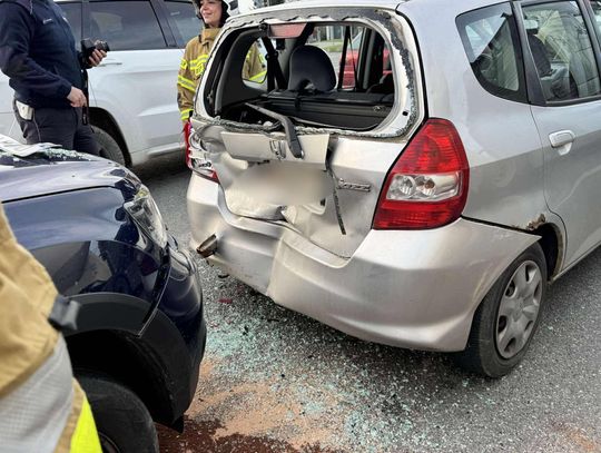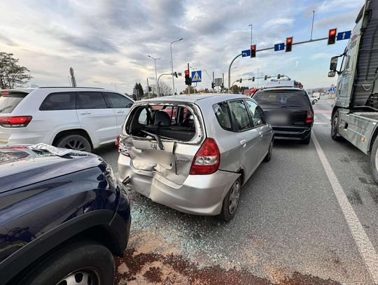 - Pracujący na miejscu policjanci ustalili, że 18-letnia kierująca dacią, w wyniku niezachowania bezpiecznej odległości, najechała na tył hondy, która dodatkowo została zepchnięta na poprzedzającego chryslera. W zdarzeniu nikt nie odniósł poważnych obrażeń. Kierujący byli trzeźwi. Podczas wykonywanych czynności okazało się, że pasażer jednego z pojazdów posiada statusu osoby poszukiwanej. 21-latek został zatrzymany i doprowadzony do komendy, celem wyjaśnienia sprawy - informuje kom. Paweł Buczyński, Oficer Prasowy KMP w Krośnie.