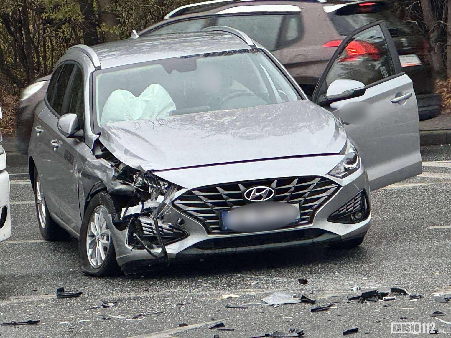 Jedna osoba jest pod opieką medyków (kierowca samochodu osobowego). Busem podróżowały łącznie dwie osoby (kierowca i jedna pasażerka). Wyjazd ze sklepu Kaufland jest zablokowany.