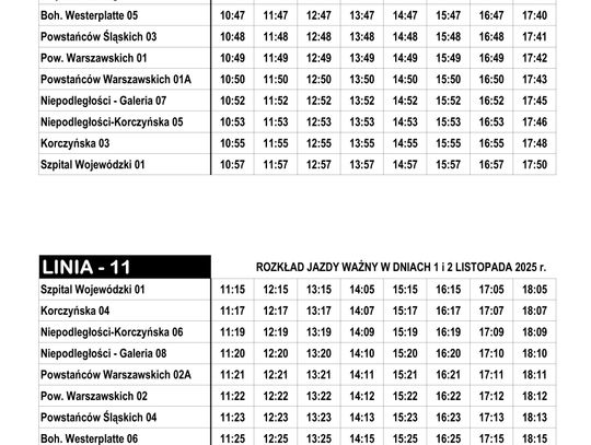 Linia "11" będzie kursowała zgodnie ze świątecznym rozkładem jazdy.