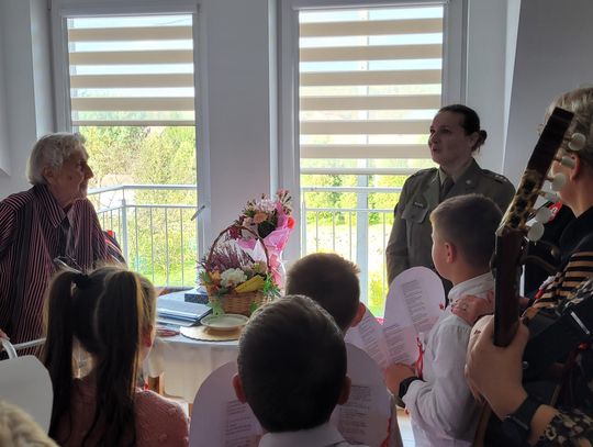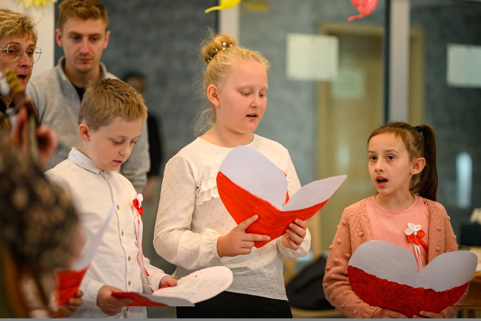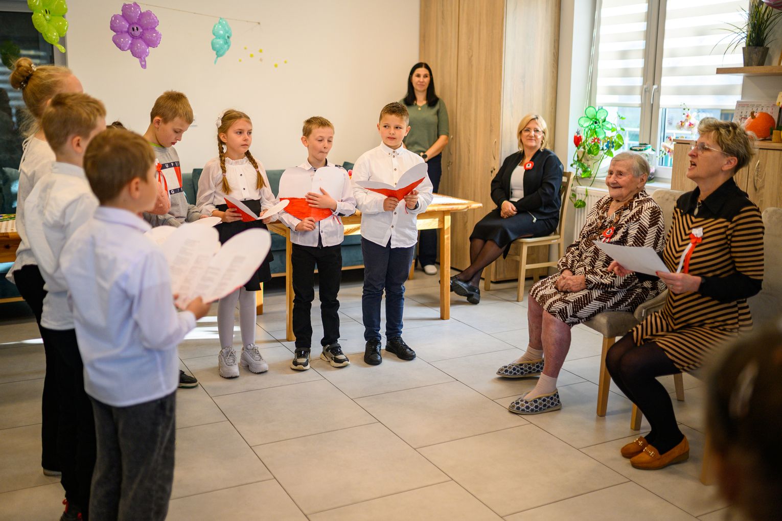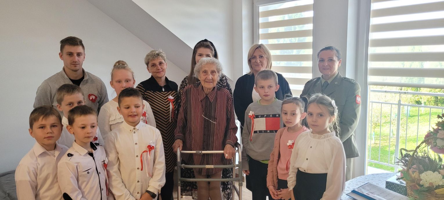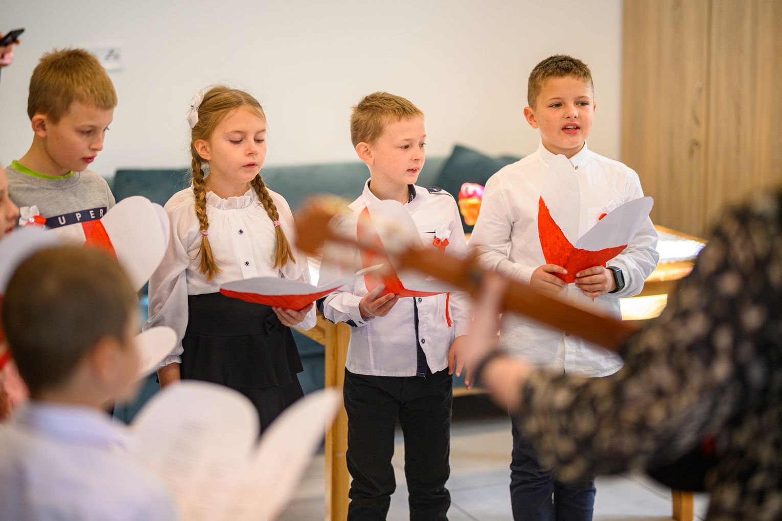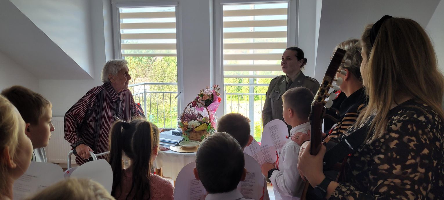 Na zakończeniu spotkania uczniowie przygotowali dla swoich bohaterek wzruszającą niespodziankę – wręczali paniom własnoręcznie wykonane kotyliony i laurki, a następnie zaśpiewali pieśń patriotyczną i recytowali wiersze, podkreślając, że pamiętają o polskich bohaterkach i ich odwadze.