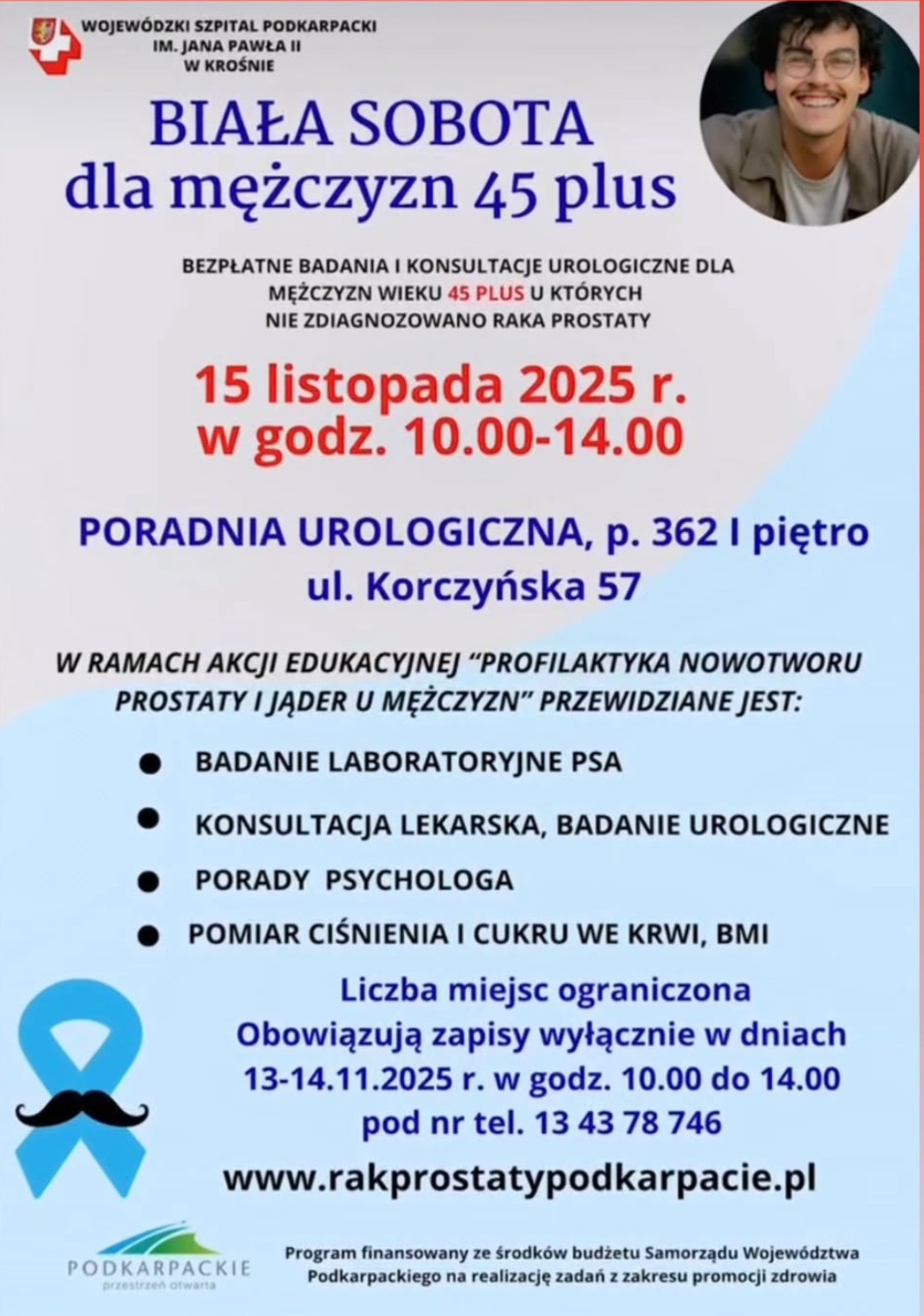 Program finansowany jest z pieniędzy Samorządu Województwa Podkarpackiego na realizację zadań z zakresu promocji zdrowia. Na bezpłatne konsultacje i badania urologiczne obowiązują zapisy. Będą one prowadzone w czwartek i piątek (13 i 14 listopada) pod numerem telefonu 13 43 78 746 od godz. 10:00 do 14:00.