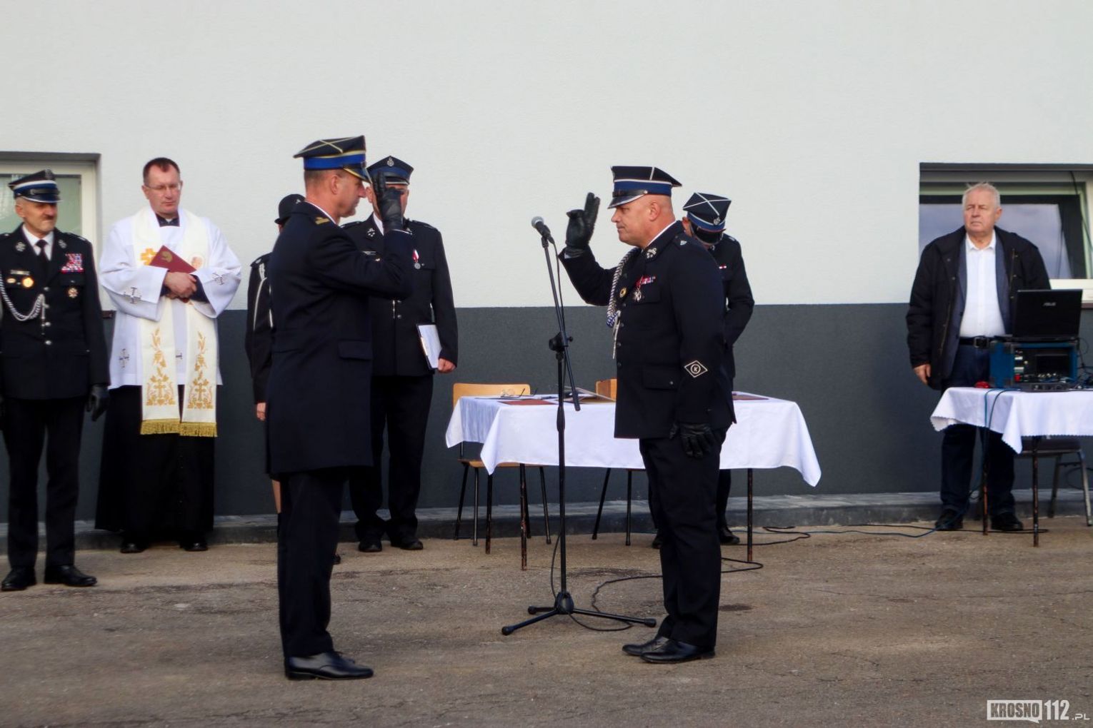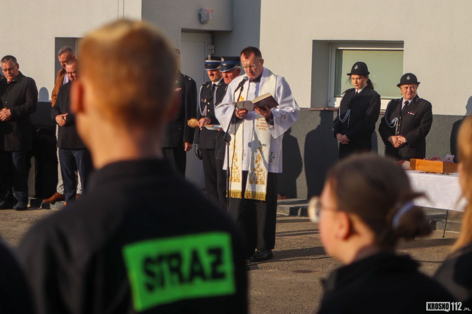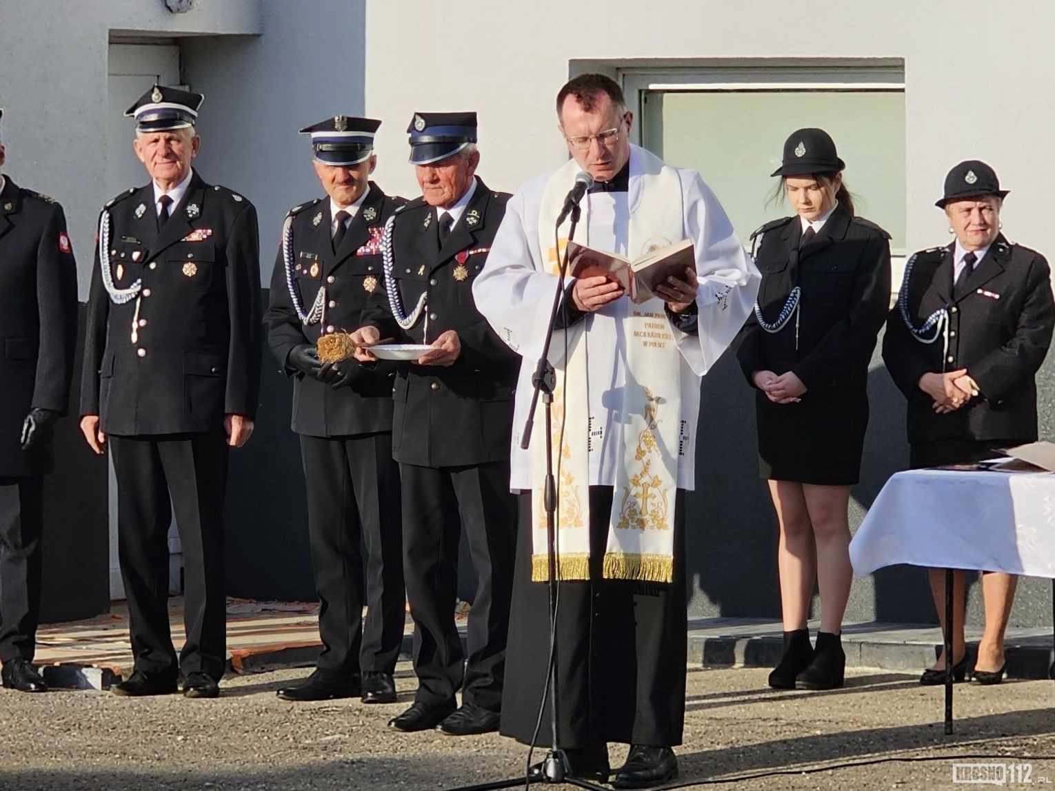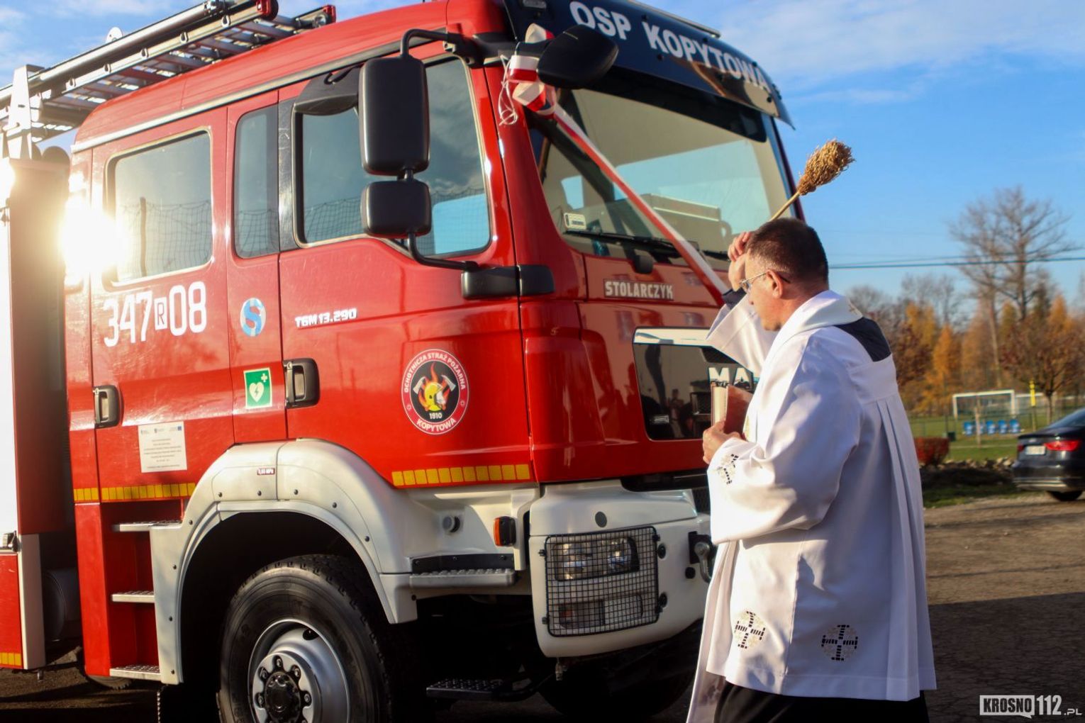 Akt poświęcenia pojazdu przeprowadził ksiądz Jacek Pusztuk – proboszcz Parafii Kopytowa. Po części religijnej dowódca zarządził krótką prezentację techniczną – włączone zostały sygnały świetlne i dźwiękowe pojazdu.