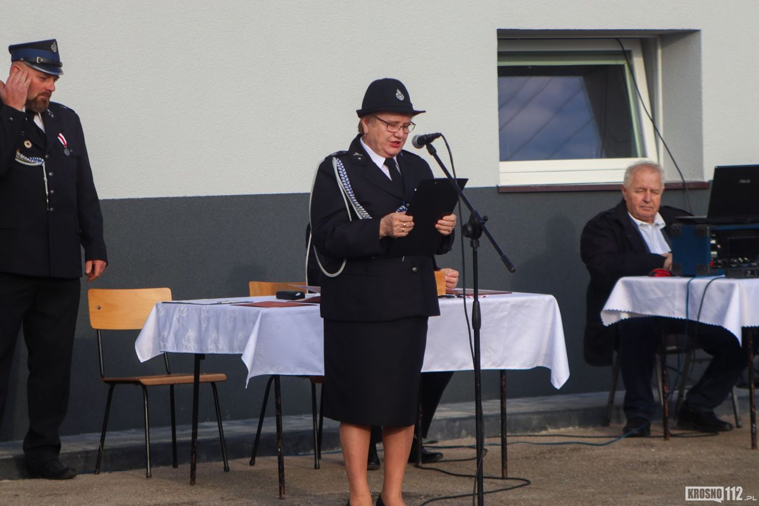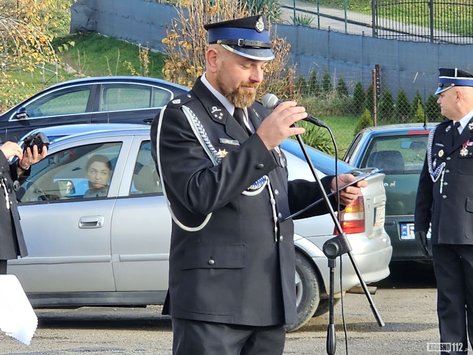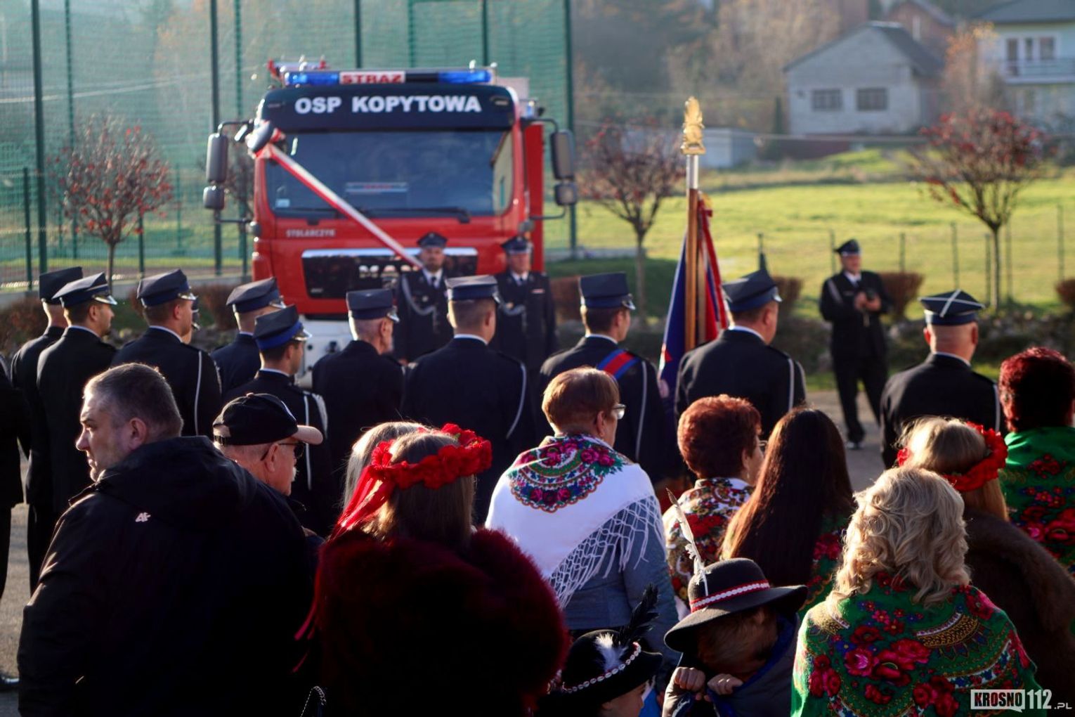 W imieniu organizatorów wszystkich zebranych powitał Naczelnik OSP Kopytowa druh Albert Orlof. Natomiast druhna Aleksandra Sitar przedstawiła okolicznościowy referat, podczas którego podkreśliła znaczenie przekazania samochodu dla bezpieczeństwa mieszkańców miejscowości oraz całej gminy i regionu.