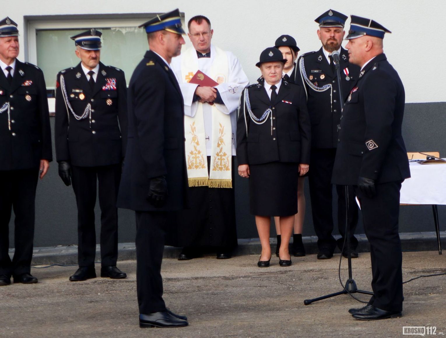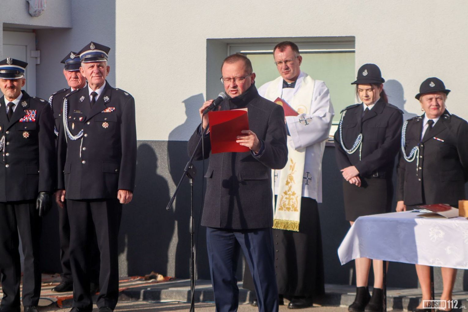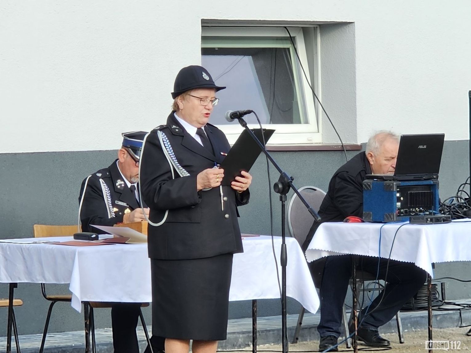 W imieniu organizatorów wszystkich zebranych powitał Naczelnik OSP Kopytowa druh Albert Orlof. Natomiast druhna Aleksandra Sitar przedstawiła okolicznościowy referat, podczas którego podkreśliła znaczenie przekazania samochodu dla bezpieczeństwa mieszkańców miejscowości oraz całej gminy i regionu.