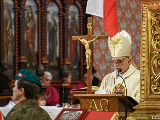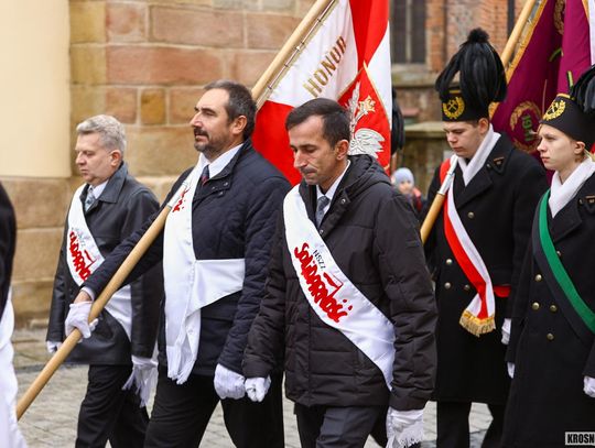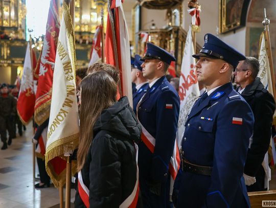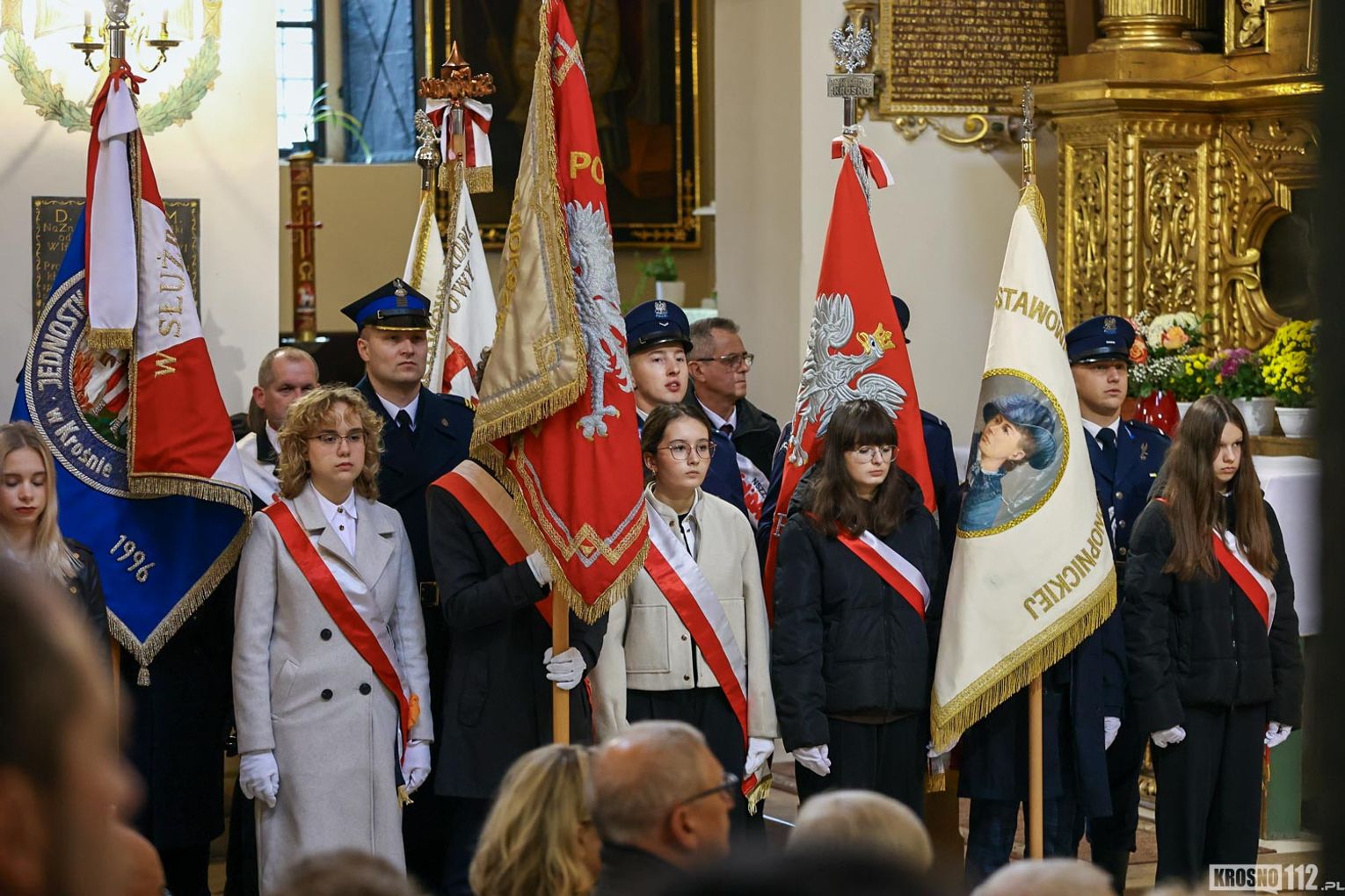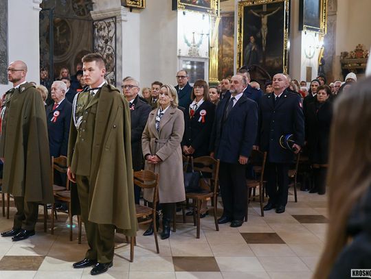 Centralnym punktem uroczystości była Msza Święta za Ojczyznę, odprawiona w Bazylice Kolegiackiej w Krośnie. Liturgii przewodniczył Ksiądz Biskup Stanisław Jamrozek, który w homilii podkreślił znaczenie wolności, jedności narodowej i troski o wspólne dobro. W trakcie nabożeństwa miało miejsce szczególne wydarzenie – odsłonięcie tablicy upamiętniającej 1000-lecie Koronacji Bolesława Chrobrego na Króla Polski, przypominającej o tysiącletniej tradycji polskiej państwowości.