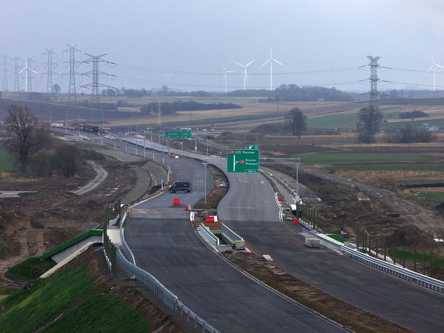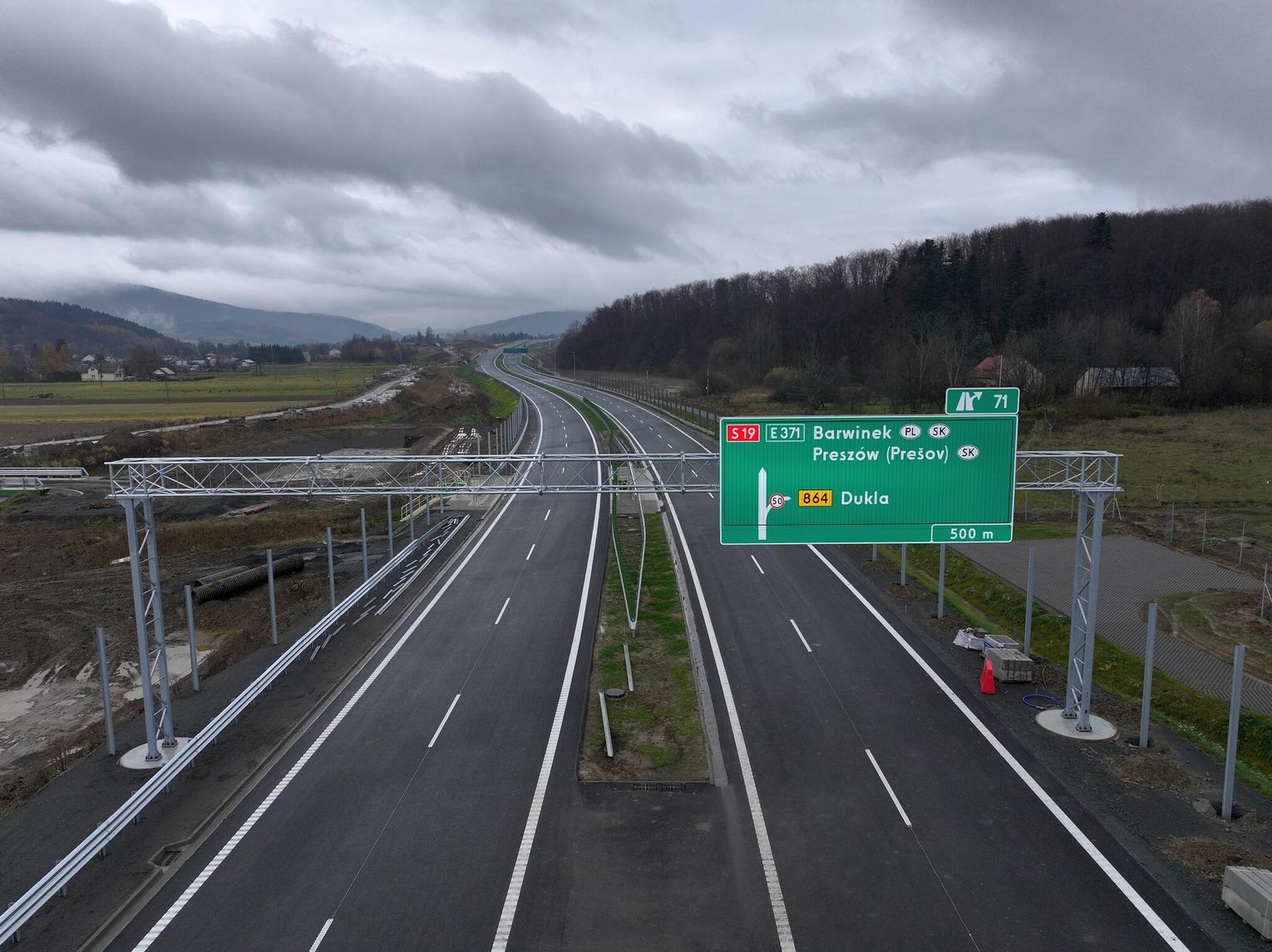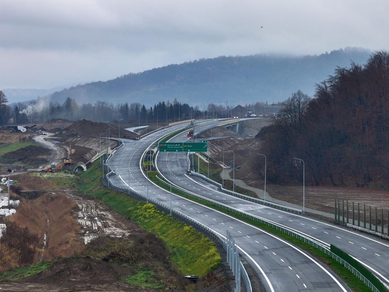 Trwają końcowe prace przy odcinku drogi ekspresowej nr 19 Miejsce Piastowe - Dukla. Trasa jest intensywnie przygotowywana do przyjęcia pierwszych kierowców, co może nastąpić już na przełomie listopada i grudnia (równolegle zostanie otwarty odcinek od węzła "Krosno" do Miejsca Piastowego). Montowane są bariery i ekrany ochronne na obiektach inżynierskich, malowane są pasy, wylewane są ostatnie fragmenty asfaltu, a na estakadzie w Równem na ukończeniu jest betonowanie kap chodnikowych i niedługo obiekt będzie gotowy. Przejezdne jest już rondo w ciągu drogi krajowej nr 19, które połączy ją z węzłem "Dukla" o czym pisaliśmy tutaj: Budowa S19. Otwarto rondo w Zboiskach i ulicę Kopalnianą w Równem