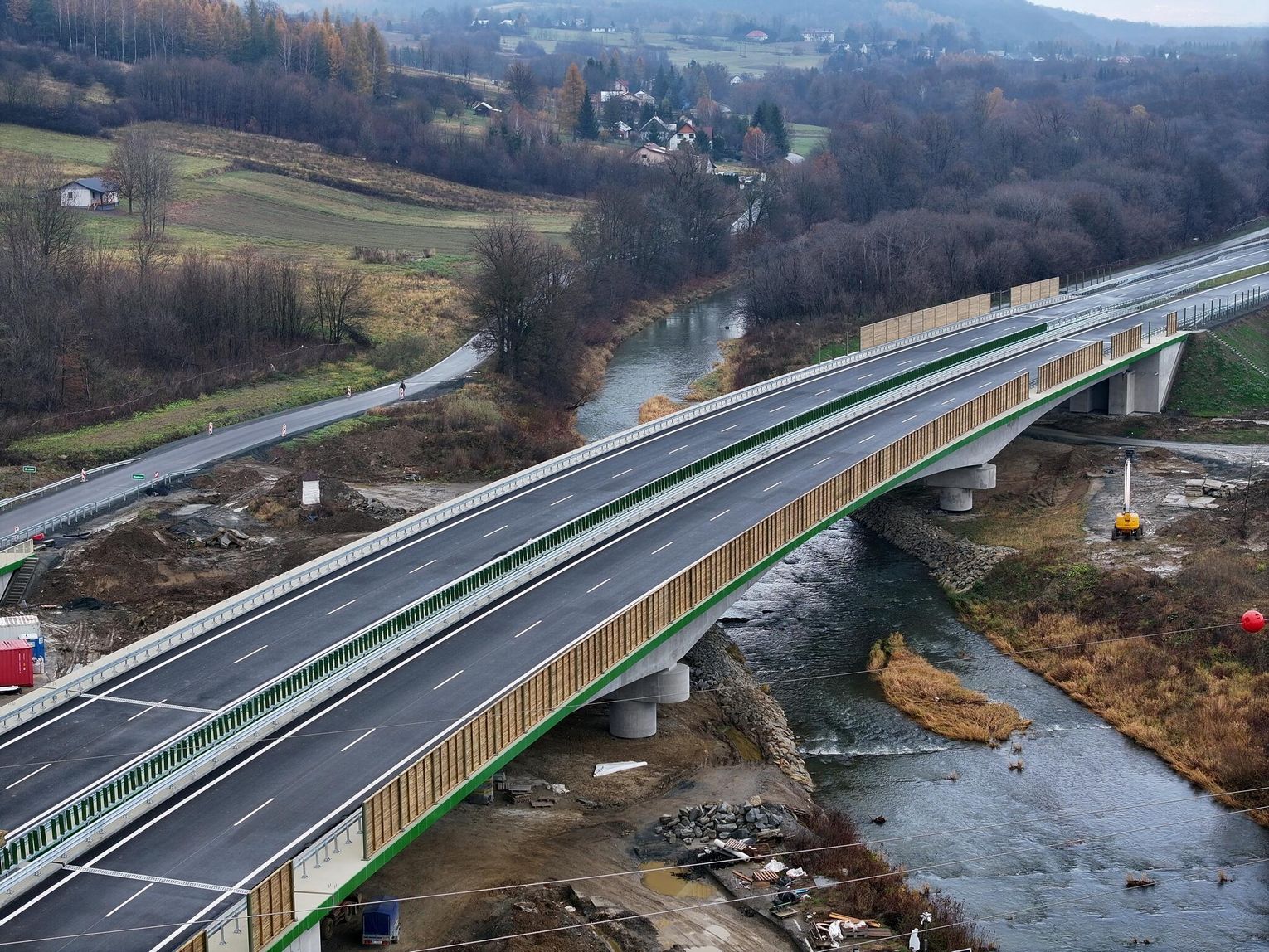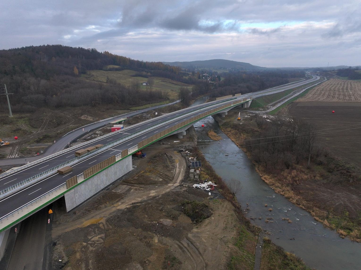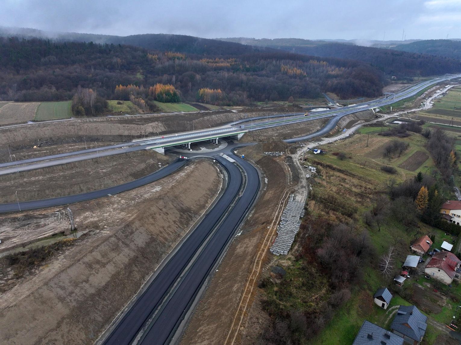 Trwają końcowe prace przy odcinku drogi ekspresowej nr 19 Miejsce Piastowe - Dukla. Trasa jest intensywnie przygotowywana do przyjęcia pierwszych kierowców, co może nastąpić już na przełomie listopada i grudnia (równolegle zostanie otwarty odcinek od węzła "Krosno" do Miejsca Piastowego). Montowane są bariery i ekrany ochronne na obiektach inżynierskich, malowane są pasy, wylewane są ostatnie fragmenty asfaltu, a na estakadzie w Równem na ukończeniu jest betonowanie kap chodnikowych i niedługo obiekt będzie gotowy. Przejezdne jest już rondo w ciągu drogi krajowej nr 19, które połączy ją z węzłem "Dukla" o czym pisaliśmy tutaj: Budowa S19. Otwarto rondo w Zboiskach i ulicę Kopalnianą w Równem