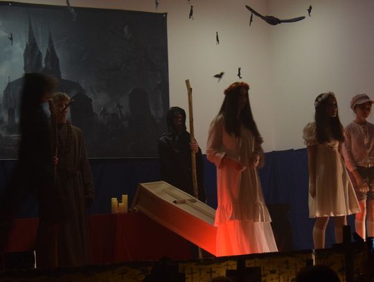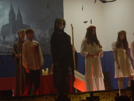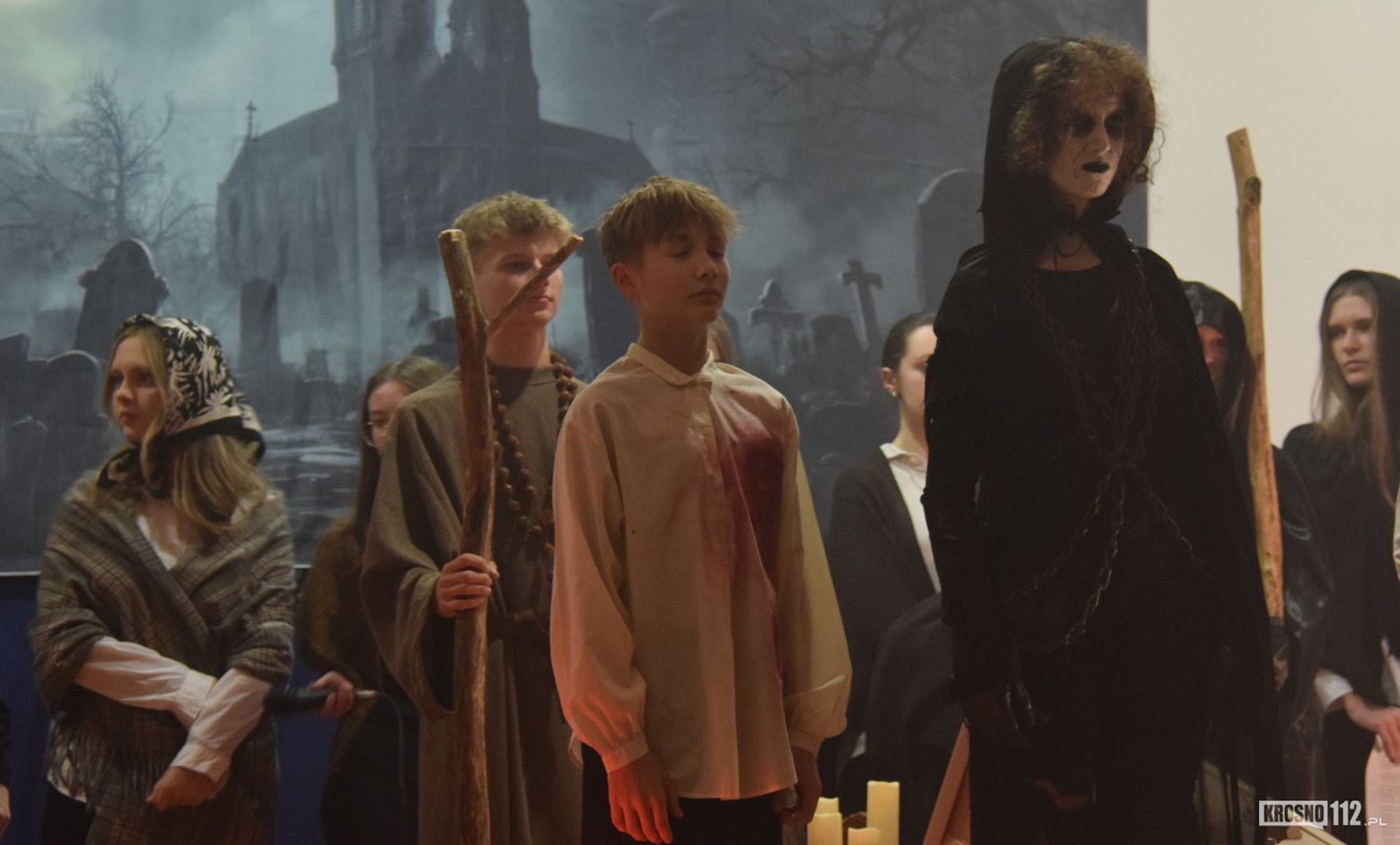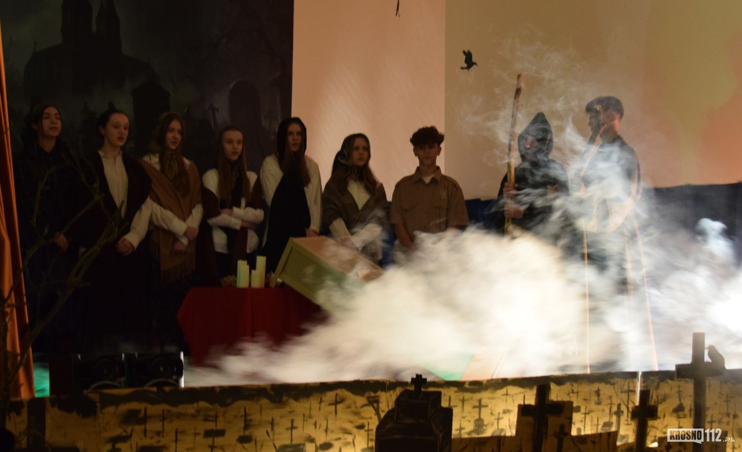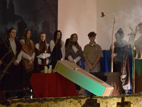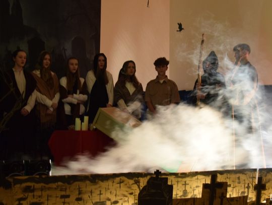 Spektakl był oryginalną lekcją literatury – pełną emocji, światła i teatralnej ekspresji. Widzowie mogli zanurzyć się w atmosferze tajemniczego obrzędu, w którym granica między światem żywych a umarłych staje się płynna.