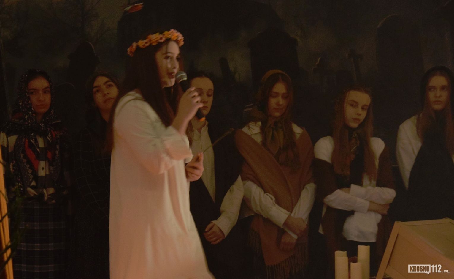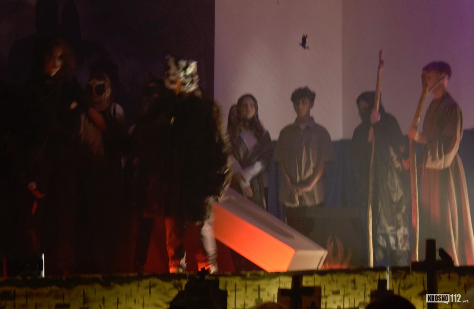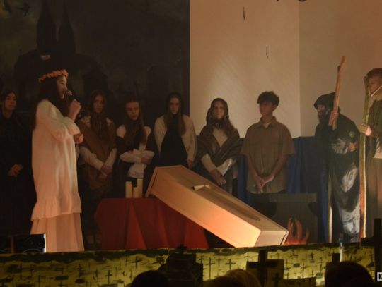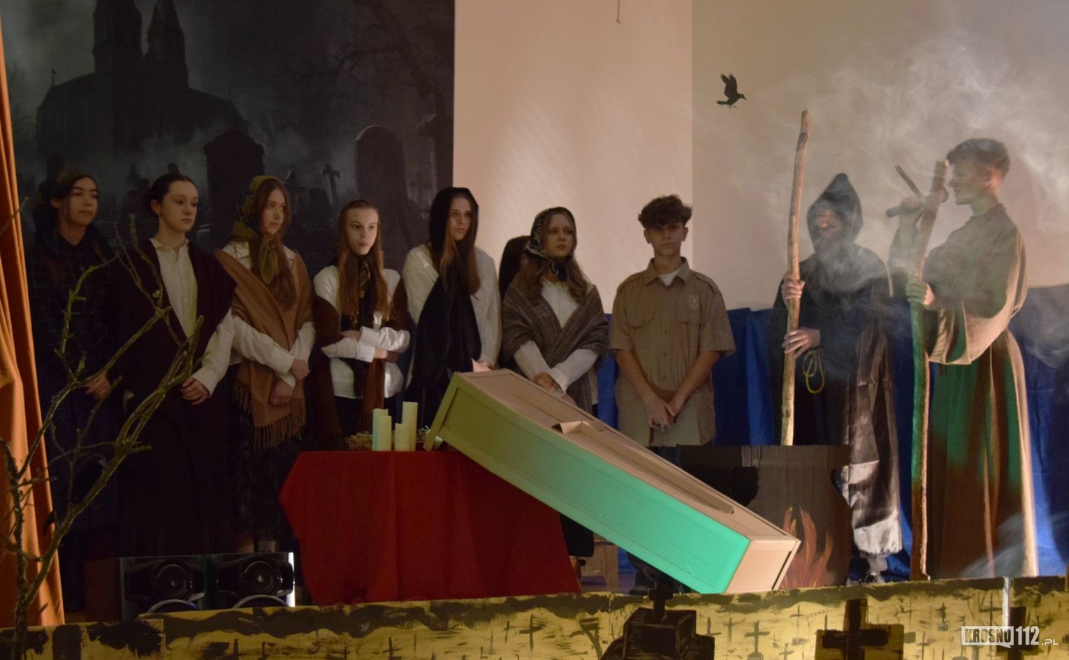 Spektakl był oryginalną lekcją literatury – pełną emocji, światła i teatralnej ekspresji. Widzowie mogli zanurzyć się w atmosferze tajemniczego obrzędu, w którym granica między światem żywych a umarłych staje się płynna.