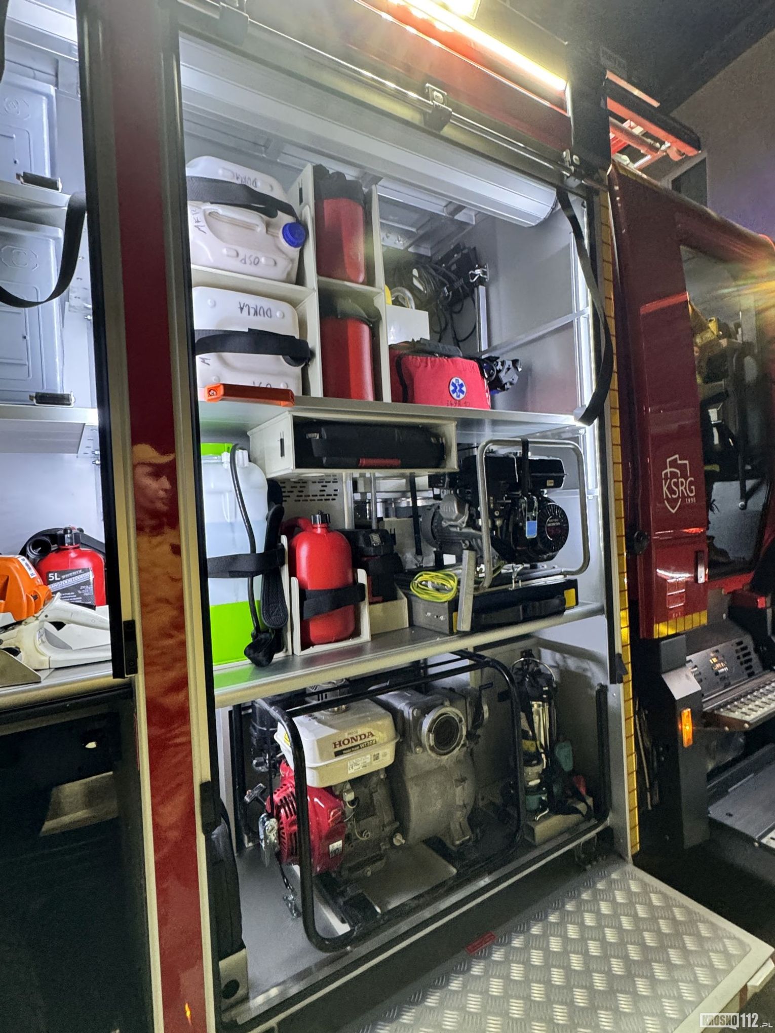 Na zabudowie znajduje się prócz sprzętu hydraulicznego również zbiornik na wodę o pojemności 3000 litrów oraz zbiornik 300 litrów na środek pianotwórczy, na zabudowie jest autopompa o wydajności 3000 l/min, działko wodno-pianowe o wydajności 1800 l/min, linia szybkiego natarcia o długości kilkudziesięciu metrów, czy też maszt oświetleniowy umożliwiający skuteczne działania nocą.