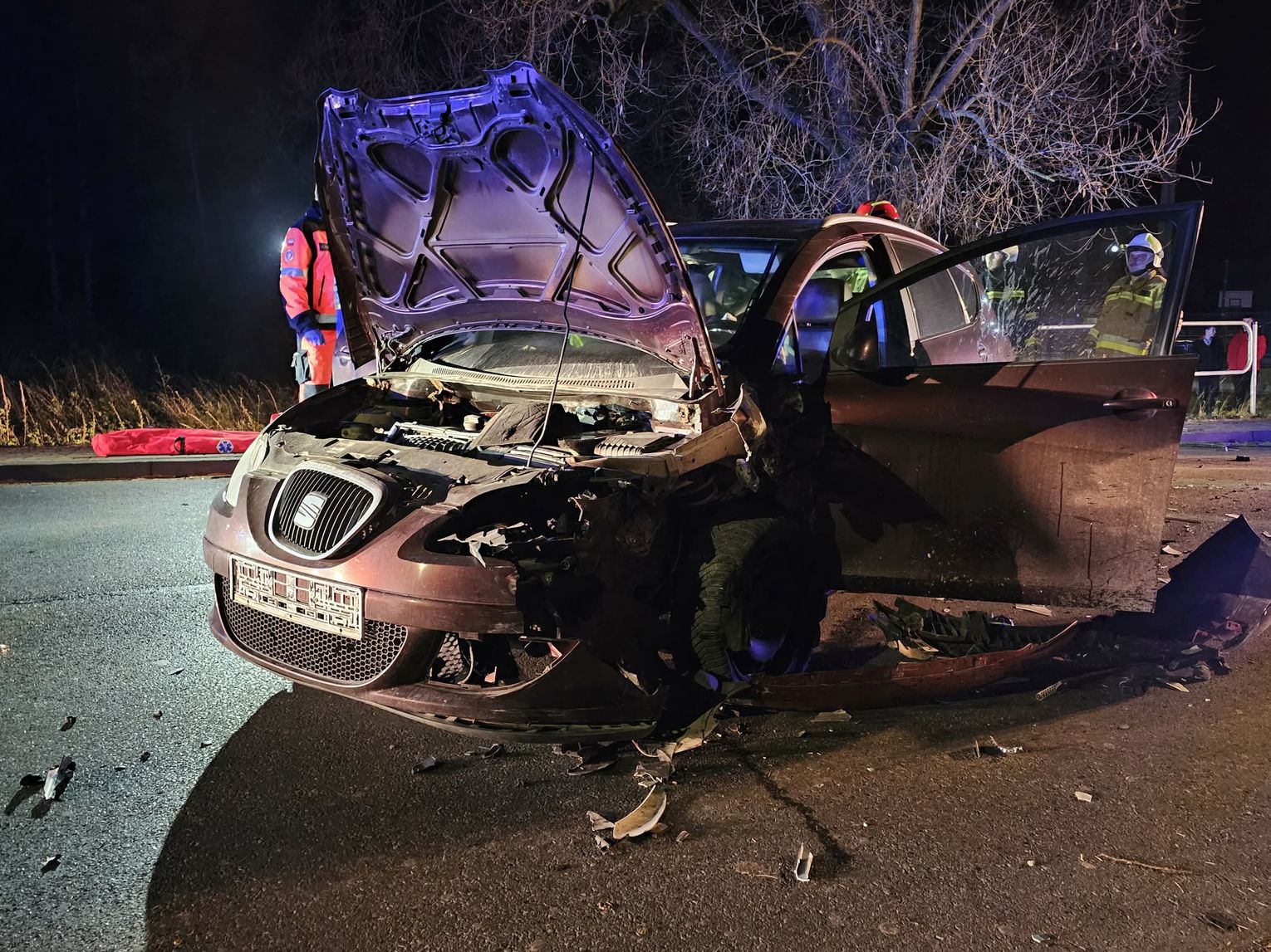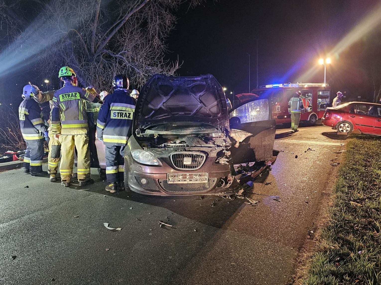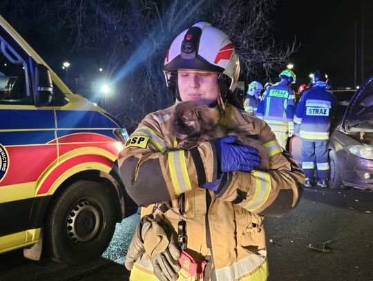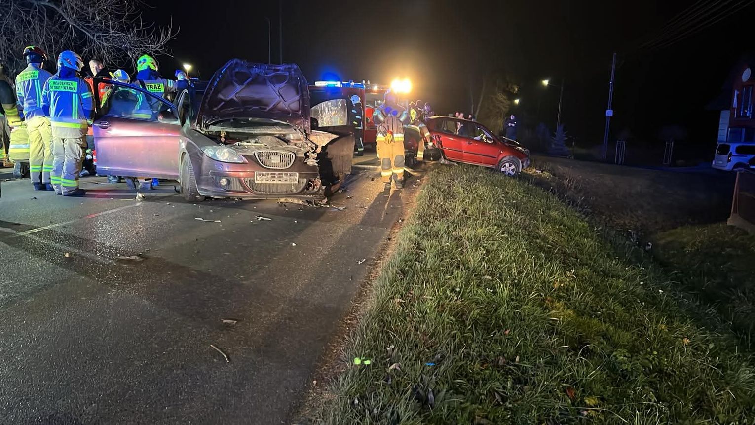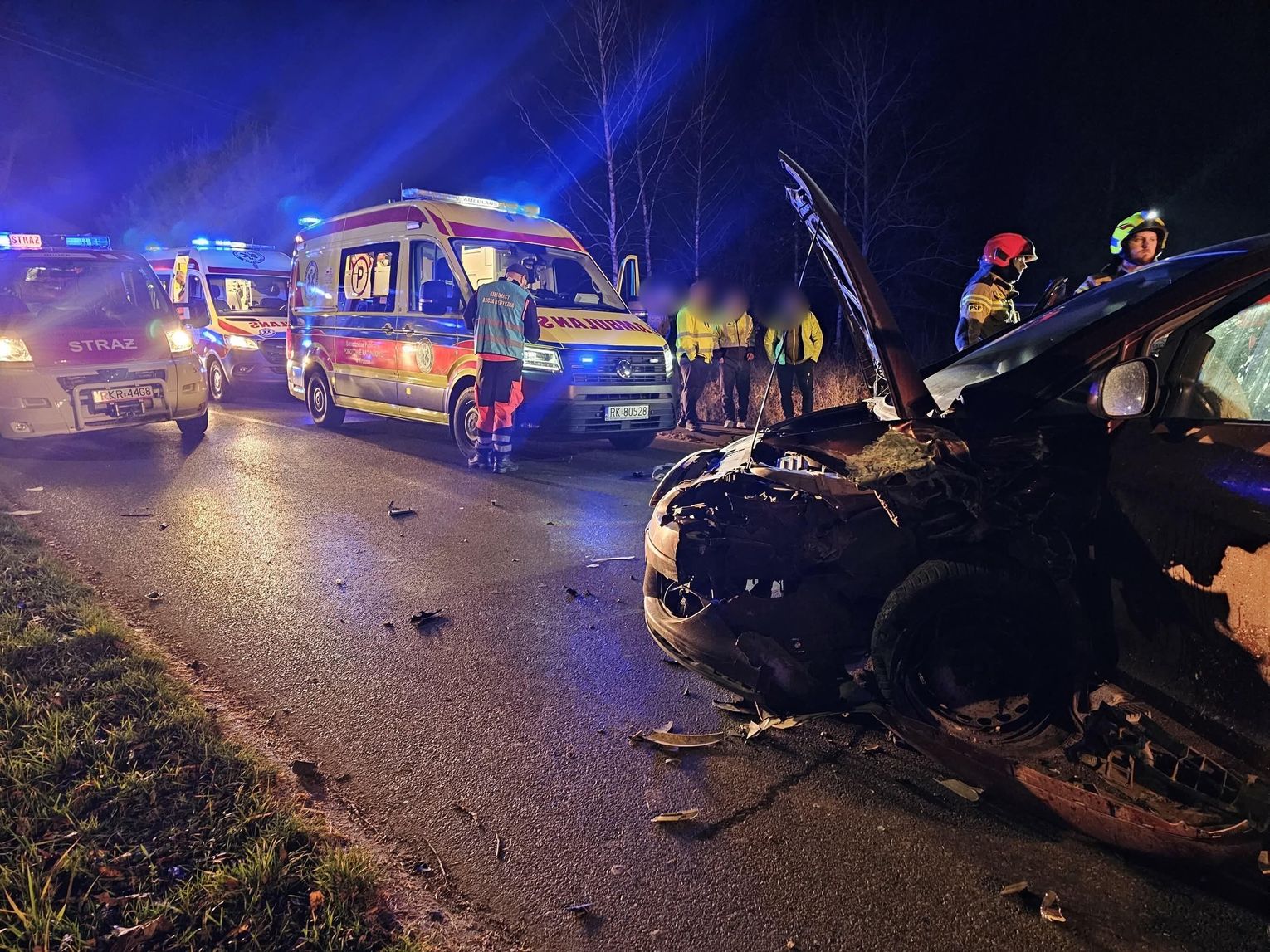 AKTUALIZACJA: W pojazdach podróżowało łącznie siedem osób i pies. Trzy z nich odniosły obrażenia. Droga jest całkowicie zablokowana. Trwa wyjaśnianie okoliczności tego zdarzenia.