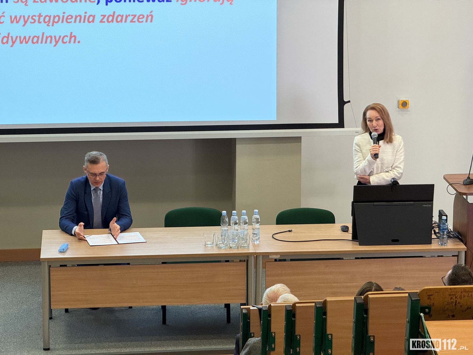 Znaczenie szerokiego spojrzenia na bezpieczeństwo akcentowała również dr Agnieszka Woźniak, prorektor ds. rozwoju PANS w Krośnie. Wskazała, że współczesne zagrożenia – od cyberataków, przez zmiany klimatyczne, po wyzwania migracyjne – wymagają zaangażowania całych społeczności, a nie tylko służb mundurowych.