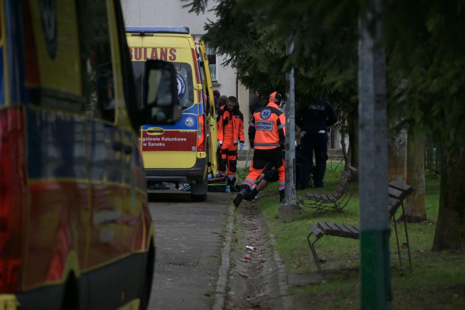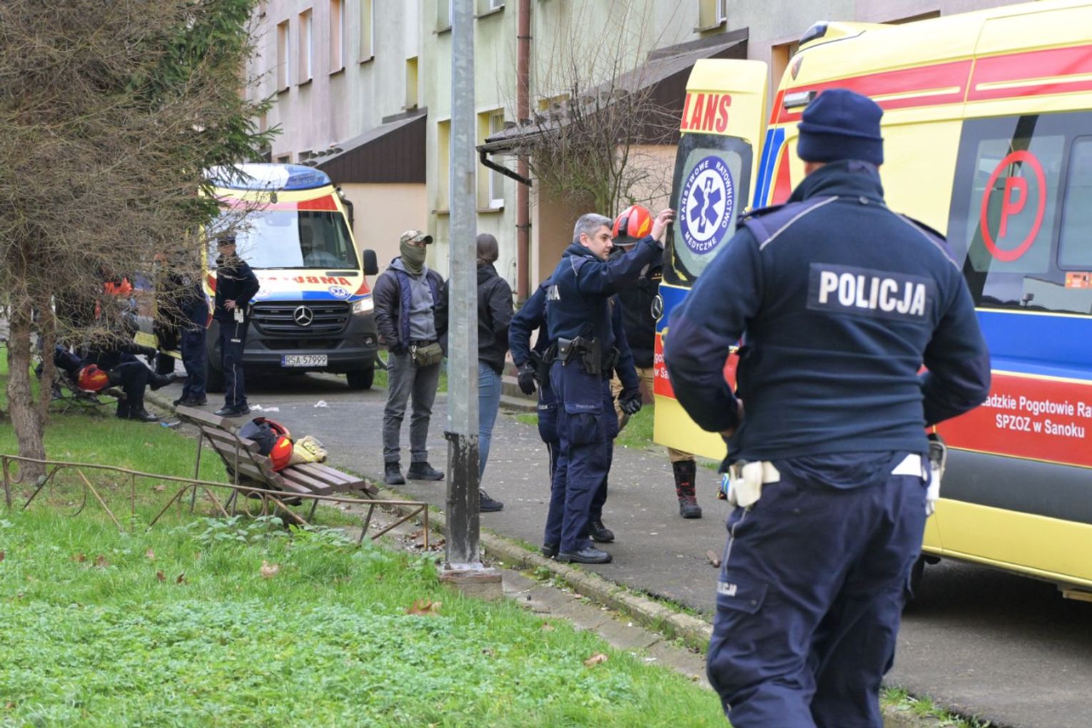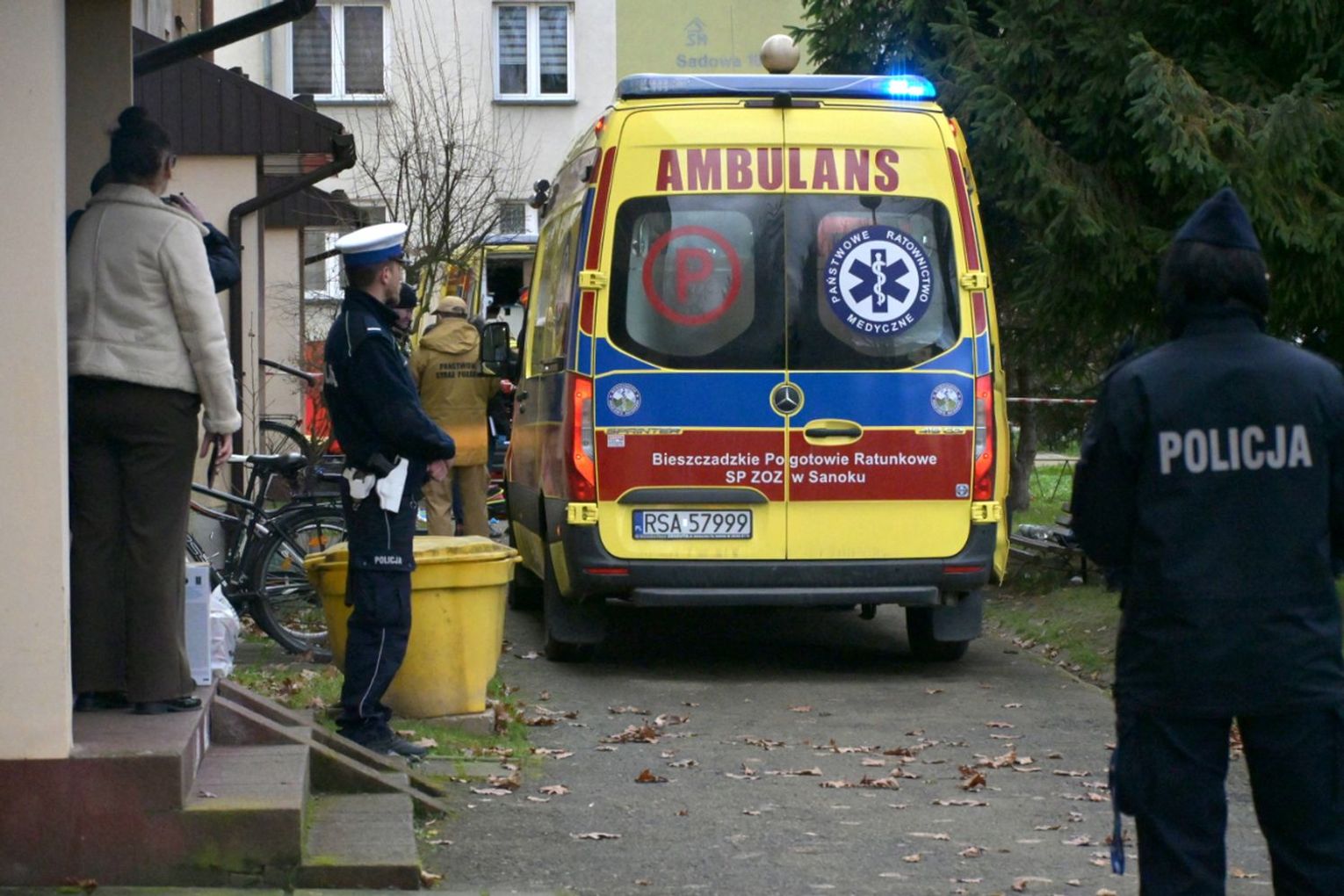 Policjanci otrzymali informację o agresywnym mężczyźnie, który zamknął się ze swoją matką w jednym z mieszkań w Sanoku. Z uwagi na to, że w mieszkaniu włączył się czujnik gazu, istniało podejrzenie, że mógł odkręcić kurki z gazem, dlatego podjęto decyzję o wejściu do środka. Agresywny mężczyzna zaatakował ostrym narzędziem dwóch policjantów oraz strażaka. Policjanci użyli śródków przymusu bezpośredniego, jednak te środki nie skutkowały, użyli broni służbowej. Mimo reanimacji życia mężczyzny nie udało się uratować. W mieszkaniu policjanci znaleźli ciało kobiety. Na miejscu trwają czynności.