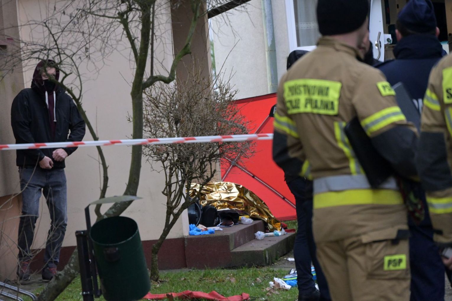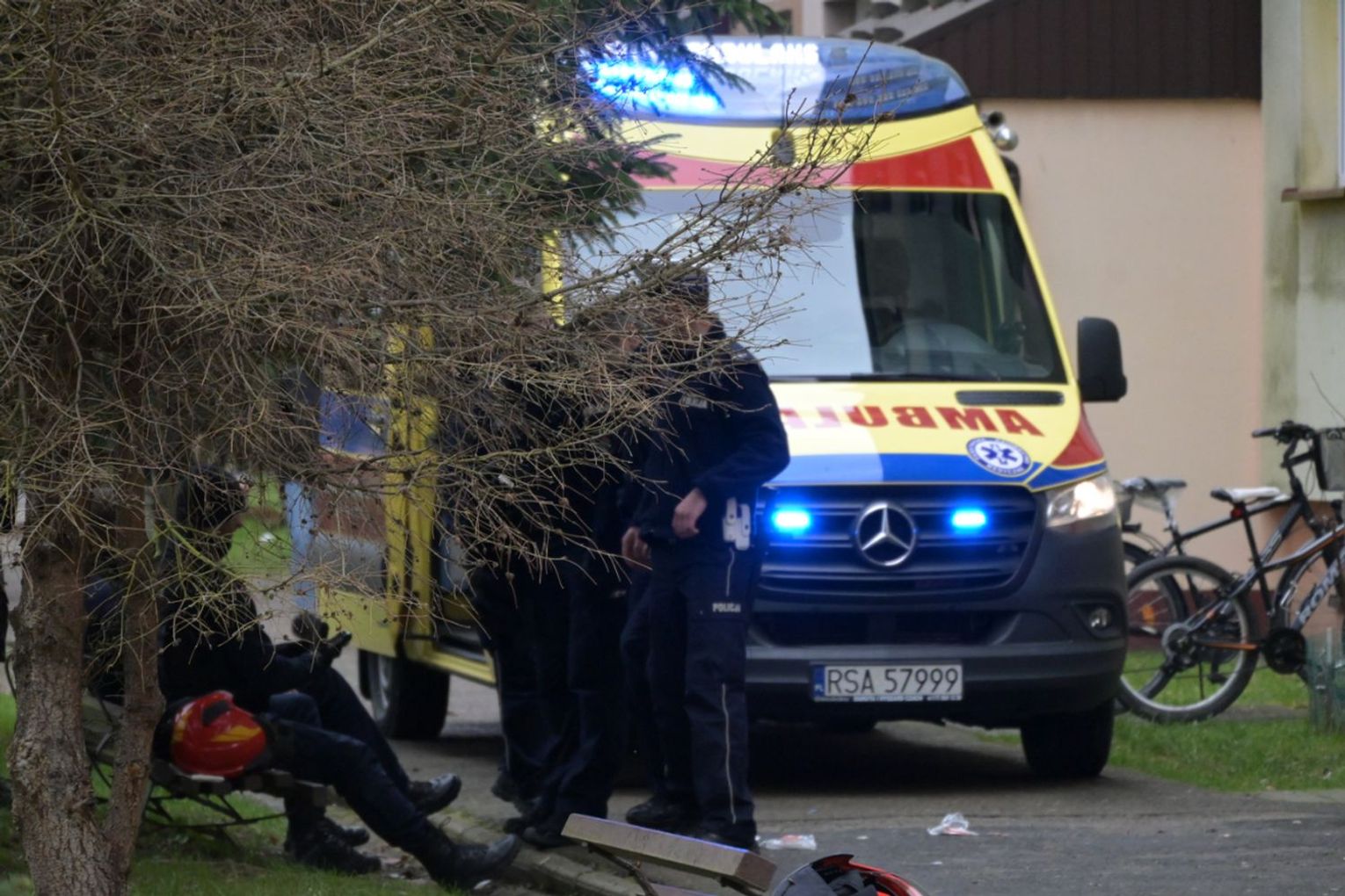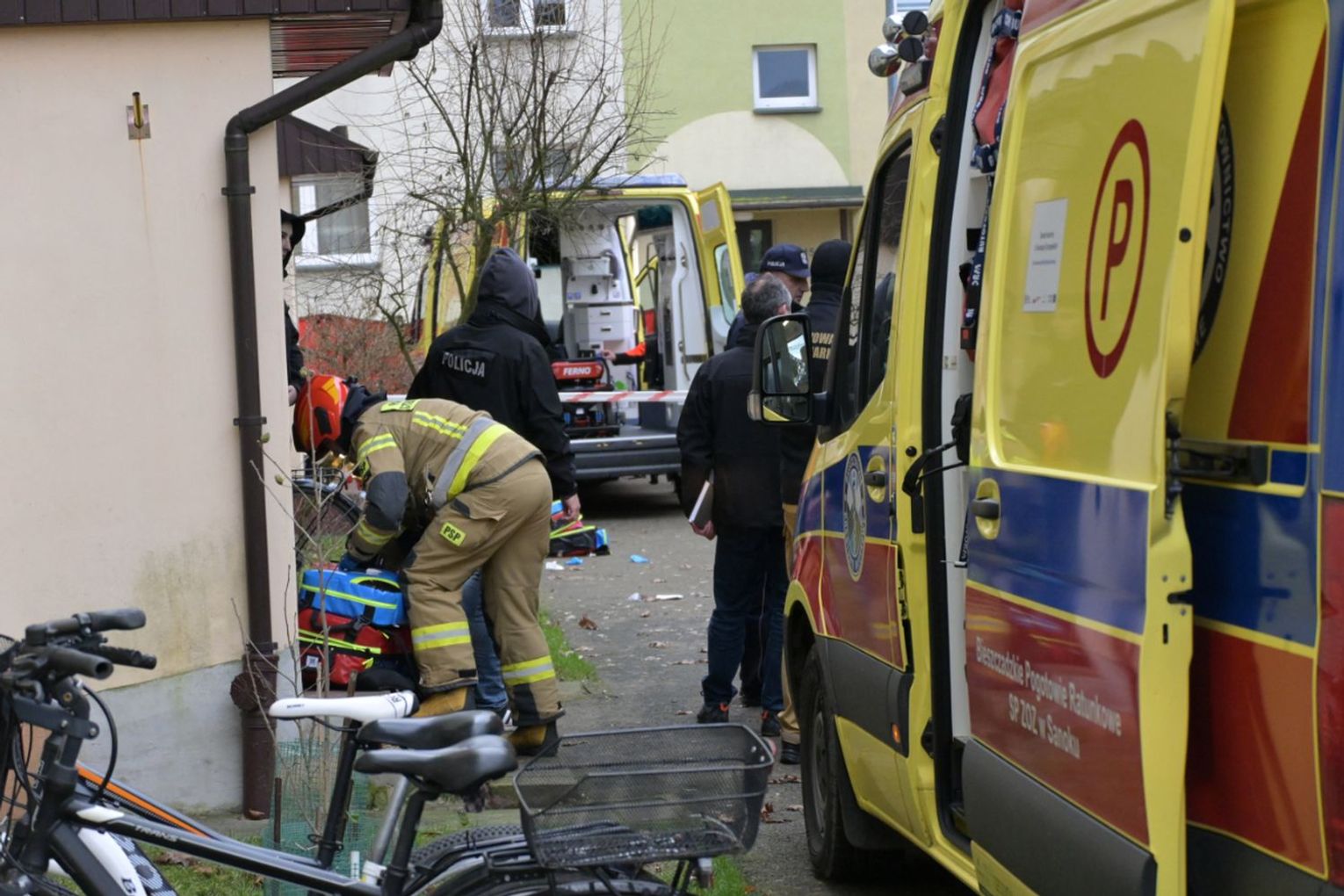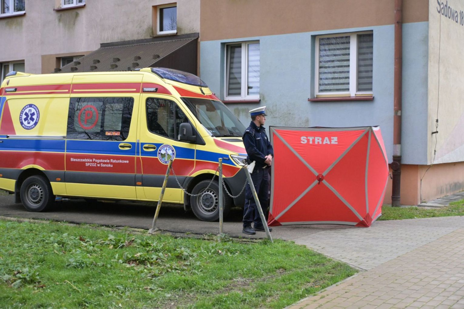Policjanci otrzymali informację o agresywnym mężczyźnie, który zamknął się ze swoją matką w jednym z mieszkań w Sanoku. Z uwagi na to, że w mieszkaniu włączył się czujnik gazu, istniało podejrzenie, że mógł odkręcić kurki z gazem, dlatego podjęto decyzję o wejściu do środka. Agresywny mężczyzna zaatakował ostrym narzędziem dwóch policjantów oraz strażaka. Policjanci użyli śródków przymusu bezpośredniego, jednak te środki nie skutkowały, użyli broni służbowej. Mimo reanimacji życia mężczyzny nie udało się uratować. W mieszkaniu policjanci znaleźli ciało kobiety. Na miejscu trwają czynności.