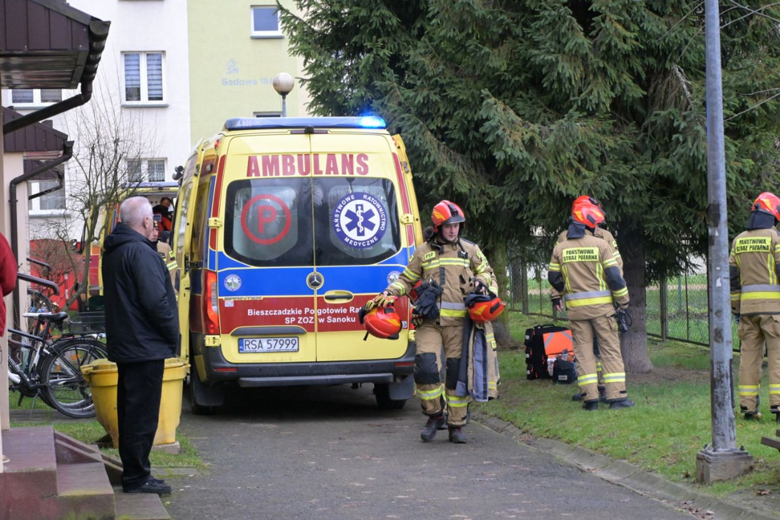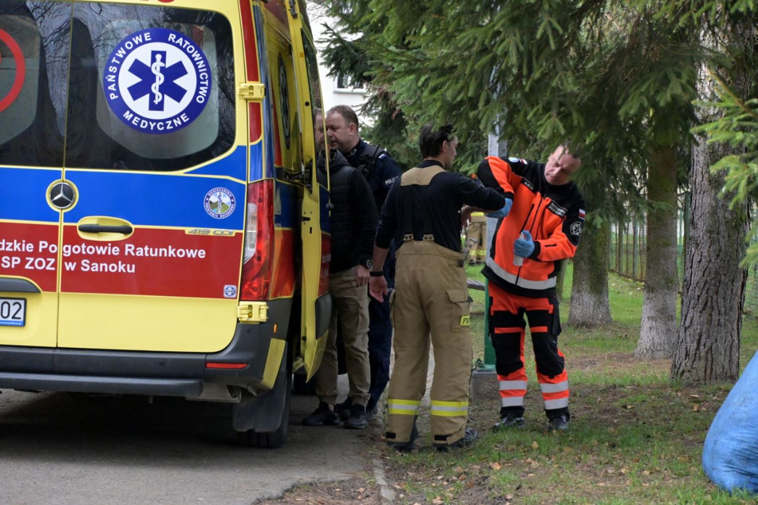 - O godzinie 10:00 dostaliśmy zgłoszenie, że wewnątrz mieszania w Sanoku przy ulicy Sadowej znajduje się mężczyzna z zaburzeniami psychicznymi i ze zgłoszenia wynikało, że włączony jest detektor gazu. Na miejsce został wysłany zastęp z JRG Sanok, po przybyciu wspólnie z policją dokonano otwarcia drzwi mieszkania. Po ich otwarciu służby zostały zaatakowane przez znajdującego się wewnątrz mężczyznę, który ranił policjantów i strażaka. Swoje działania podjęła policja. W wyniku tego ataku zostało dwóch policjantów i jeden strażak. Strażak doznał rany ciętej tułowia oraz ręki. Pierwszej pomocy udzielili mu strażacy jak i ZRM będący na miejscu zdarzenia. Przed chwilą został przetransportowany śmigłowcem LPR do szpitala w Rzeszowie.