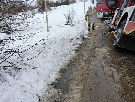 Dzięki wspólnym działaniom oraz wykorzystaniu specjalistycznego sprzętu i odpowiednich technik, strażakom udało się bezpiecznie sprowadzić pojazd na asfalt. W zdarzeniu nikt nie ucierpiał.