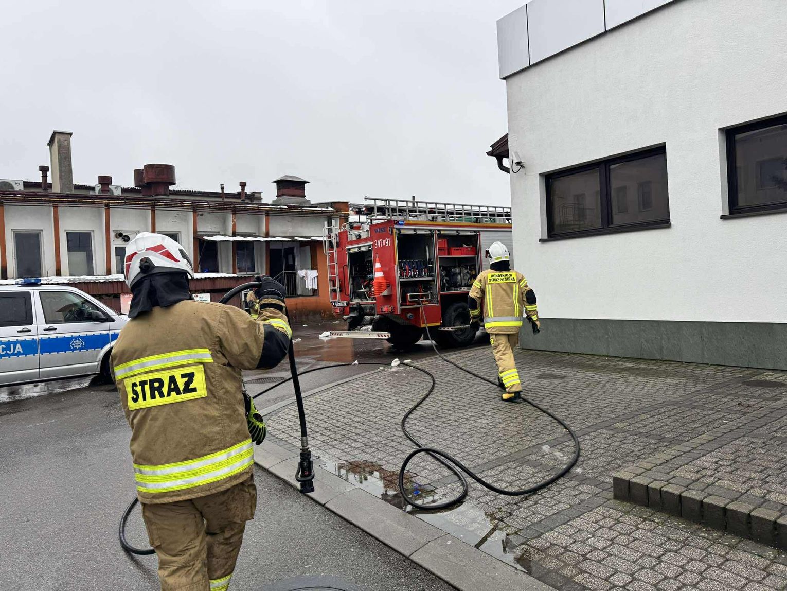 Po dojeździe zastępów straży pożarnej stwierdzono pożar wnęki, gdzie były składowane odpady oraz duże zadymienie w budynku. Ogień częściowo przeniósł się na ścianę budynku. Sytuacja została opanowana. Nikt nie został ranny.