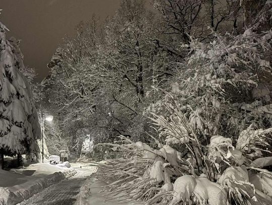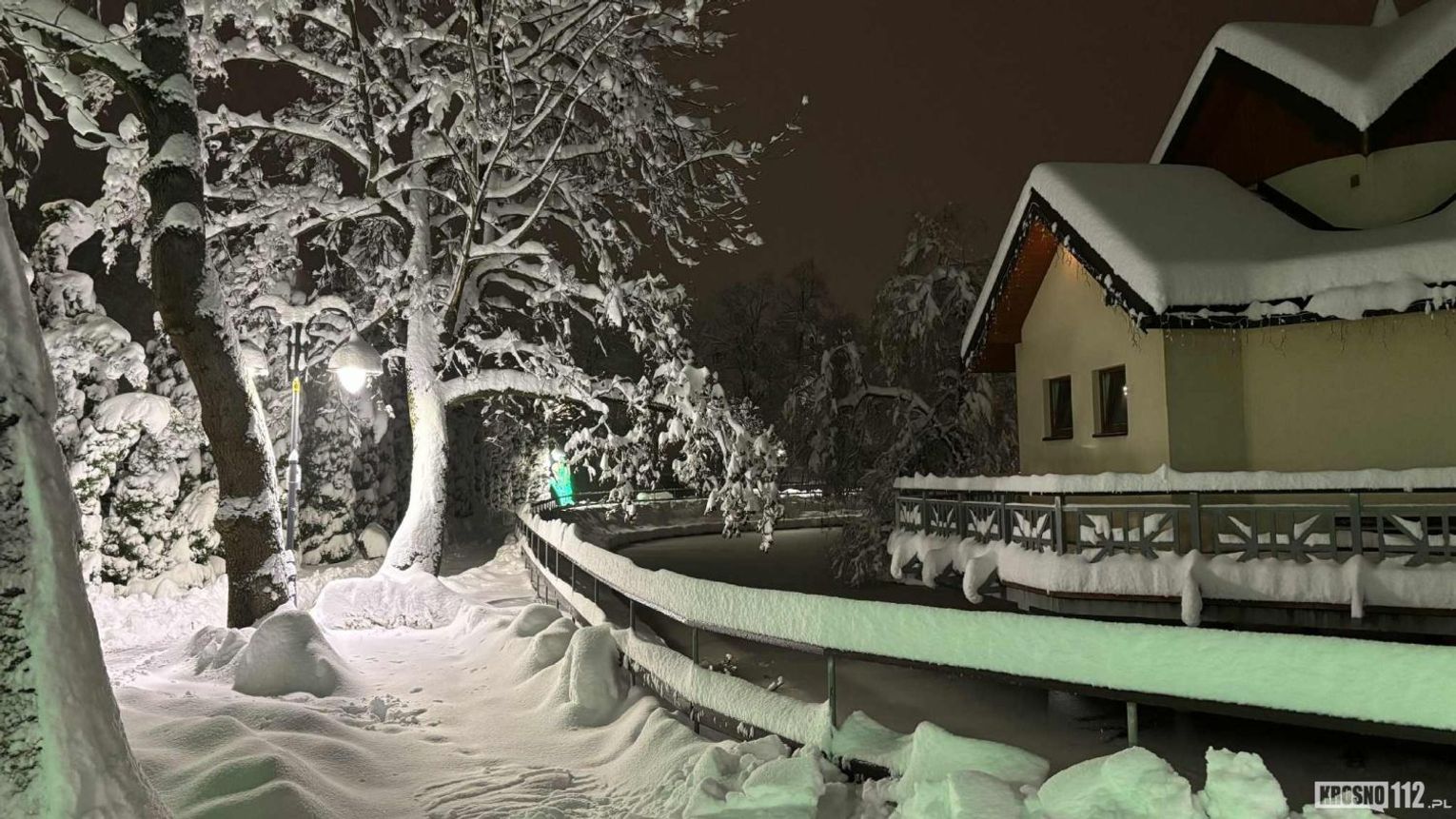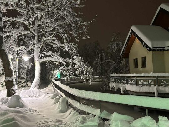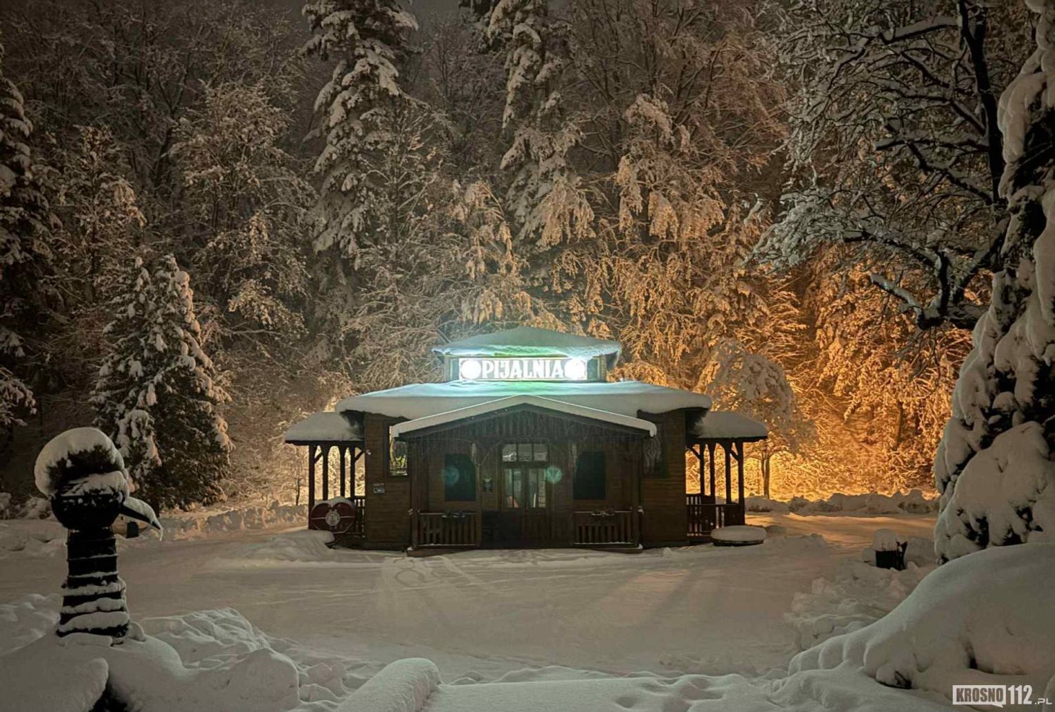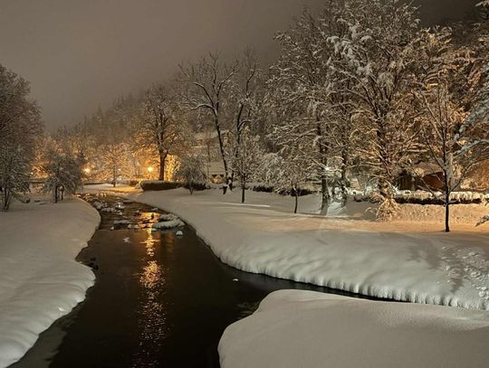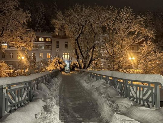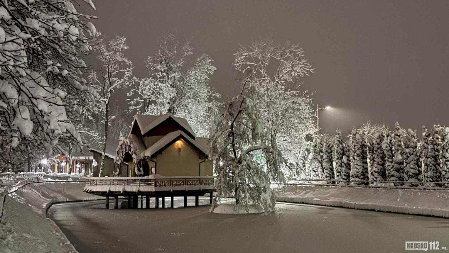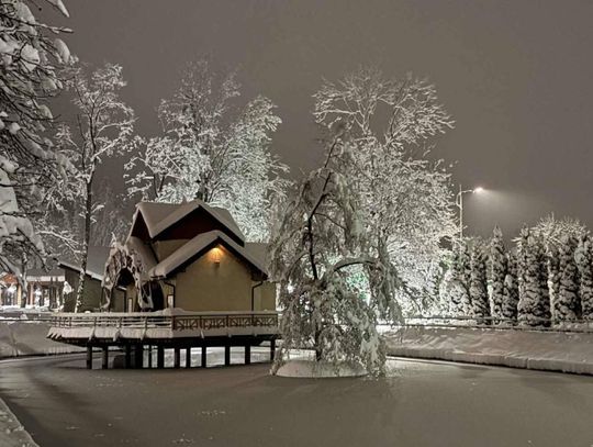 Najbardziej malowniczo prezentuje się okolica Pijalni Wód Mineralnych i tężni—kontrast brązów drewnianych konstrukcji z czystą bielą śniegu przyciąga spacerowiczów i fotografów. Szum rzeki Taboru stłumiła śnieżna pierzynka, a smukłe sylwetki drzew pokryte mrozem stały się naturalnymi rzeźbami.