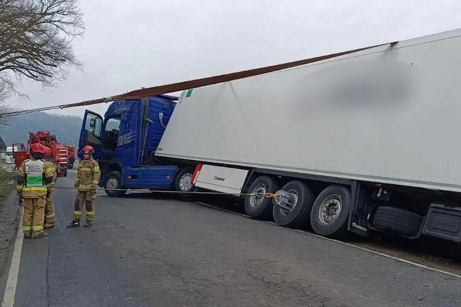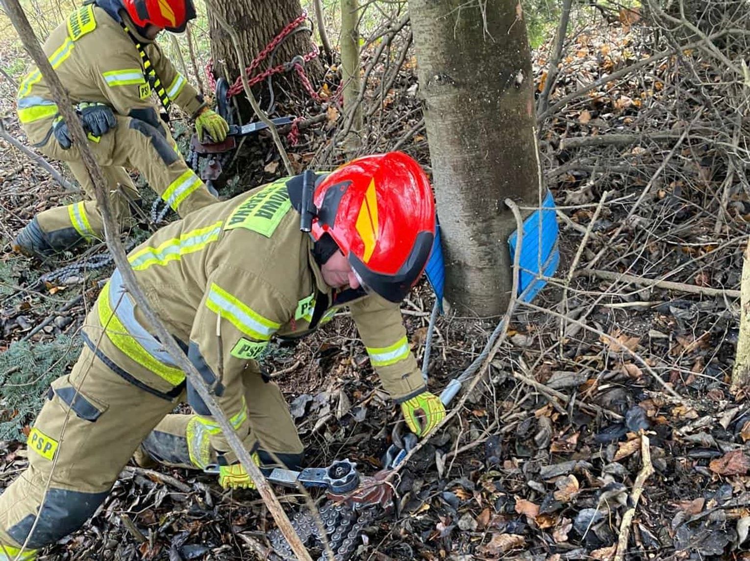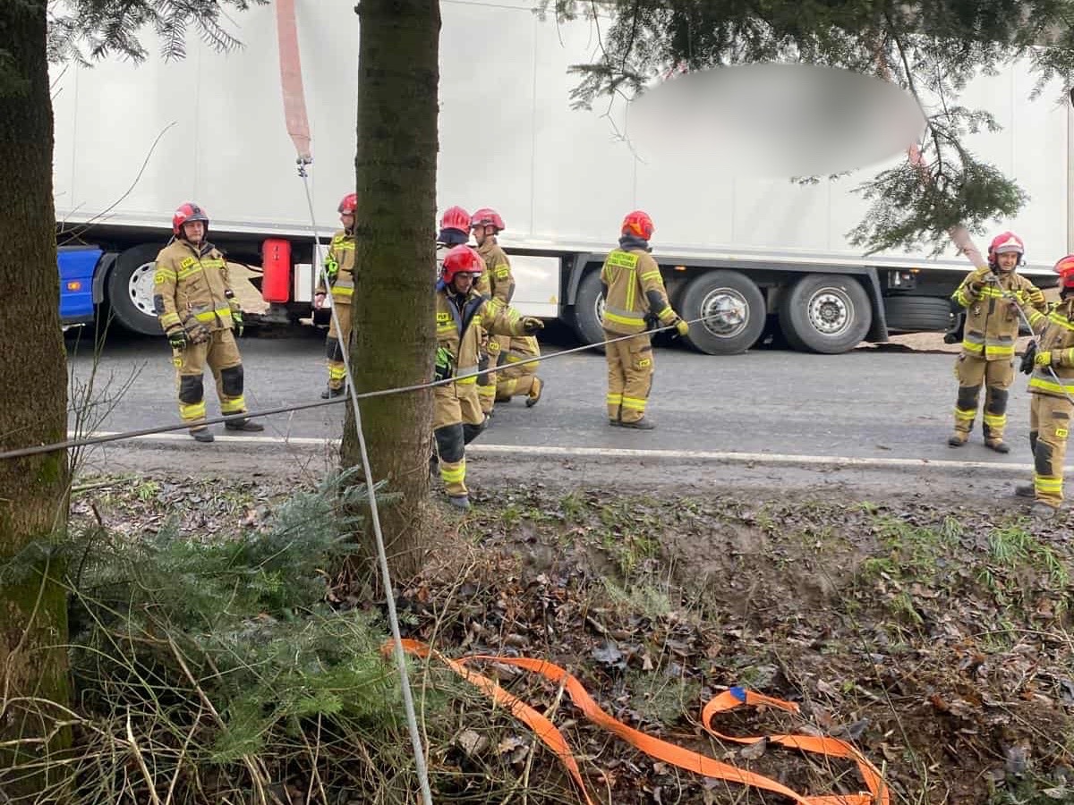 Działania straży pożarnej polegały na zabezpieczeniu miejsca zdarzenia oraz na wyciągnięciu pojazdu na jezdnię. Akcja zakończyła się około godziny 13:00. Na czas działań droga była całkowicie zablokowana.