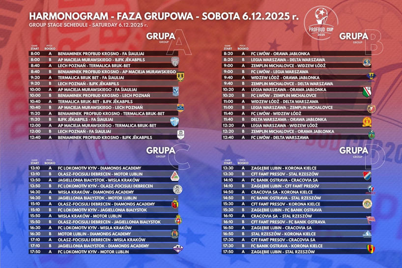 Pełna obsada turnieju PROFBUD Cup 2025: Legia Warszawa, Lech Poznań, Widzew Łódź, Jagiellonia Białystok, Zagłębie Lubin, Cracovia Kraków, Wisła Kraków, Motor Lublin, Korona Kielce, Stal Rzeszów, Termalica Bruk-Bet Nieciecza, Delta Warszawa, Diamonds Academy Rzeszów, AP Macieja Murawskiego, Orawa Jabłonka, Banik Ostrava (Czechy), CFT Famt Presov (Słowacja), BJFK Jekabpils (Łotwa), FC Siauliai (Litwa), Lokomotyv Kijów (Ukraina), FC Lwów (Ukraina), MFK Zeplin Michalovce (Słowacja), Olasz-Focisuli Debreczyn (Węgry) oraz Beniaminek Profbud Krosno.