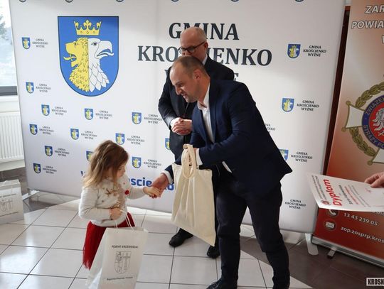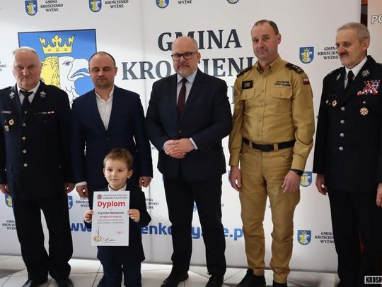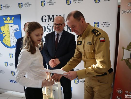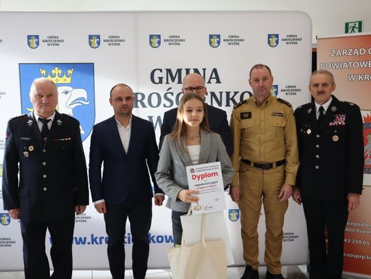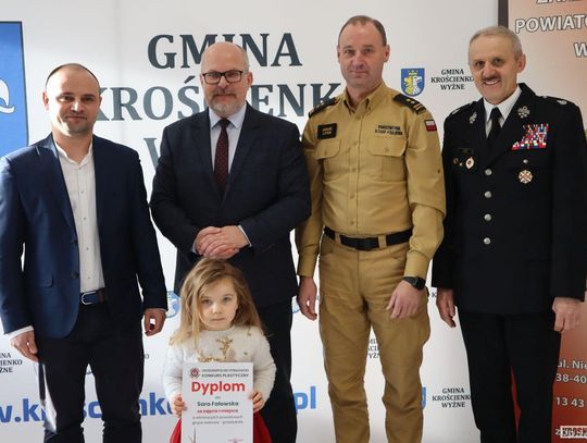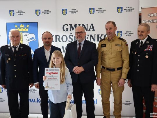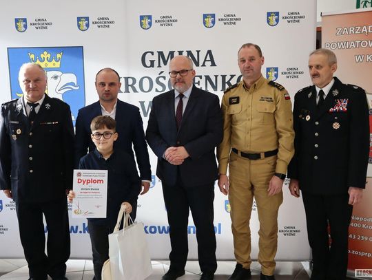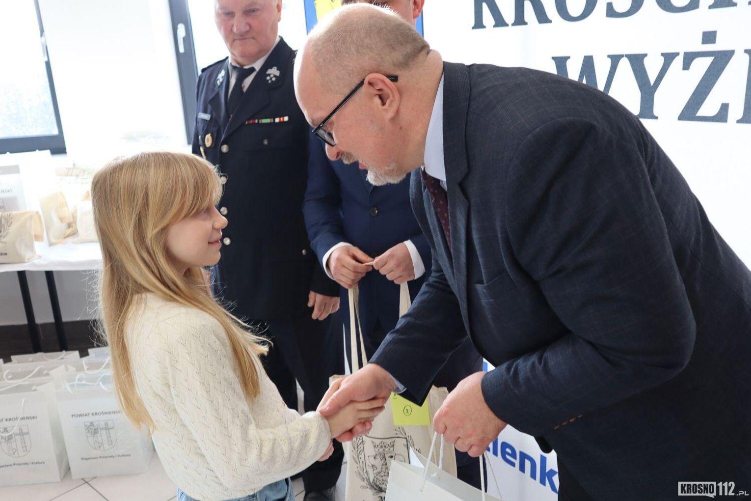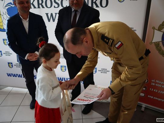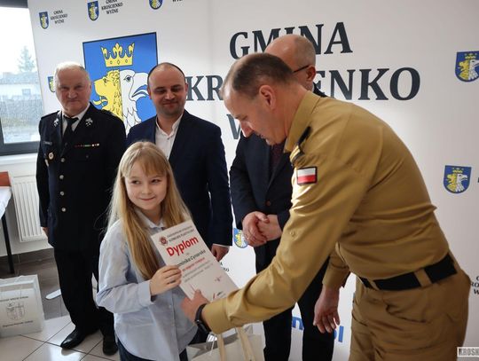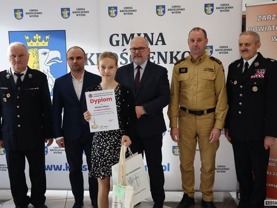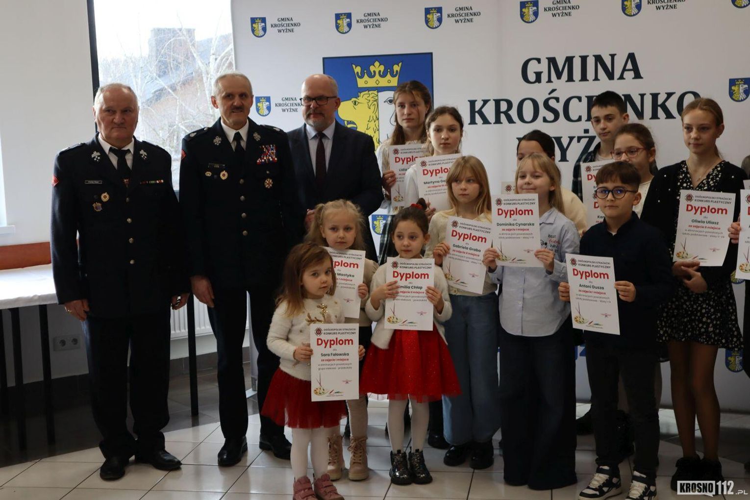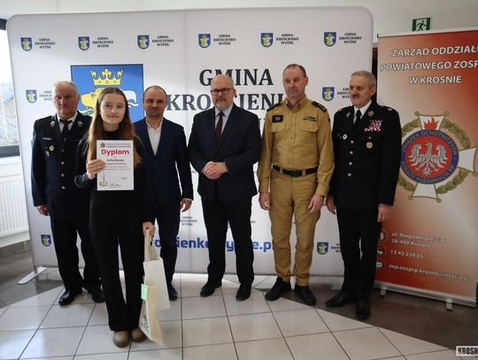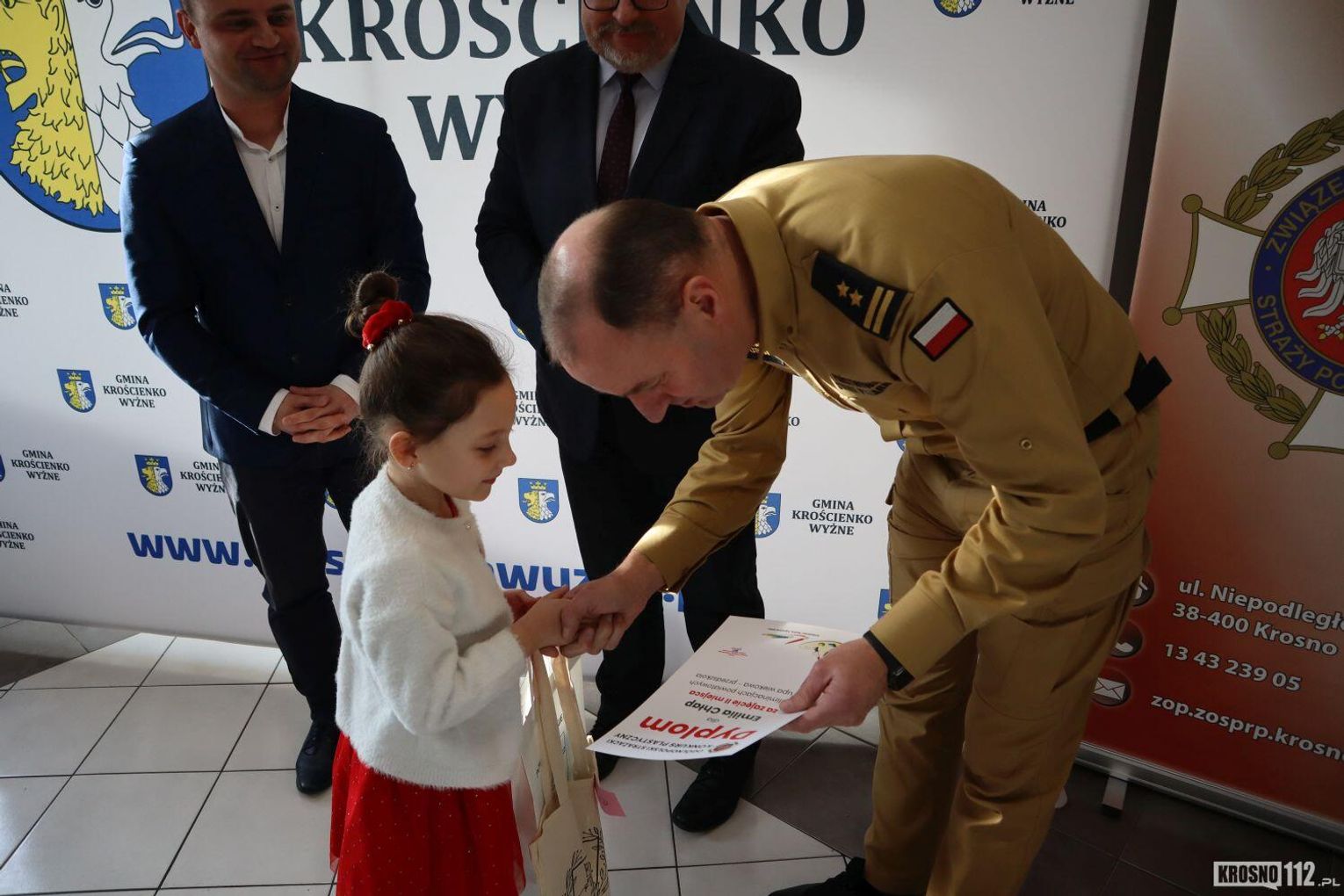 Autorzy prac finału powiatowego otrzymali nagrody ufundowane przez Starostwo Powiatowe w Krośnie oraz Urząd Gminy Krościenko Wyżne. Nagrody i dyplomy laureatom konkursu wręczyli: Andrzej Guzik - Wicestarosta Powiatu Krośnieńskiego, Łukasz Lorens - Zastępca Wójta Gminy Krościenko Wyżne, bryg. Janusz Litwin - Zastępca Komendanta Miejskiego PSP w Krośnie, dh Józef Tucki - Prezes Zarządu Oddziału Powiatowego ZOSP RP w Krośnie, dh Krzysztof Podkul - Sekretarz Zarządu Oddziału Powiatowego ZOSP RP w Krośnie, dh Andrzej Glazar - Prezes OSP KSRG Krościenko Wyżne.