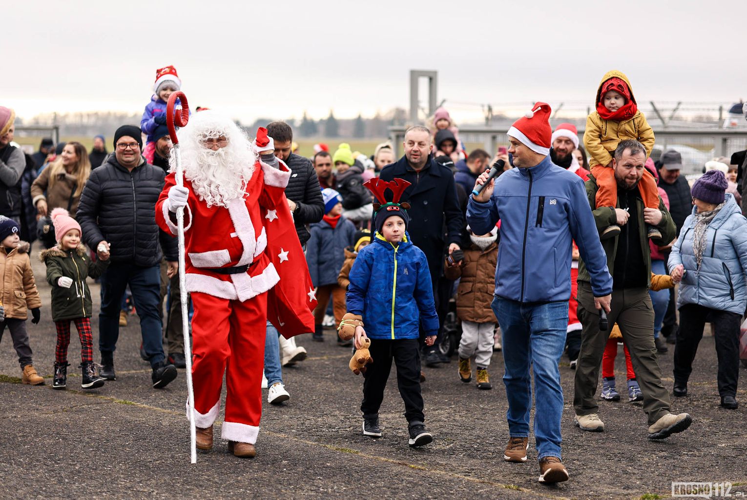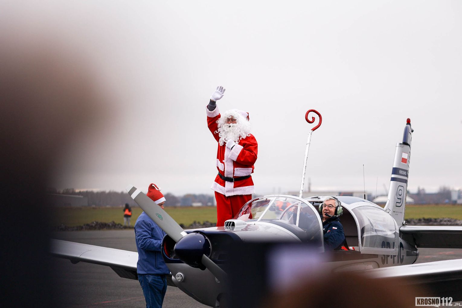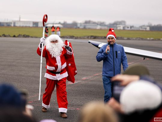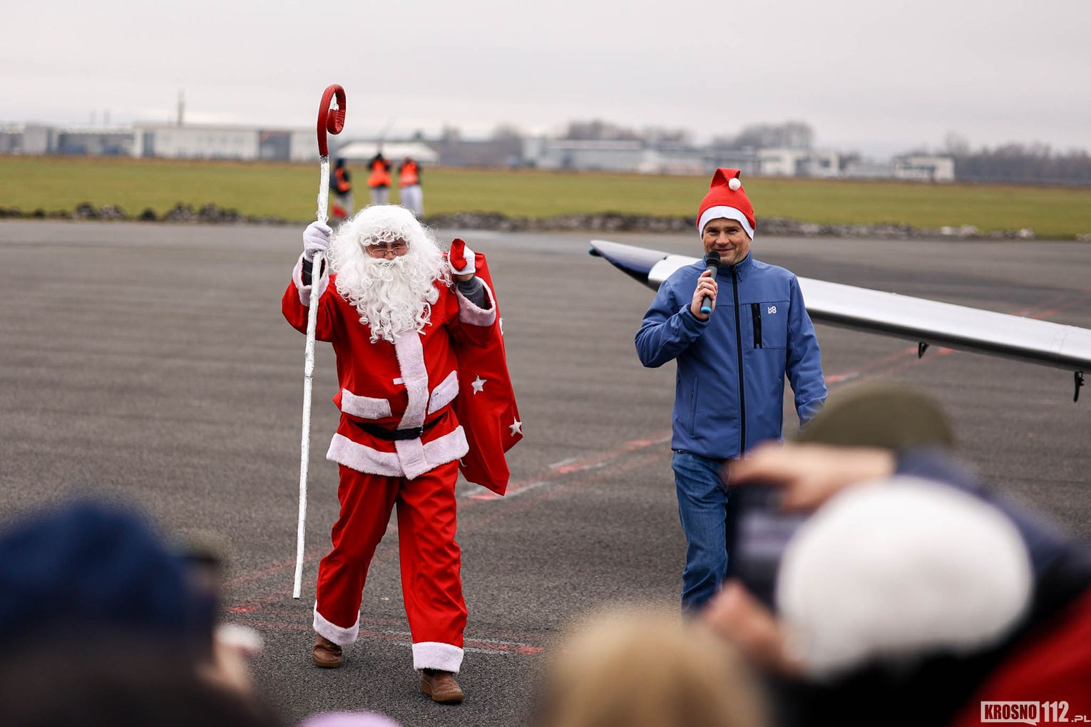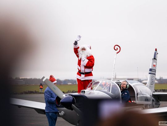 W sobotę 6 grudnia około godziny 12:00 na krośnieńskim lotnisku dało się usłyszeć znajome „HO HO HO!” — to znak, że Święty Mikołaj wraz z pomocnikami przybył samolotem prosto z Laponii, a następnie spektakularnie wylądował… ze spadochronem. Na miejscu czekały dzieci z rodzicami, gotowe przywitać go gromkim aplauzem.