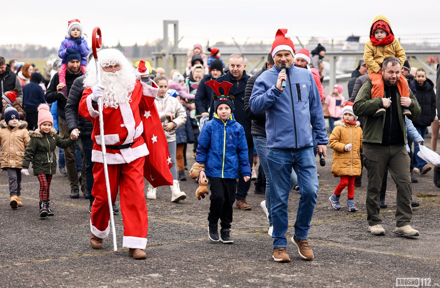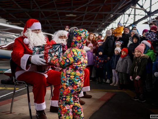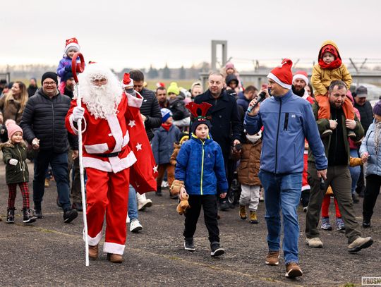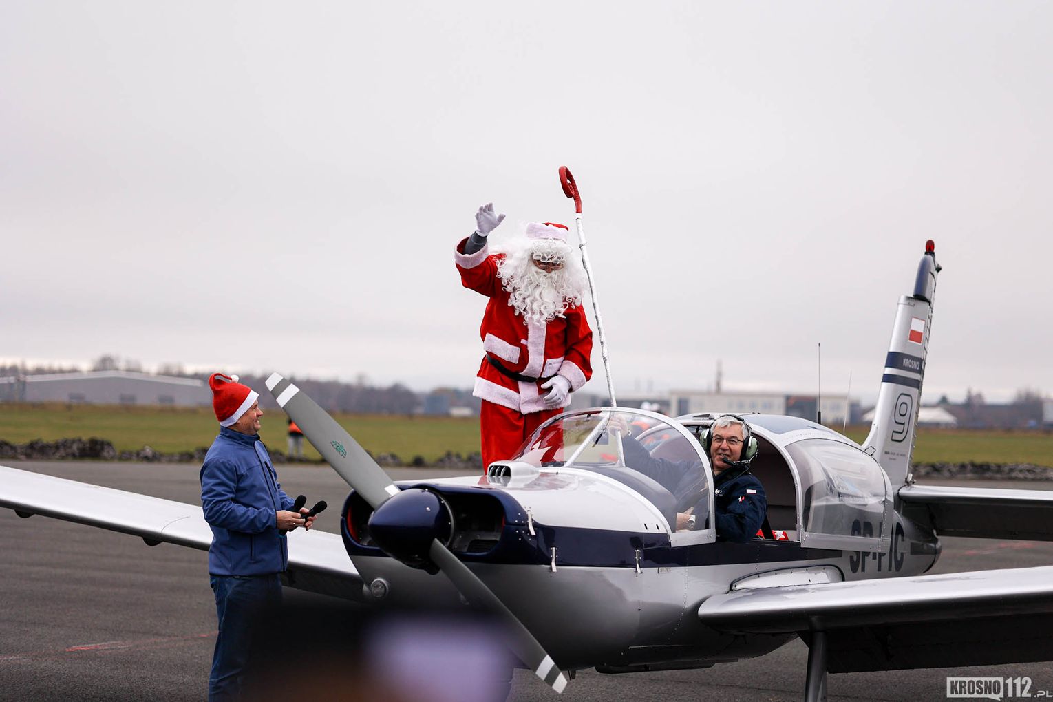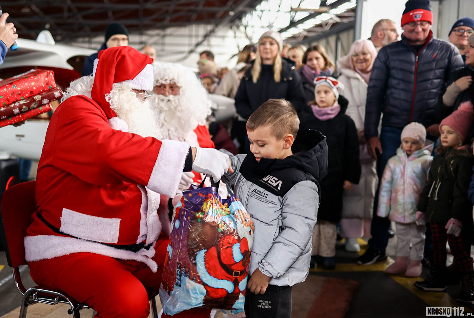 W sobotę 6 grudnia około godziny 12:00 na krośnieńskim lotnisku dało się usłyszeć znajome „HO HO HO!” — to znak, że Święty Mikołaj wraz z pomocnikami przybył samolotem prosto z Laponii, a następnie spektakularnie wylądował… ze spadochronem. Na miejscu czekały dzieci z rodzicami, gotowe przywitać go gromkim aplauzem.