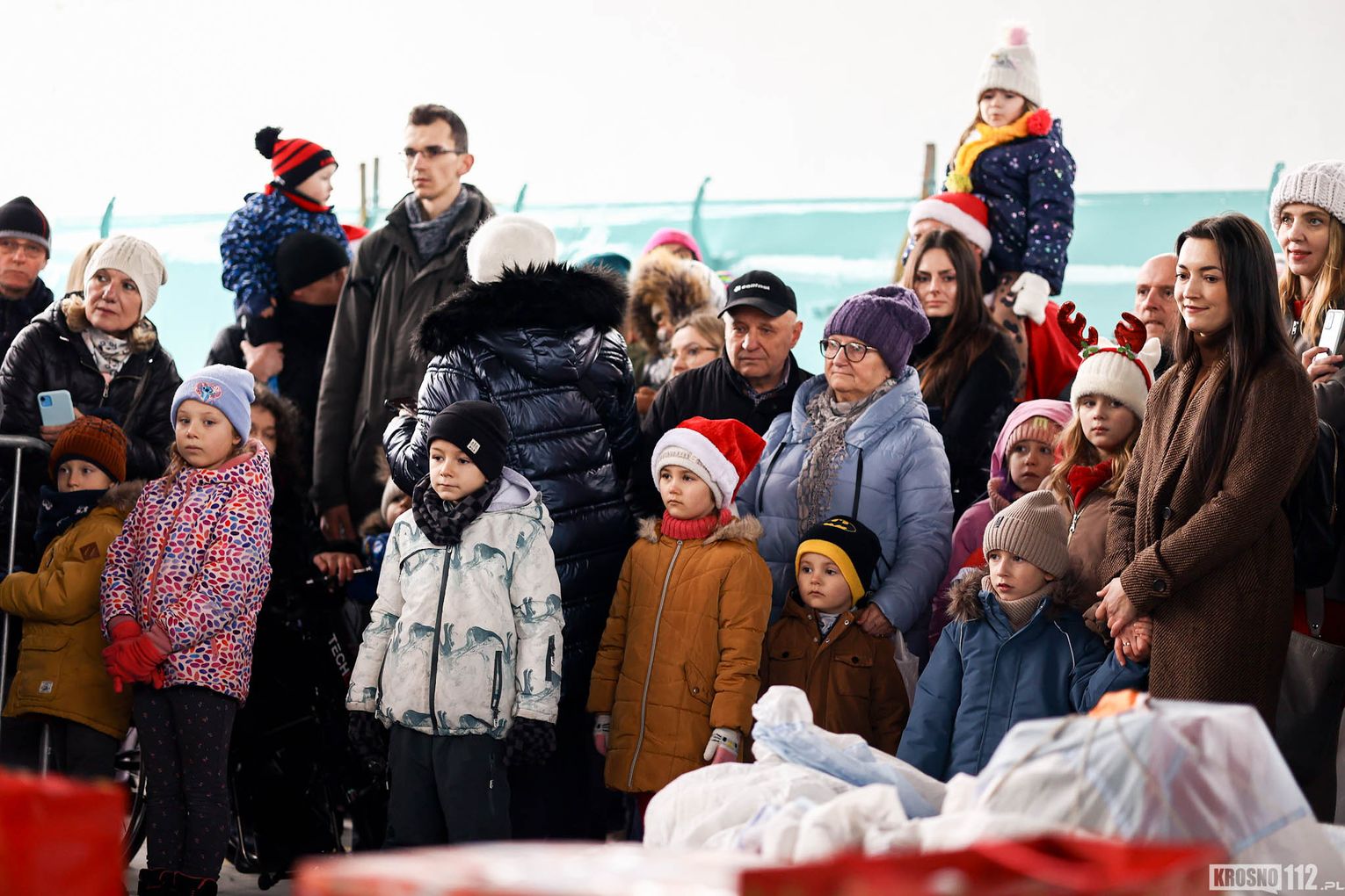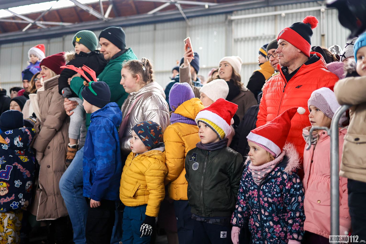 Po lądowaniu Mikołaj wręczał dzieciom prezenty, rozmawiał z nimi i chętnie pozował do zdjęć. Widać było przejęcie, radość i dumę najmłodszych — zwłaszcza że dla wielu z nich było to wyjątkowe spotkanie, podkreślające magię oczekiwania na święta.