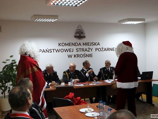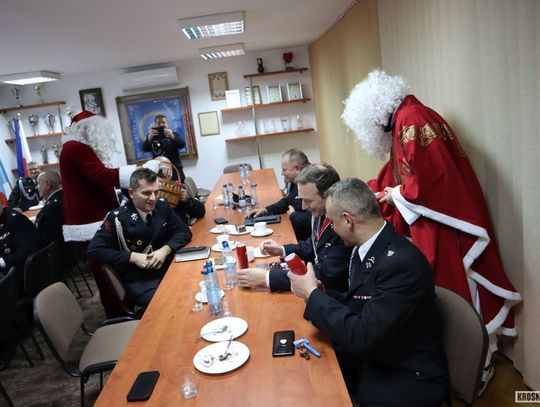 Na koniec strażaków odwiedziło dwóch świętych Mikołajów.