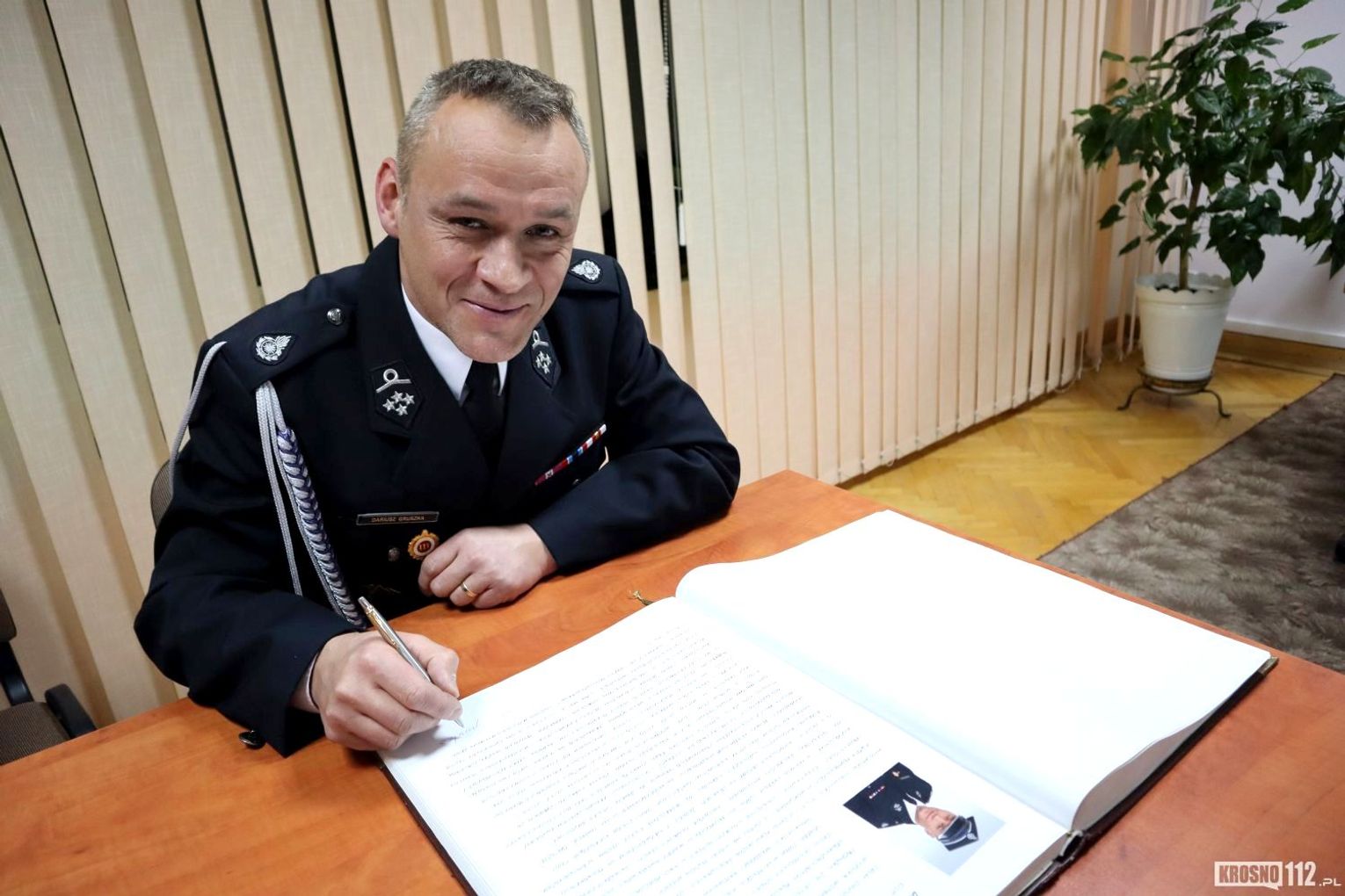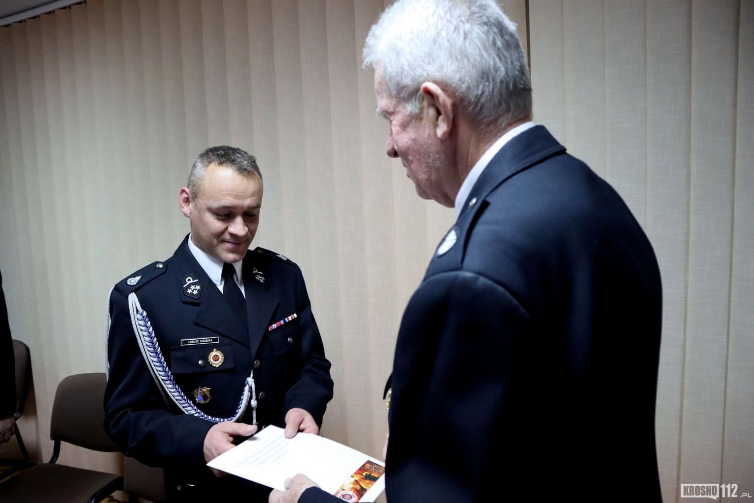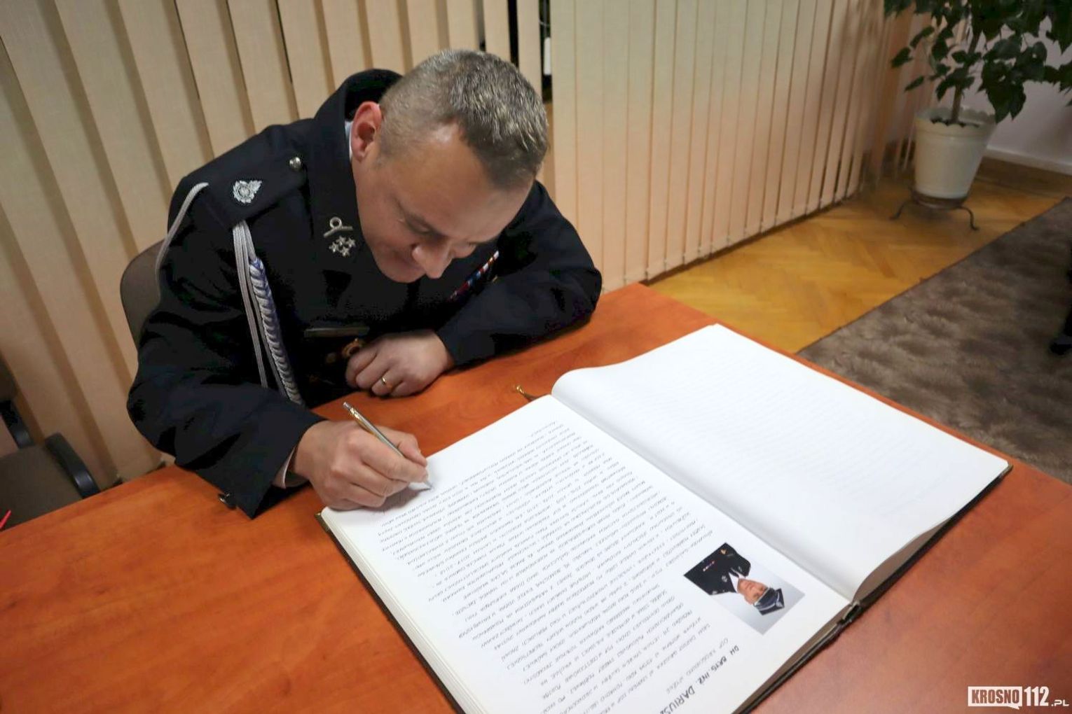 Ostatnim uroczystym elementem był Wpis do Złotej Księgi Zasłużonych dla Ochrony Przeciwpożarowej Powiatu Krośnieńskiego, którym uhonorowano bryg. Dariusza Gruszkę - dowódcę JRG w Krośnie i jednocześnie strażaka-ochotnika OSP Krościenko Wyżne.