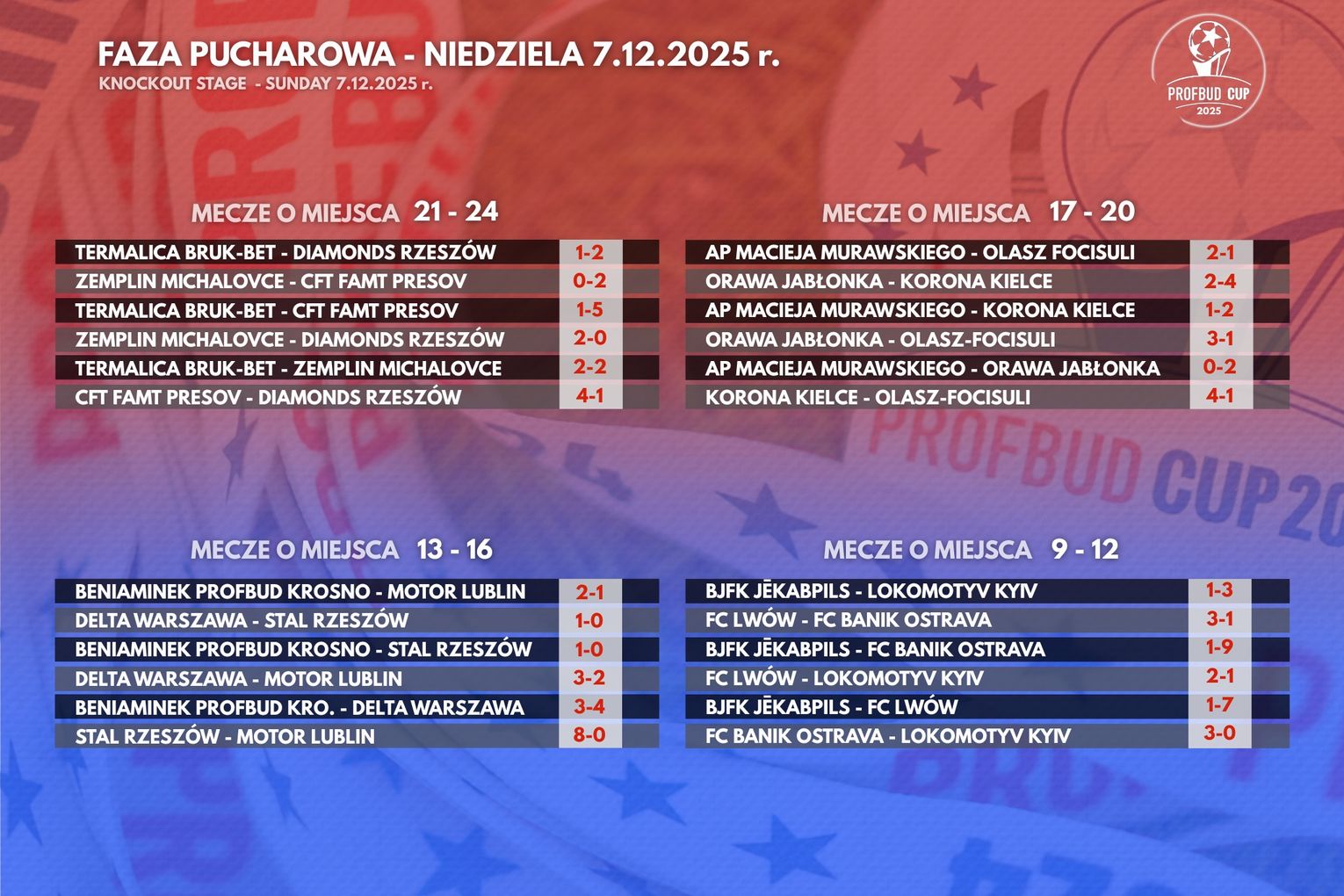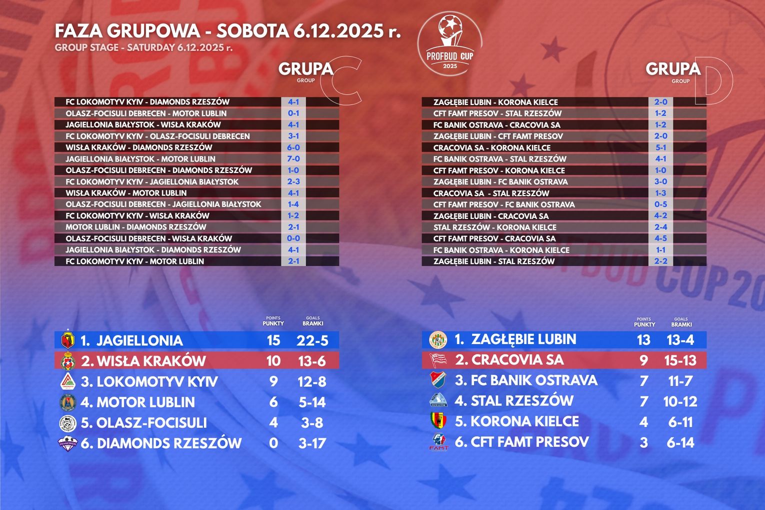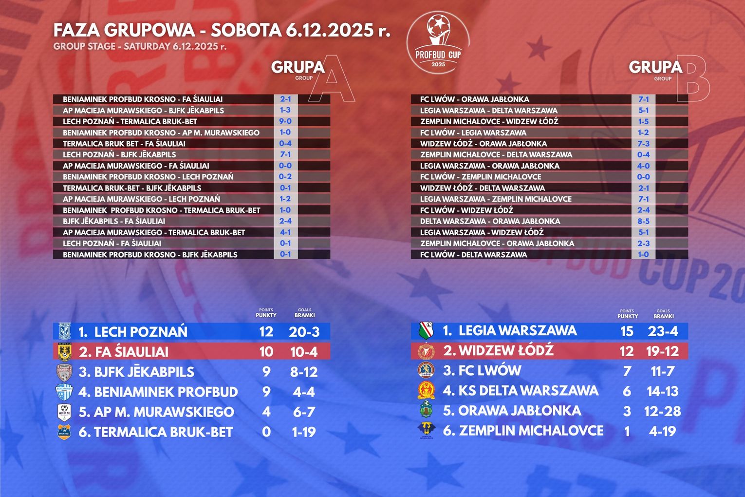 Dwudniowe święto piłki w Krośnie podzielone było na część grupową (w sobotę, 6 grudnia) i pucharową (w niedzielę, 7 grudnia).