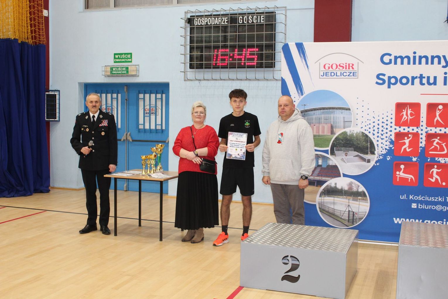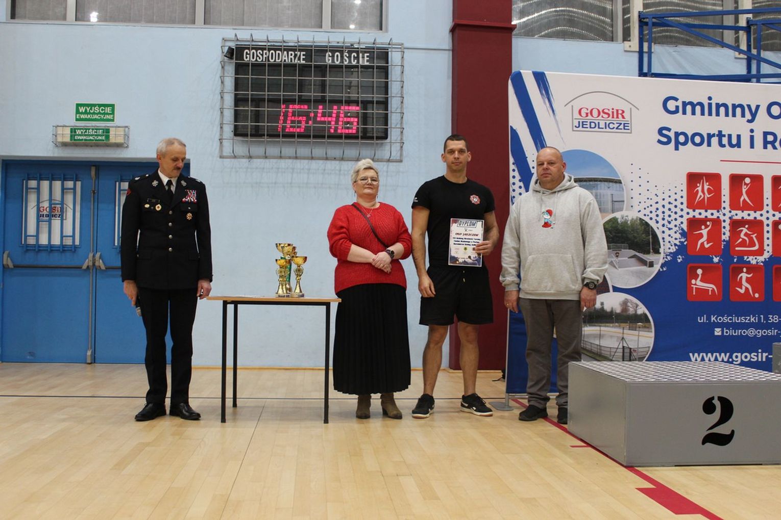 Po zakończeniu sportowych zmagań odbyła się ceremonia dekoracji zwycięzców. Dyplomy i puchary wręczali: Katarzyna Leniek – Zastępca Burmistrza Gminy Jedlicze, dh Józef Tucki – Prezes Zarządu Oddziału Powiatowego ZOSP RP w Krośnie. dh Marek Maciejowski – Prezes Zarządu Oddziału Miejsko-Gminnego ZOSP RP w Jedliczu.