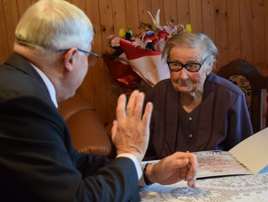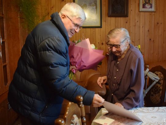 Dzisiejsza (9 grudnia) wizyta Piotra Przytockiego prezydenta Krosna u pani Marii Ginalskiej miała wyjątkowy charakter. Jubilatka, otoczona najbliższymi, przyjęła życzenia, bukiet kwiatów, okolicznościowy dyplom oraz upominek. Spotkanie przy urodzinowym torcie było okazją do wspomnień i rozmów o historii życia jubilatki.