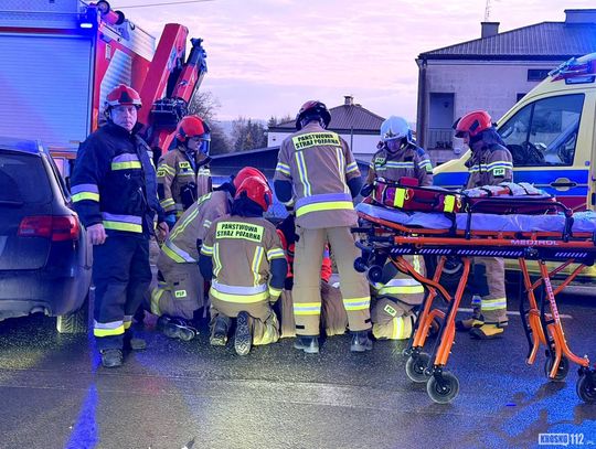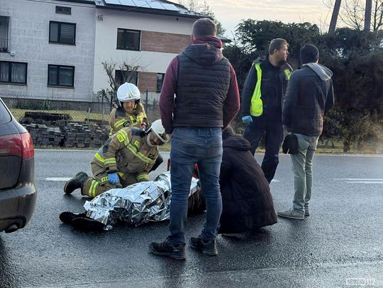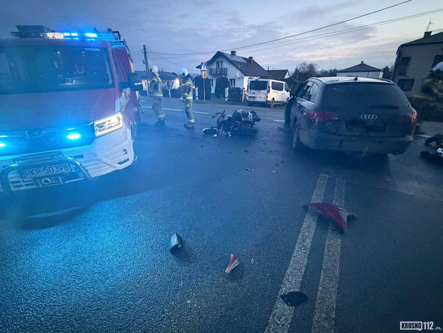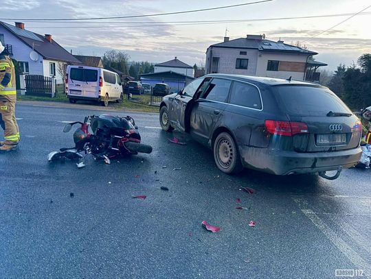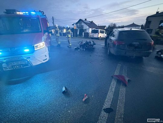 Po zderzeniu z Audi stan kierującego jednośladem jest poważny - ma uraz nogi, jest przytomny.