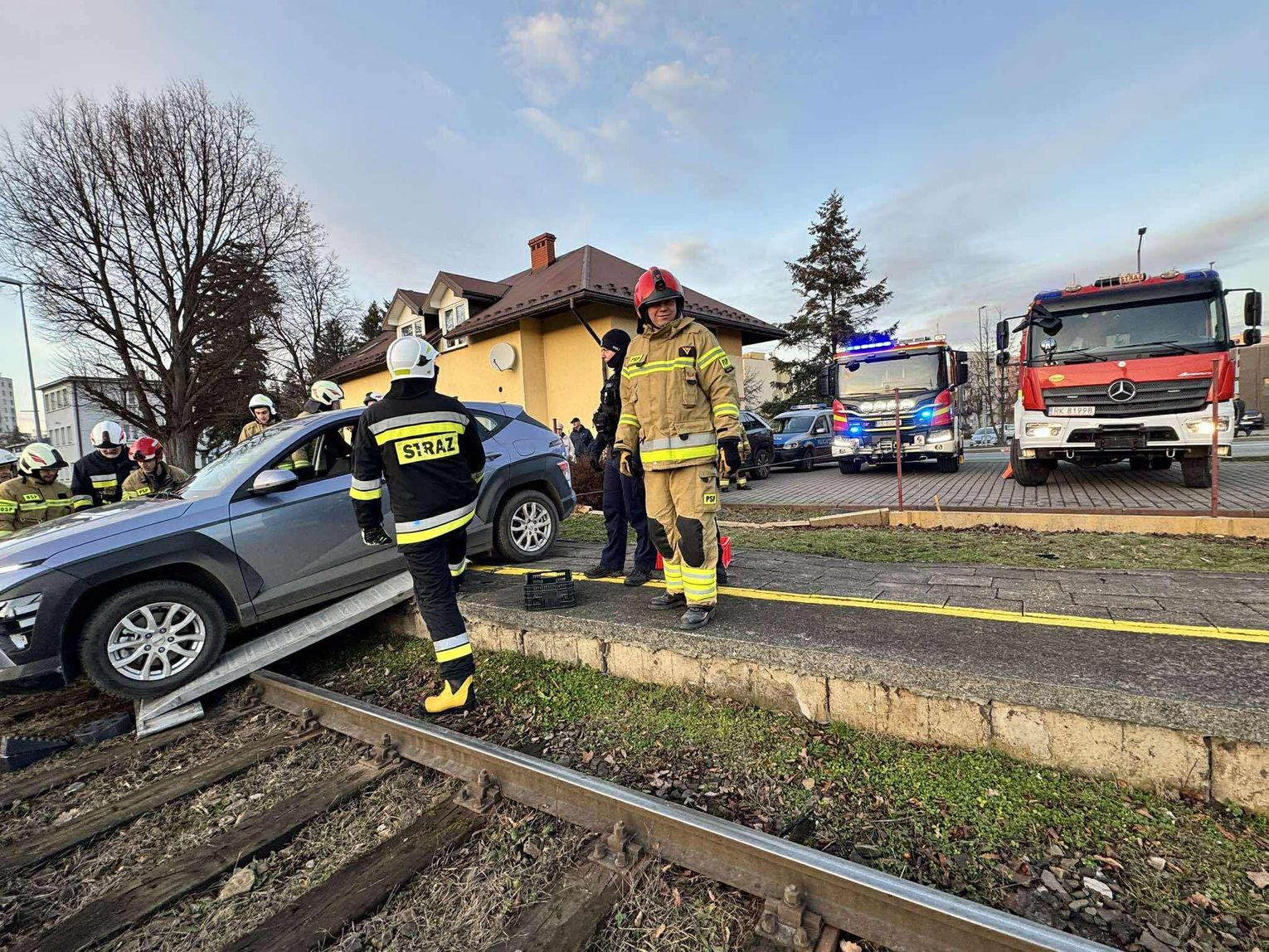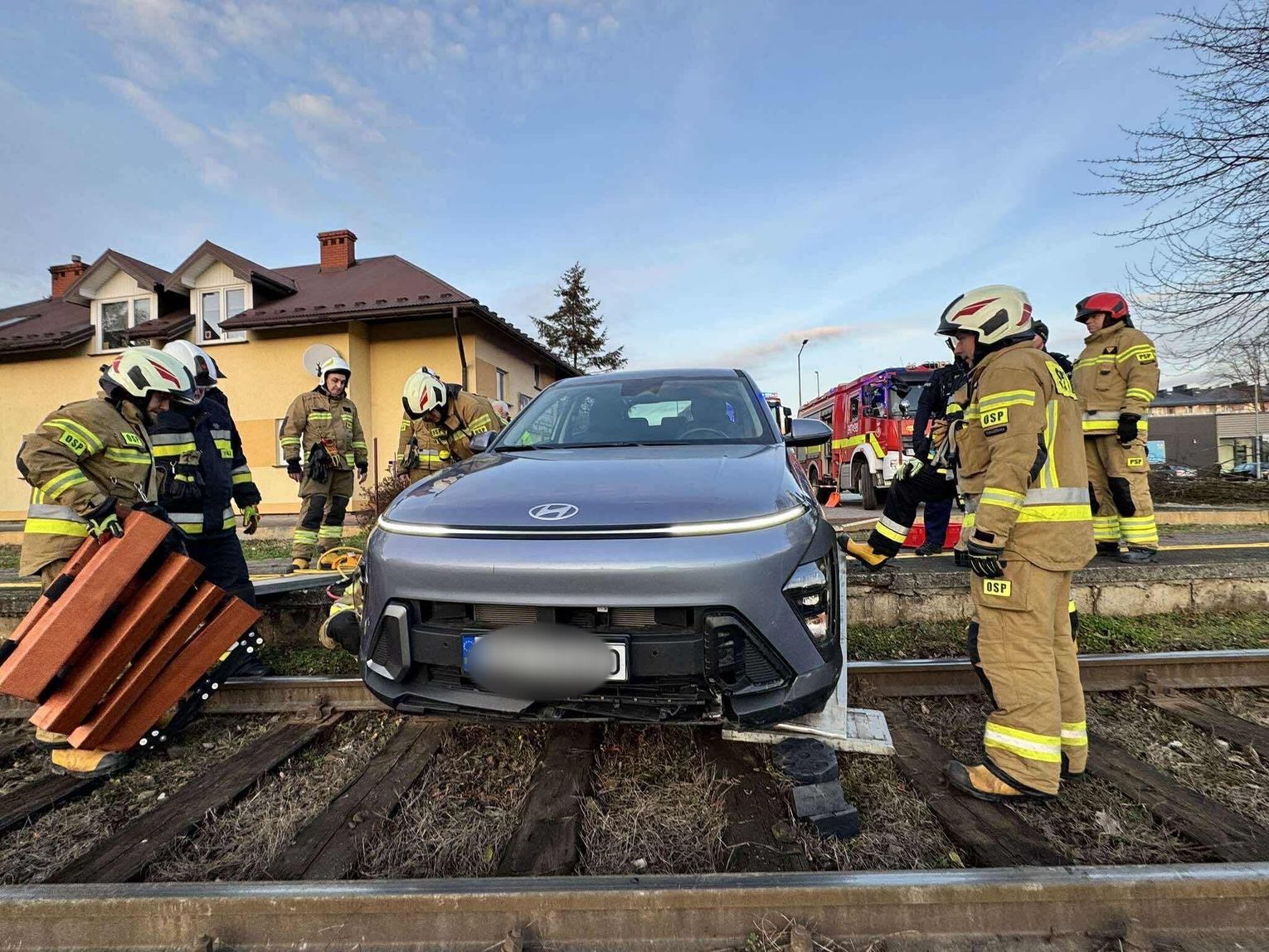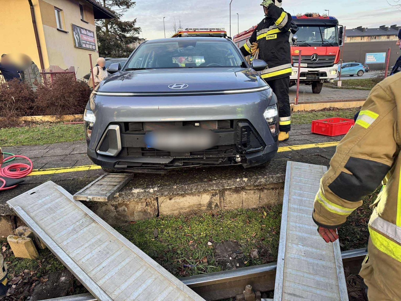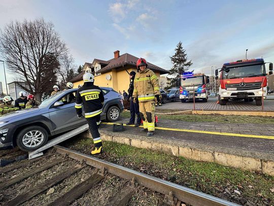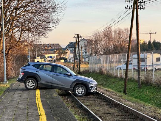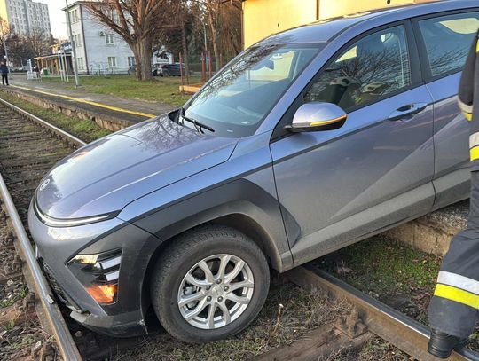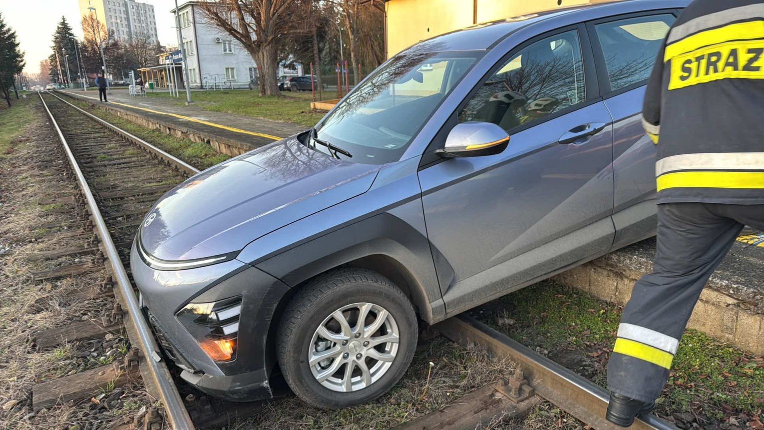 Wstępnie ustalono, że samochód osobowy zsunął się na tory z pobliskiego parkingu i zablokował linie kolejową.