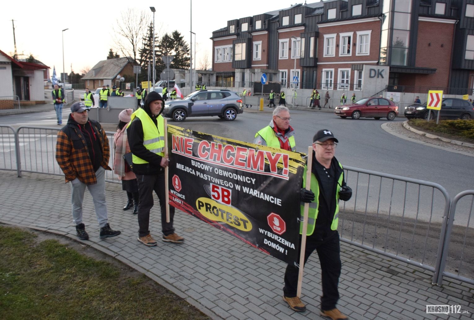 Tłumaczy, że brak porozumienia między mieszkańcami a GDDKiA spowodował, że zapadła decyzja o proteście w Miejscu Piastowym. Rozpoczął się on o godz. 15:30 na skrzyżowaniu DK28 i DK19. Przez godzinę uczestnicy przechodzili przez przejścia dla pieszych wokół ronda. Od czasu do czasu umożliwiali jednak przejazd samochodów.