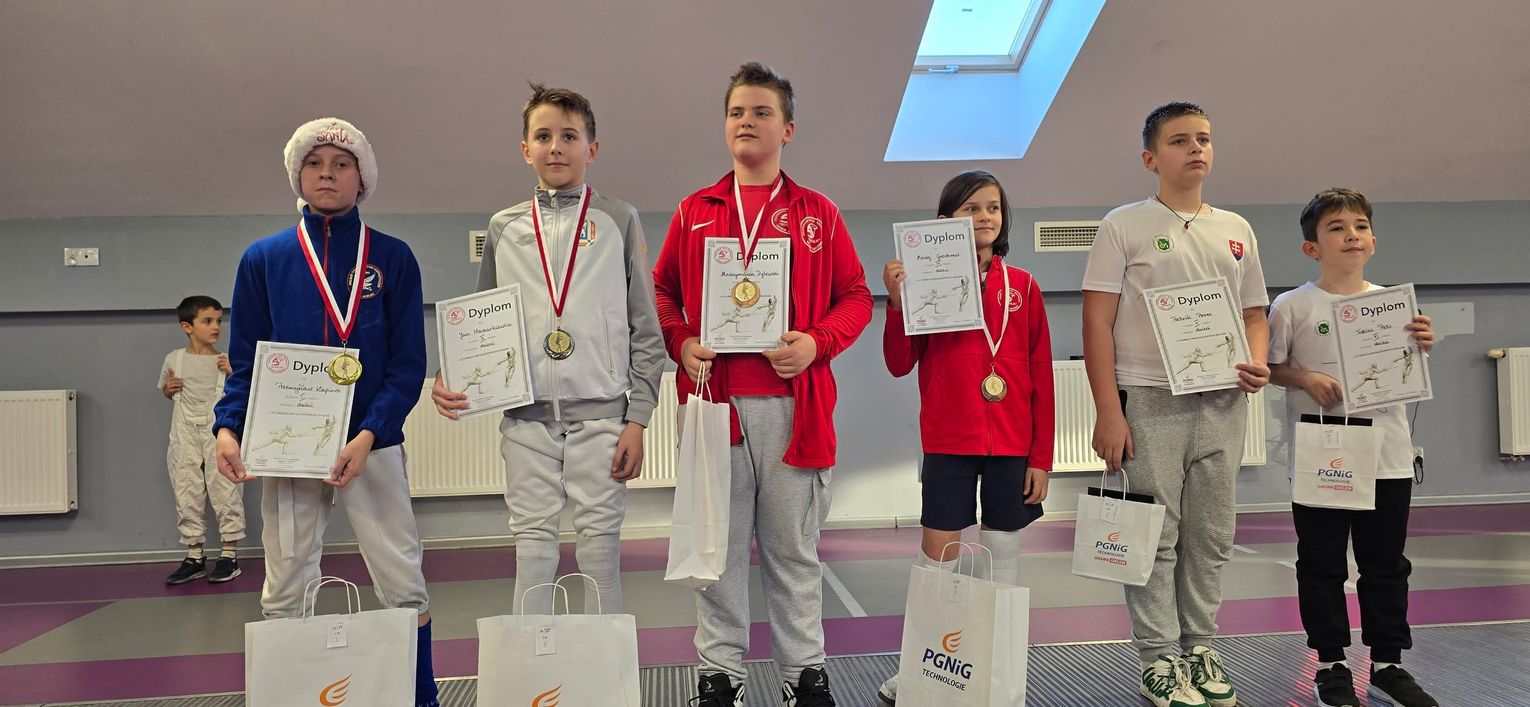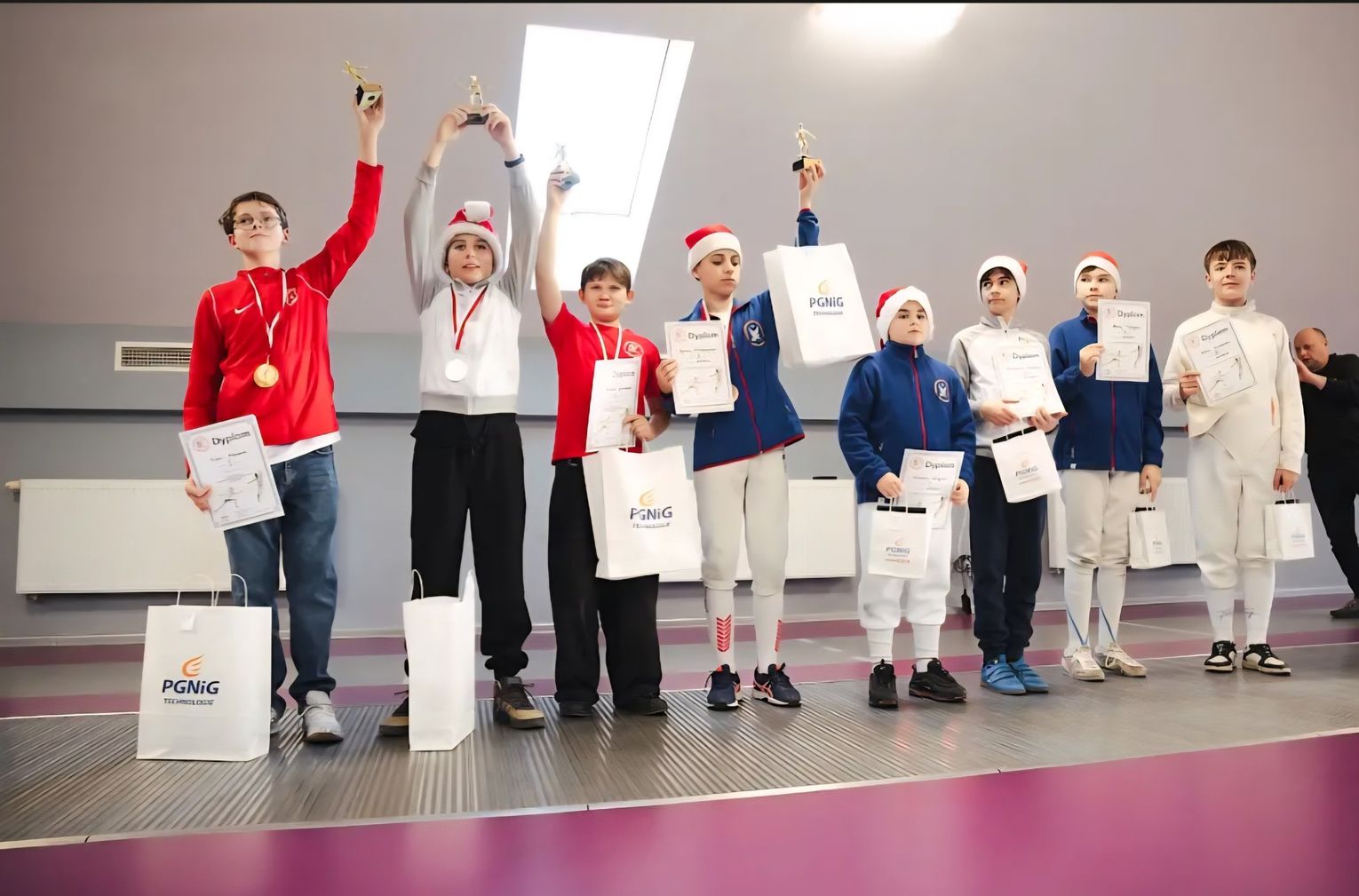 W sobotę (13 grudnia) na szermierczych planszach walczyło prawie 60 młodych zawodniczek i zawodników z UKS Sokolik MOSiR Krosno, PTG Sokół 1893 Mielec, Gryf Mielec oraz Sermu Snina.