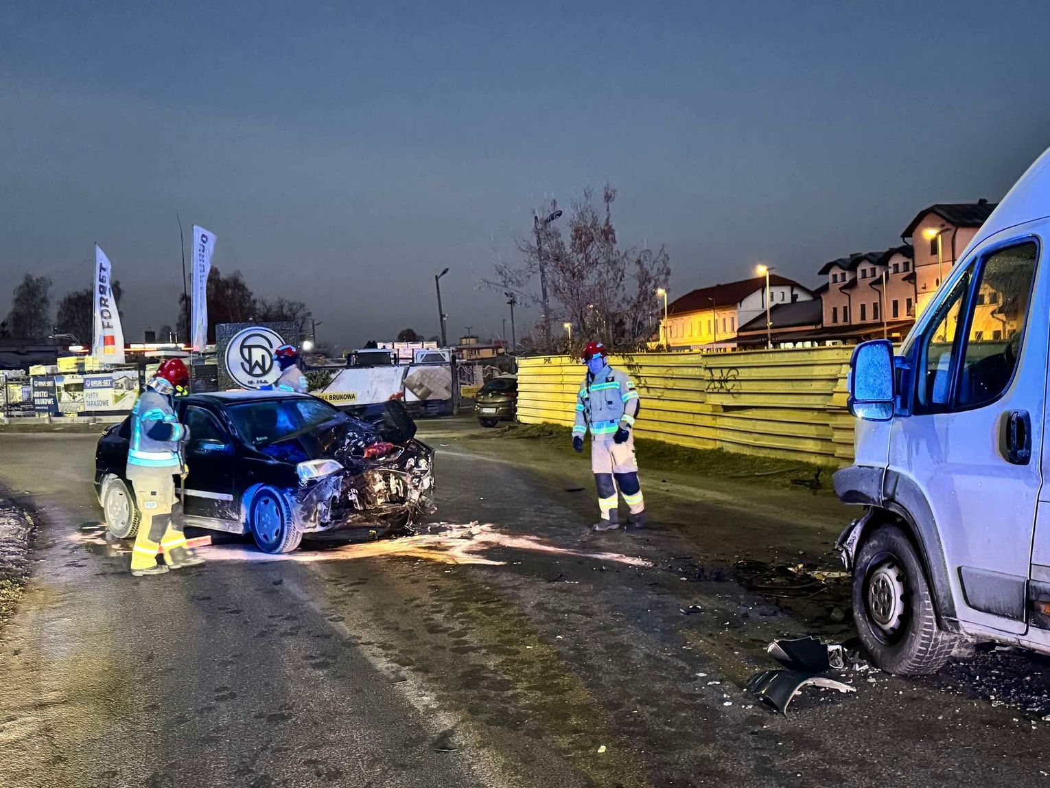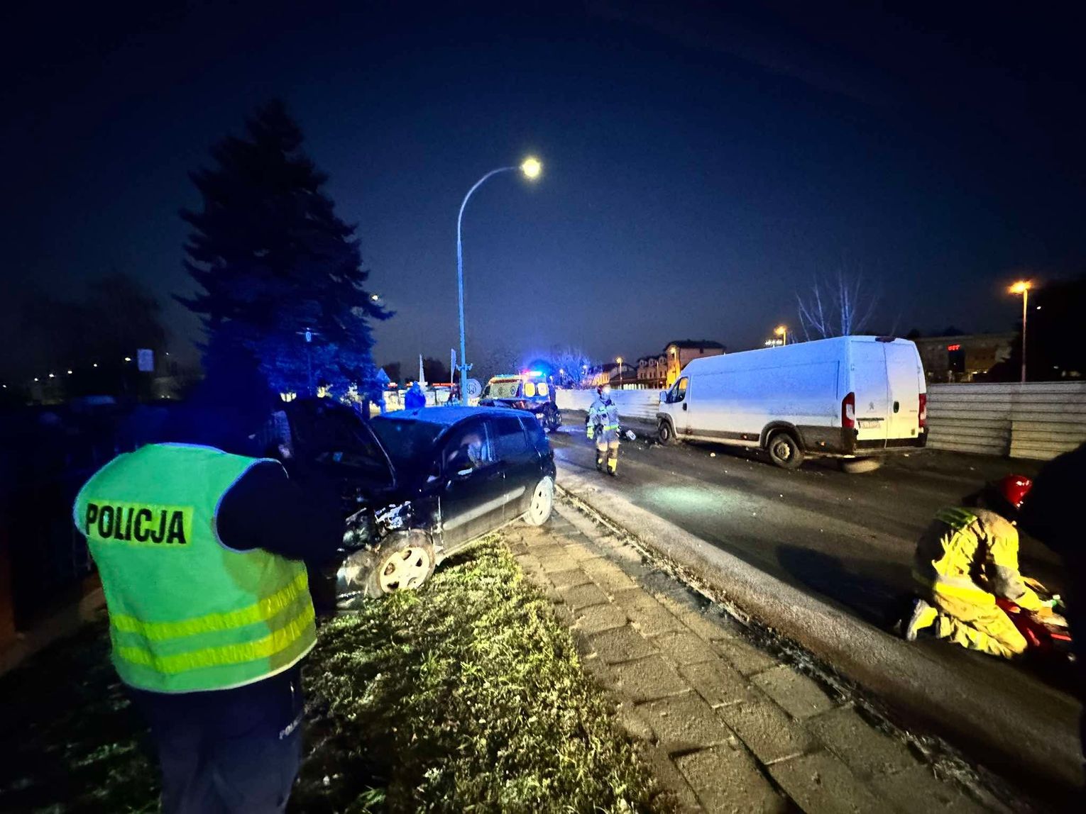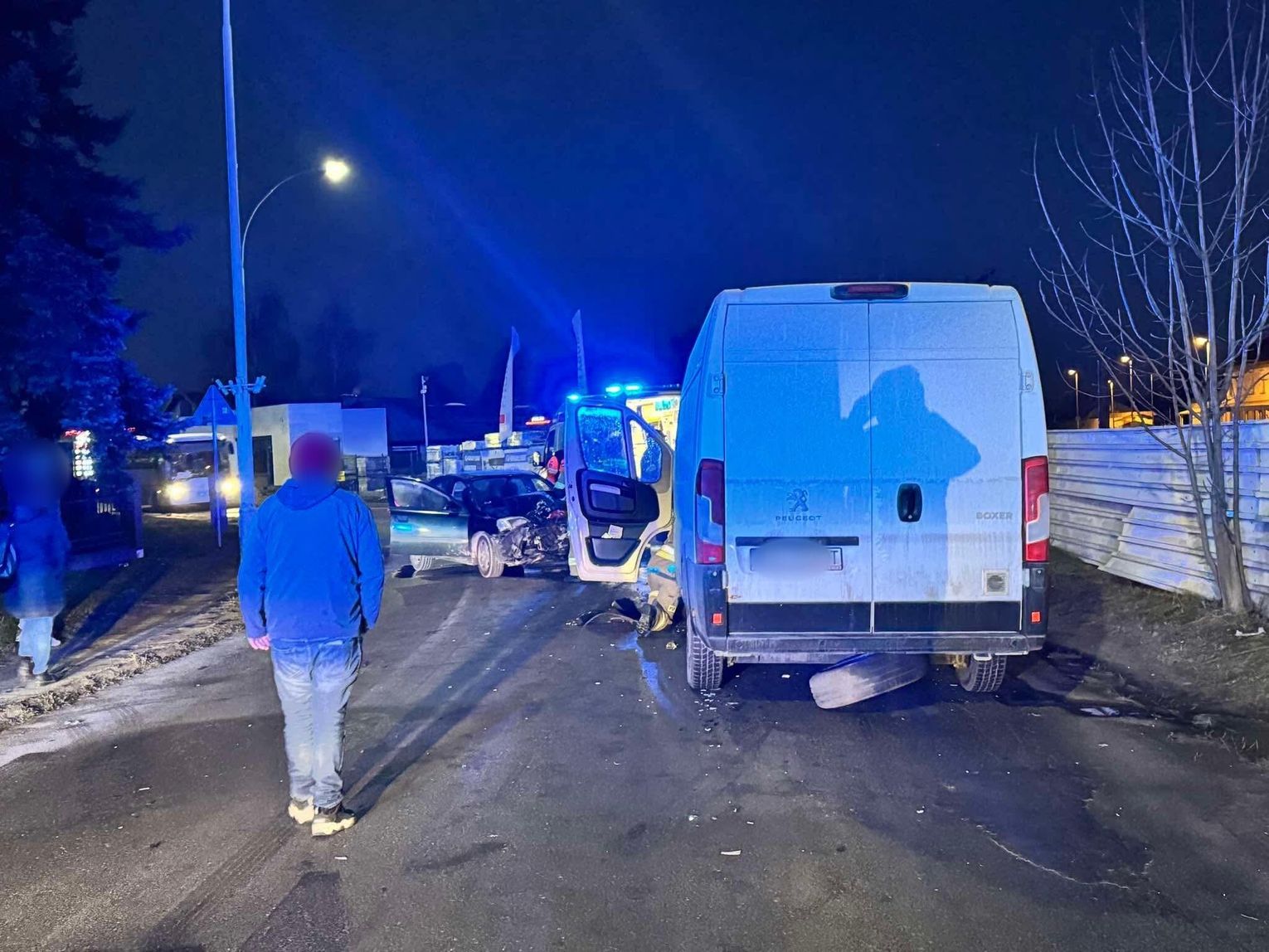 Do pierwszej kolizji brały udział dwa pojazdy: Honda i Opel. Na szczęście nikt nie został ranny. Pojazdami podróżowali tylko kierowcy. Chwilę później, również na śliskim łuku drogi doszło do zderzenia kolejnych dwóch pojazdów, tym razem kierujący Oplem wjechał w dostawczego busa marki Peugeot.